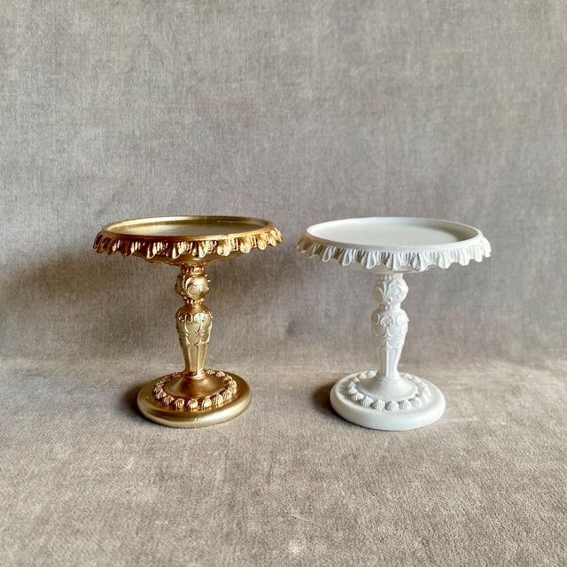 クラシカルなミニサイズのスタンド付きトレイ。 ベースのホイップクリームのような装飾がかわいらしく、コンパクトでも繊細なデコレーションを施した高級感のある仕上がりです。 LEDキャンドルを乗せたり、ミニチュアオブジェを飾って楽しめます。 ※写真で使用しているLEDキャンドルは直径7.5φ×高さ10cmです。大きさの参考にしてください。 カラーはホワイトとゴールド(カッパー寄り)の2色展開です。 ※手作業による仕上げの為、全ての商品に塗装の濃淡が生じます。また多少の傾きが生じる場合があります。予めご了承ください。 ¥1,700+tax ▪️サイズ:直径9.5×高さ10cm トレイ内径:直径7.5cm ▪️素材 :ポリレジン ▪️カラー:ホワイト、ゴールド ※アンティーク調仕上げの為、歪み・擦れ・剥げ・色ムラがあります。 ※掲載写真はお使いのモニター等により実際の商品と色味が異なって見える場合があります。 ※撮影商品は見本ですので、お届けするものと色合い等が多少異なる場合があります。 ※撮影小物は商品に含まれません。 ※実店舗や他サイトでも同時に販売しておりますので、常時在庫は変動しております。タイミングによっては店頭にて完売している場合もございますので、予めご了承くださいませ。 【発送方法】 佐川急便orゆうパック ※曜日や時間指定のご希望がございましたら、ご注文時に備考欄よりお知らせください。