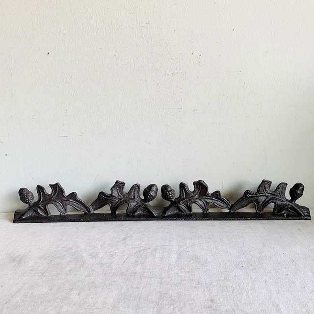 松ぼっくりモチーフのミニフェンス。 鋳物でしっかりした重みがあります。 お庭や塀垣、窓際等の仕切りのアクセントに。 棚から小物の落下防止柵にもなります。 ¥2,000+tax ▪️サイズ :W43xD2.5xH5.5cm ▪️材質 :鋳物 ※アンティーク調仕上げの為、歪み・剥げ・擦れ・色ムラがあります。 ※掲載写真はお使いのモニター等により実際の商品と色味が異なって見える場合があります。 ※撮影商品は見本ですので、お届けするものと色合い等が多少異なる場合があります。 ※撮影小物は商品に含まれません。 ※実店舗や他サイトでも同時に販売しておりますので、常時在庫は変動しております。タイミングによっては完売している場合もございますので、予めご了承くださいませ。 【発送方法】 佐川急便orゆうパック ※曜日や時間指定のご希望がございましたら、ご注文時に備考欄よりお知らせください。