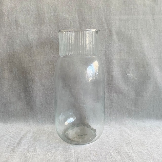 表面の凸凹が特徴的なハンドメイドのフラワーベース。 ハンドメイドの1点1点異なる表情が温もりを感じるアイテムです。 どんな花にも合わせやすいシンプルなデザイン。 ドライフラワーを飾るのもおすすめです。 ガラスの表面には凹凸があるので、ほどよくガラスの緊張感をやわらげお部屋の空間にすっと馴染みます。 光がよく入る場所に飾ると、落ちる影も印象的です。 ガラスの気泡やキズなども風合いとしてお楽しみいただけます。 〈注意事項〉 ・こちらの商品はハンドメイド商品となりますので生産工程上、底面に凹みがございます。 ・本製品は手作業のため仕上がりにばらつきがあります。製品の特性としてご理解ください。 ・ガラスは急激な温度変化で割れる場合があります。 ・熱湯は入れないでください。 ・たわしやクレンザー等は、くもりやキズ、破損の原因になりますので使用しないでください。 【Mサイズ】¥2,900+tax ◾️サイズ:約φ11×h23cm 口径 :約φ7.5cm、深さ:約21.5cm ◾️材質 :ガラス ※ ハンドメイド商品の為、商品個々にサイズや形、色など微細な差が生じます。 ※掲載写真はお使いのモニター等により実際の商品と色味が異なって見える場合があります。 ※撮影商品は見本ですので、お届けするものと色合い等が多少異なる場合があります。 ※撮影小物は商品に含まれません。 ※実店舗や他サイトでも同時に販売しておりますので、常時在庫は変動しております。タイミングによっては店頭にて完売している場合もございますので、予めご了承くださいませ。 【発送方法】 佐川急便orゆうパック ※曜日や時間指定のご希望がございましたら、ご注文時に備考欄よりお知らせください。