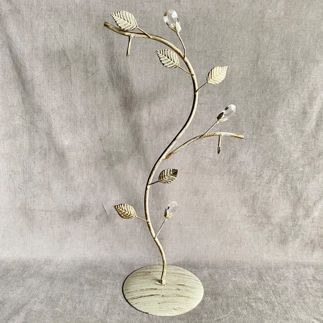 シャビーシックに仕上げたおしゃれなリーフ付きのフックスタンド。 優美な曲線にクリアストーンのベリーやリーフを装飾したおしゃれなデザインです。 ランプやオーナメントなどを吊したり、アクセサリーを掛けても素敵です。 クリスマスにもおすすめのデザインです。 ※アンティーク風ハンドペイント仕上げの為、色味や仕上がりには個体差が生じます。 シングルはフックが1箇所です。 【シングル】¥1,500+tax ◾️サイズ:幅15×奥行10.5×高さ28cm ◾️材質 :アイアン、プラスチック ※ ハンドメイド商品の為、商品個々にサイズや形、色など微細な差が生じます。装飾の継ぎ目に多少のズレがあります。 ※アンティーク調仕上げの為、歪み・擦れ・剥げ・色ムラがあります。 ※掲載写真はお使いのモニター等により実際の商品と色味が異なって見える場合があります。 ※撮影商品は見本ですので、お届けするものと色合い等が多少異なる場合があります。 ※撮影小物は商品に含まれません。 ※実店舗や他サイトでも同時に販売しておりますので、常時在庫は変動しております。タイミングによっては完売している場合もございますので、予めご了承くださいませ。 【発送方法】 佐川急便orゆうパック ※曜日や時間指定のご希望がございましたら、ご注文時に備考欄よりお知らせください。