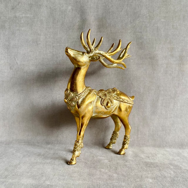 クラシカルな装飾を付けたアンティーク調のトナカイのオブジェ。 勇壮な角と逞しい躯体の凛とした雰囲気のトナカイ。首元や背中、足首にも装飾を施した高級感のあるデザインです。 単品でも存在感のあるオブジェですが、クリスマスツリーやサンタクロースのオブジェなどと合わせて飾ると素敵なディスプレイになります。 ※ ハンドペイント仕上げの為、全ての商品に塗装のはみだしや色の濃淡が生じます。また仕上がりには固体差がありますので予めご了承ください。 ¥2,500+tax ◾️サイズ:幅15×奥行6×高さ23cm ◾️材質 :ポリレジン ※歪み・擦れ・剥げ・色ムラ等やデザインに微細な固体差が生じます。 ※掲載写真はお使いのモニター等により実際の商品と色味が異なって見える場合があります。 ※撮影商品は見本ですので、お届けするものと色合い等が多少異なる場合があります。 ※撮影小物は商品に含まれません。 ※実店舗や他サイトでも同時に販売しておりますので、常時在庫は変動しております。タイミングによっては完売している場合もございますので、予めご了承くださいませ。 【発送方法】 佐川急便orゆうパック