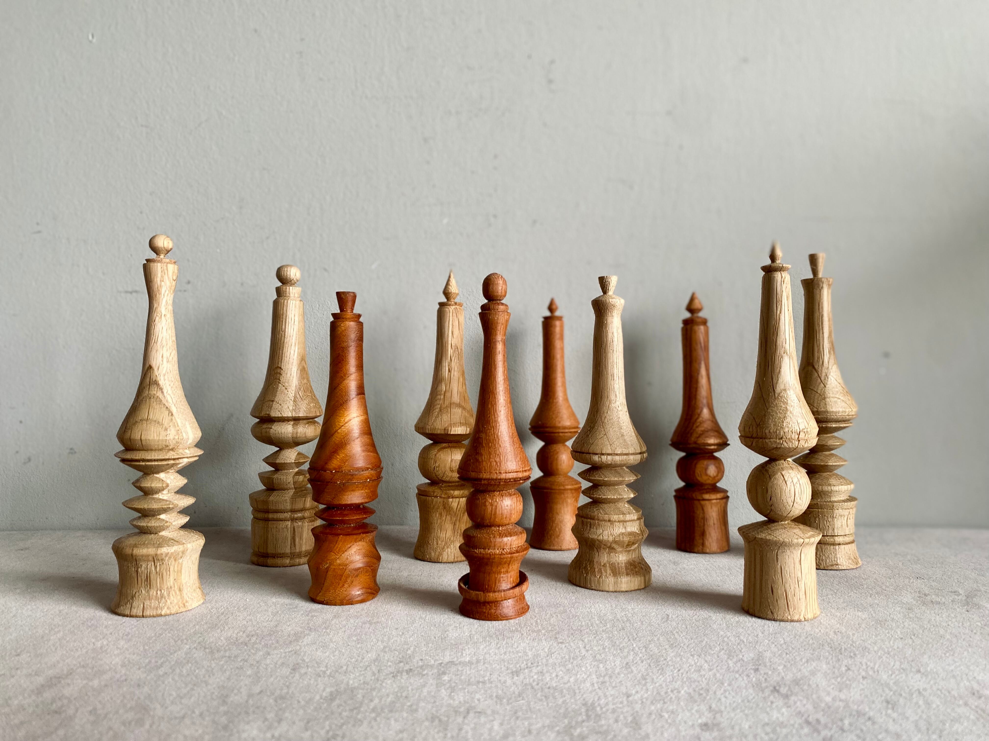 チェスの駒をイメージし、そのままオブジェになるようなデザインで、手作業で作り上げたVelvetyオリジナル什器です。