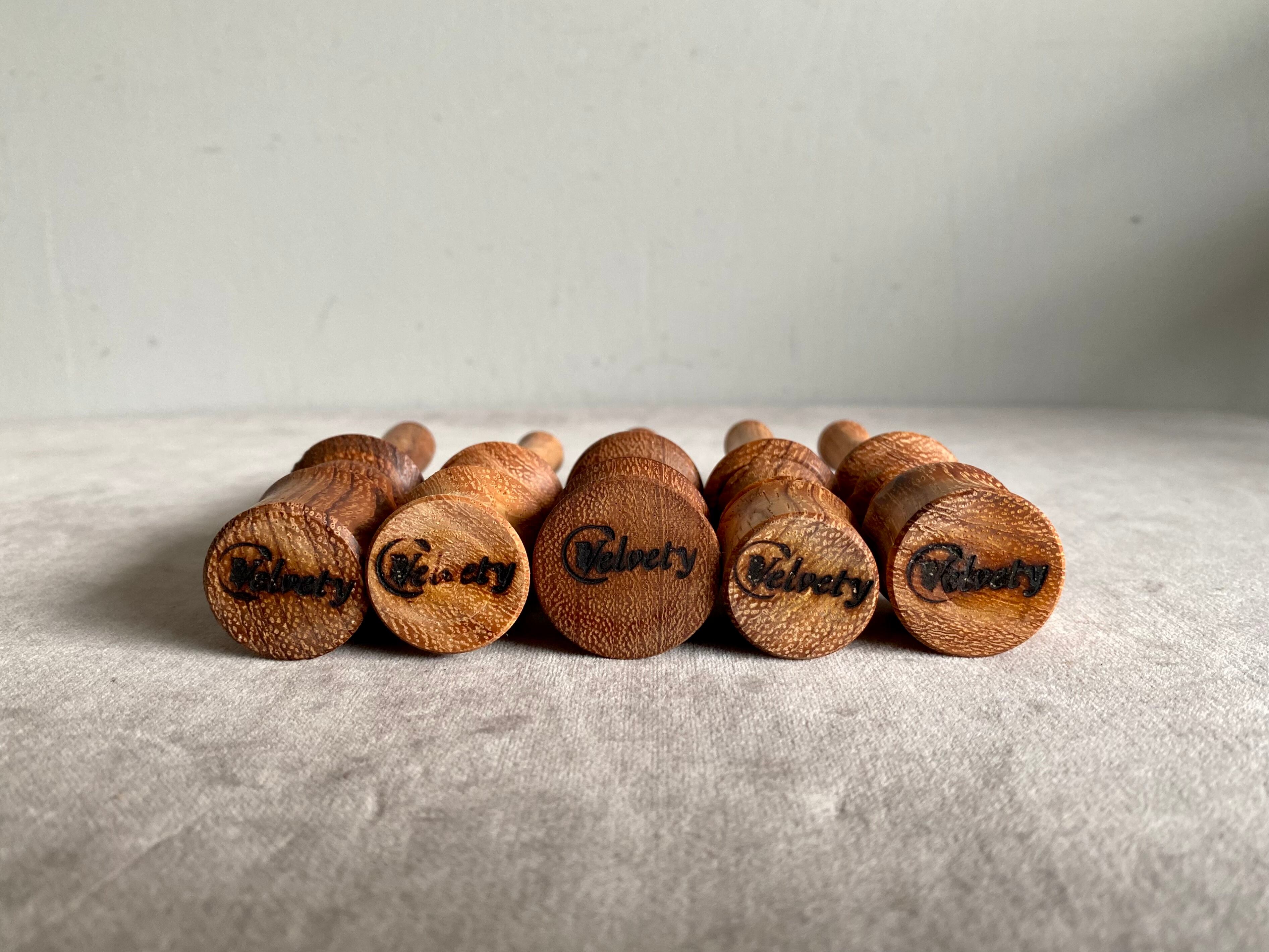 底面にVelvetyの焼印が入っています。天然木に手作業で入れている為、焼印の入り方に個体差があります。