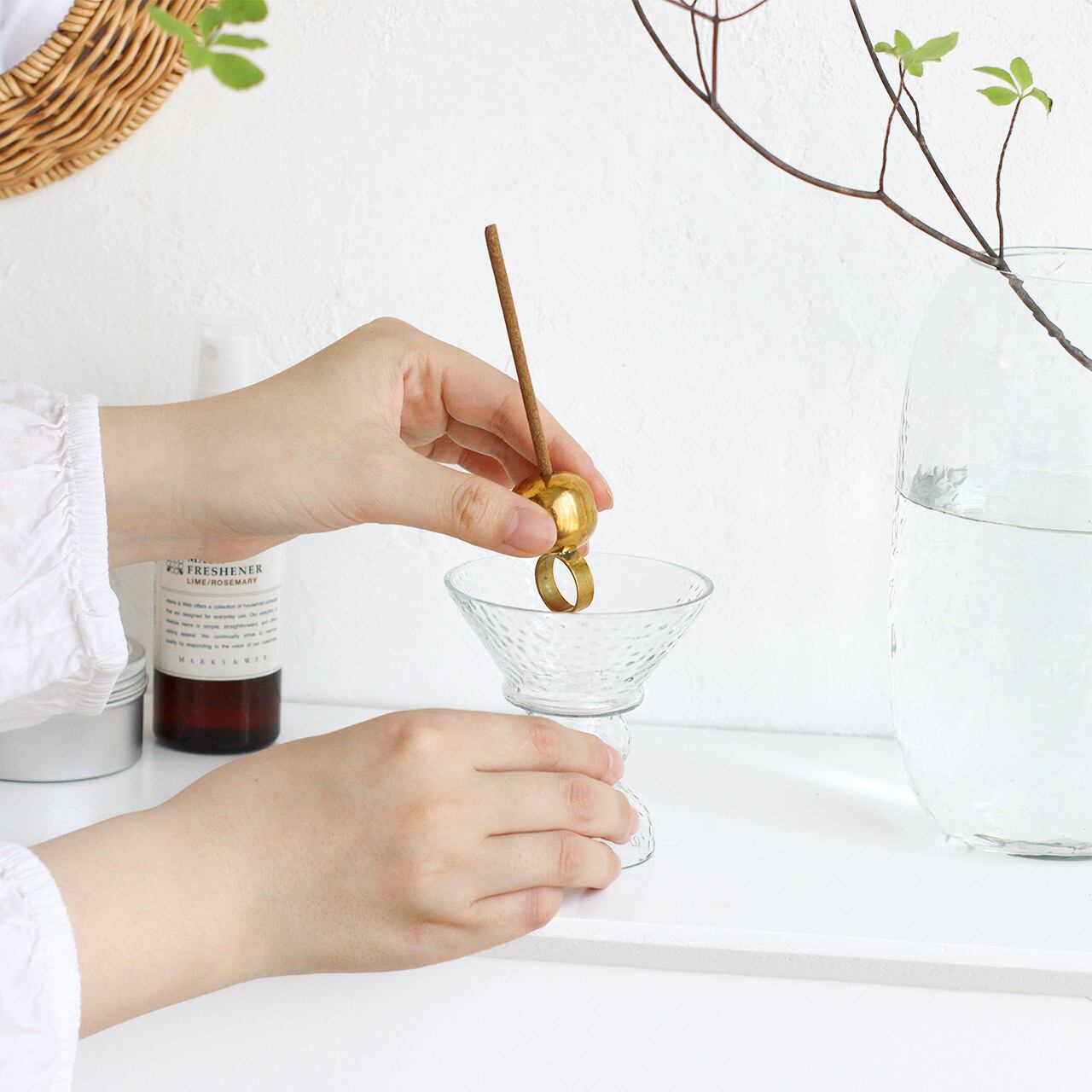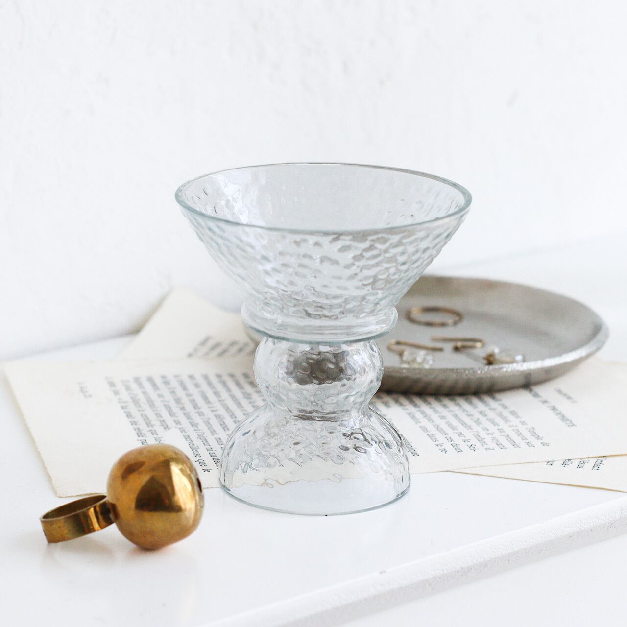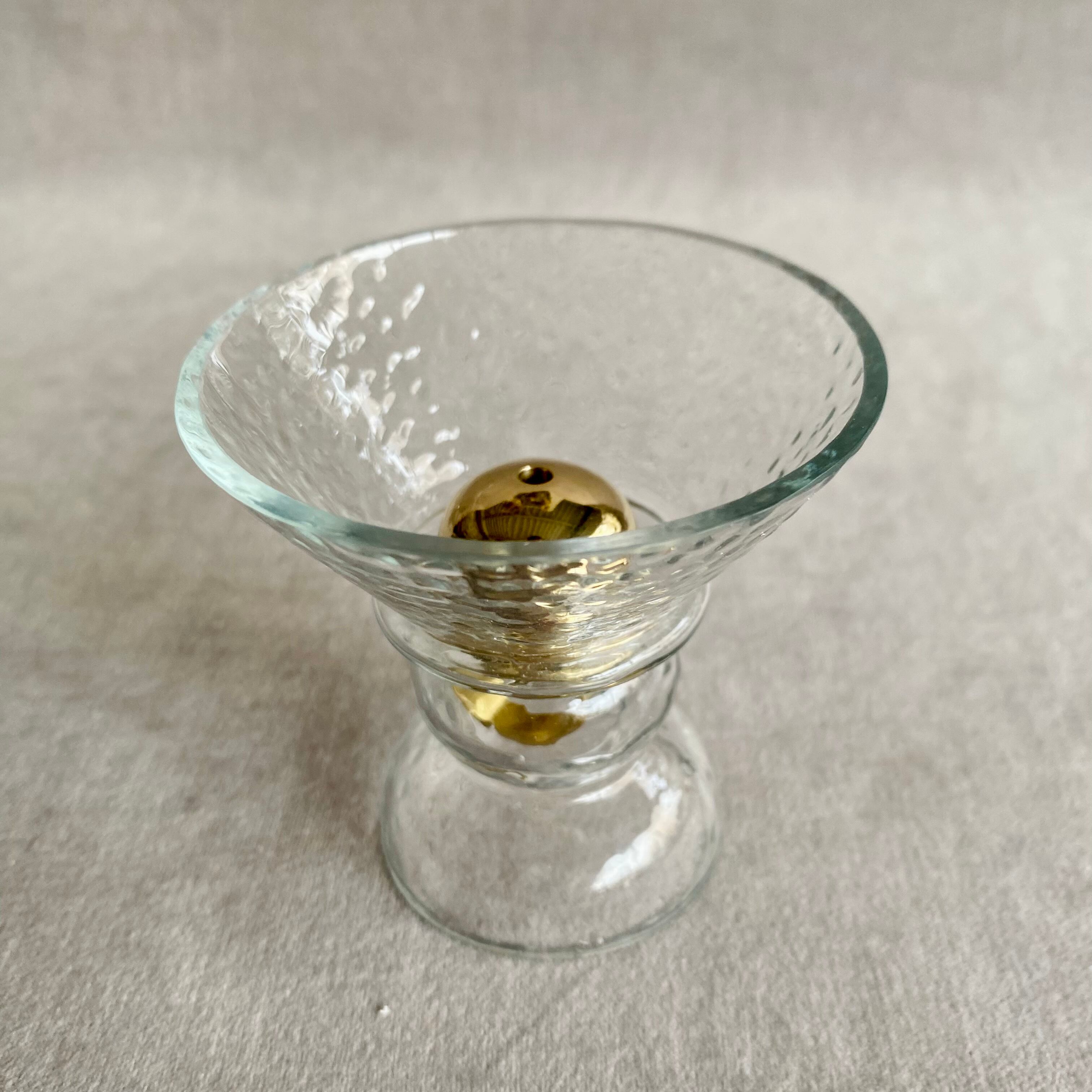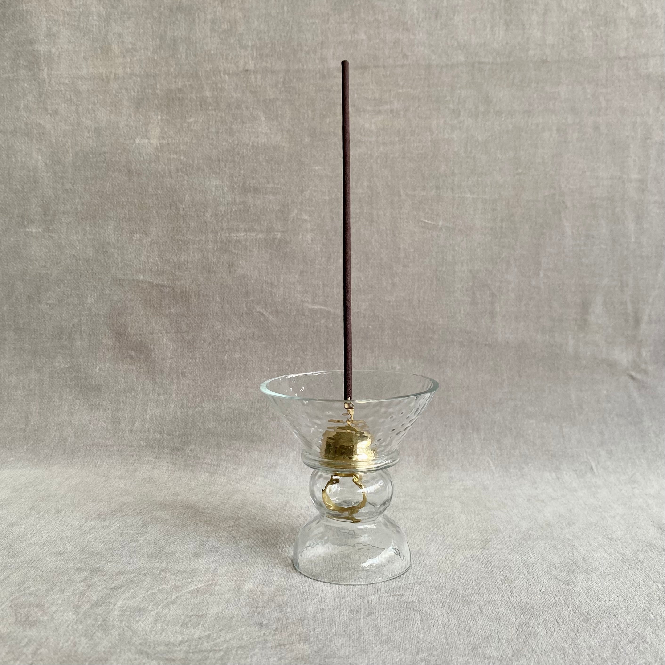 凹凸のあるハンマートーン仕上げのガラスとゴールドの真鍮が、上品で洗練された印象を与えてくれるお香スタンドです。