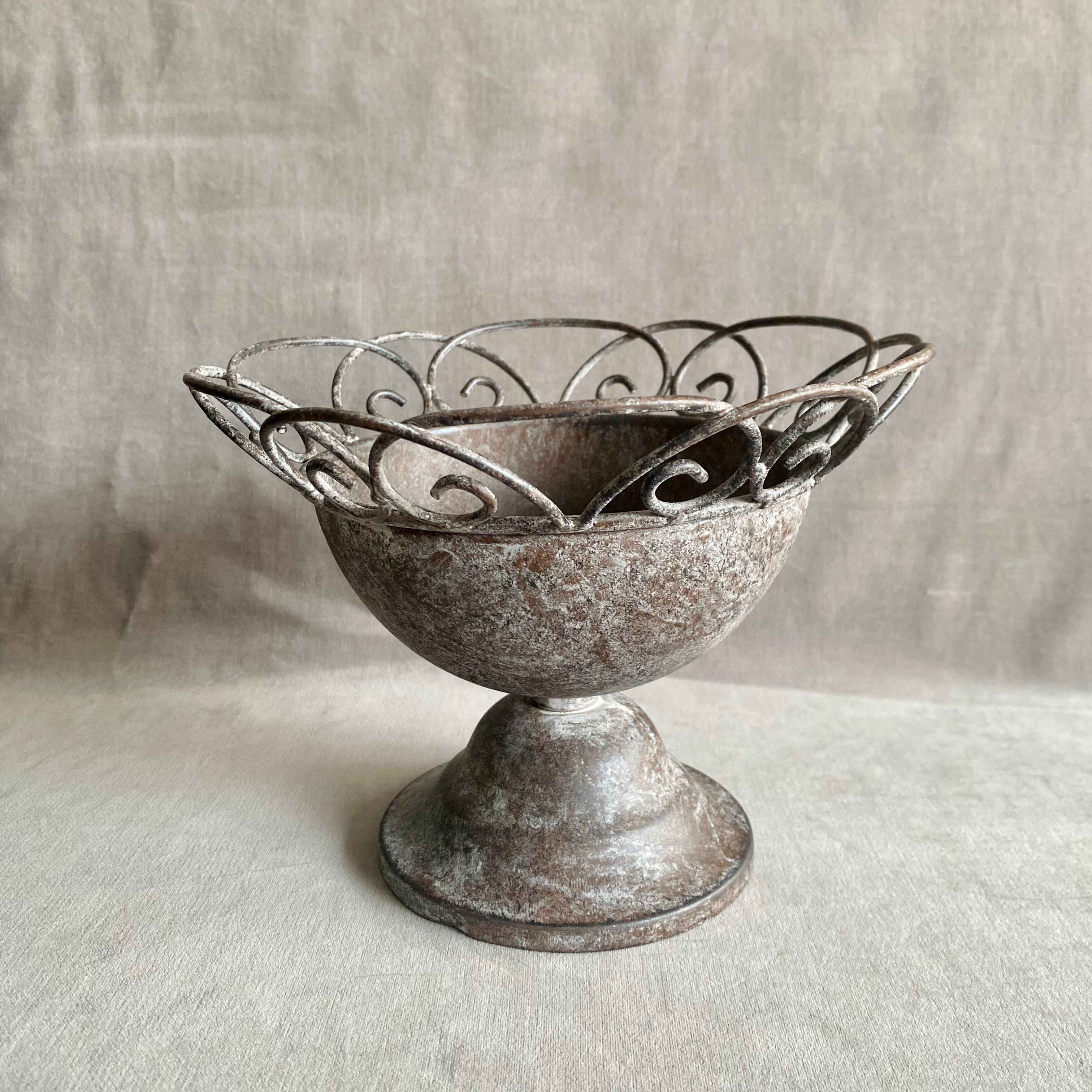 シャビーアイアンの風合いの脚付きガーデンカップ。