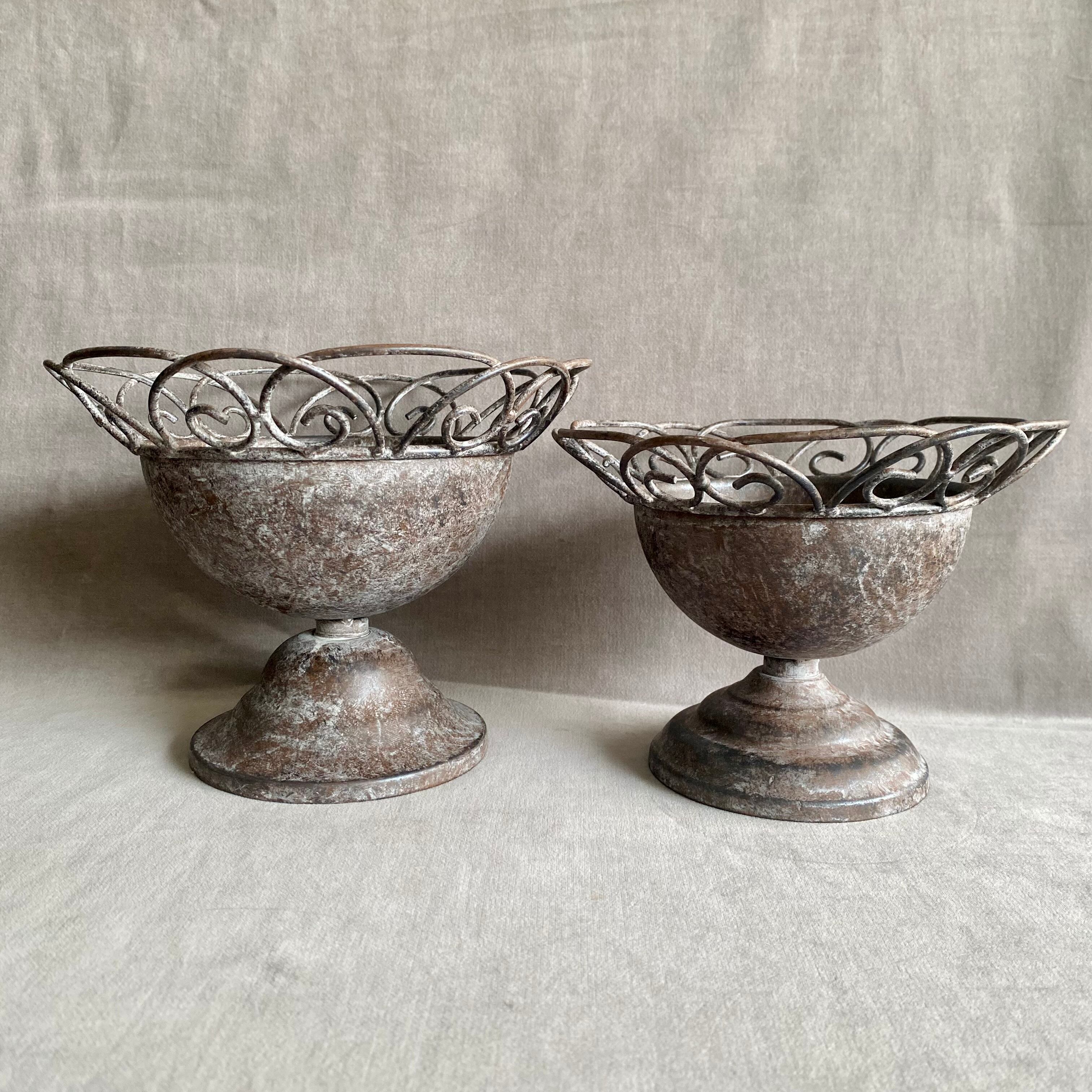 シャビーアイアンの風合いの脚付きガーデンカップ。