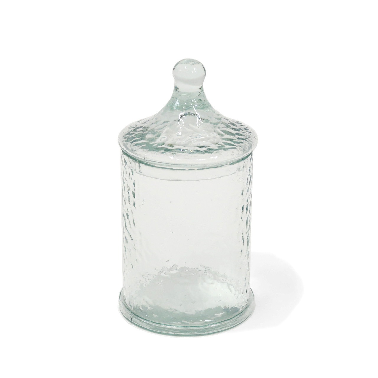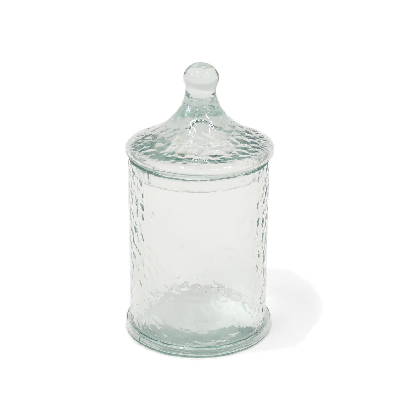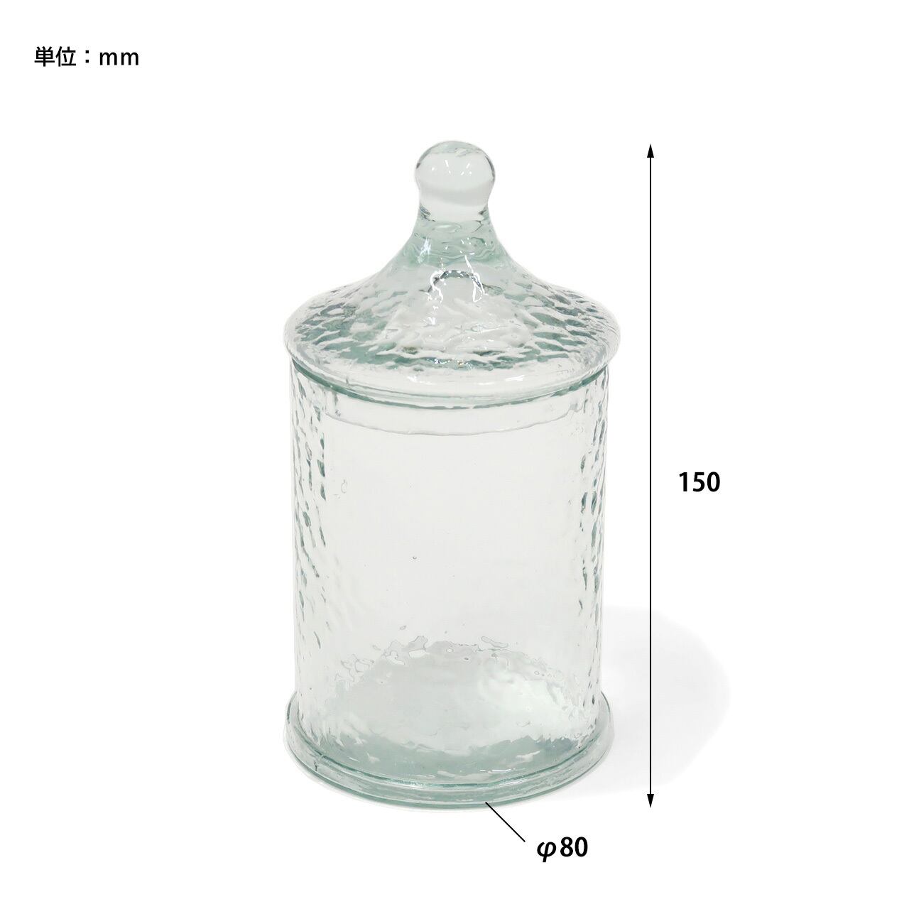 ガラスのゆらぎが美しい凹凸のあるテクスチャー入りガラスキャニスター。
