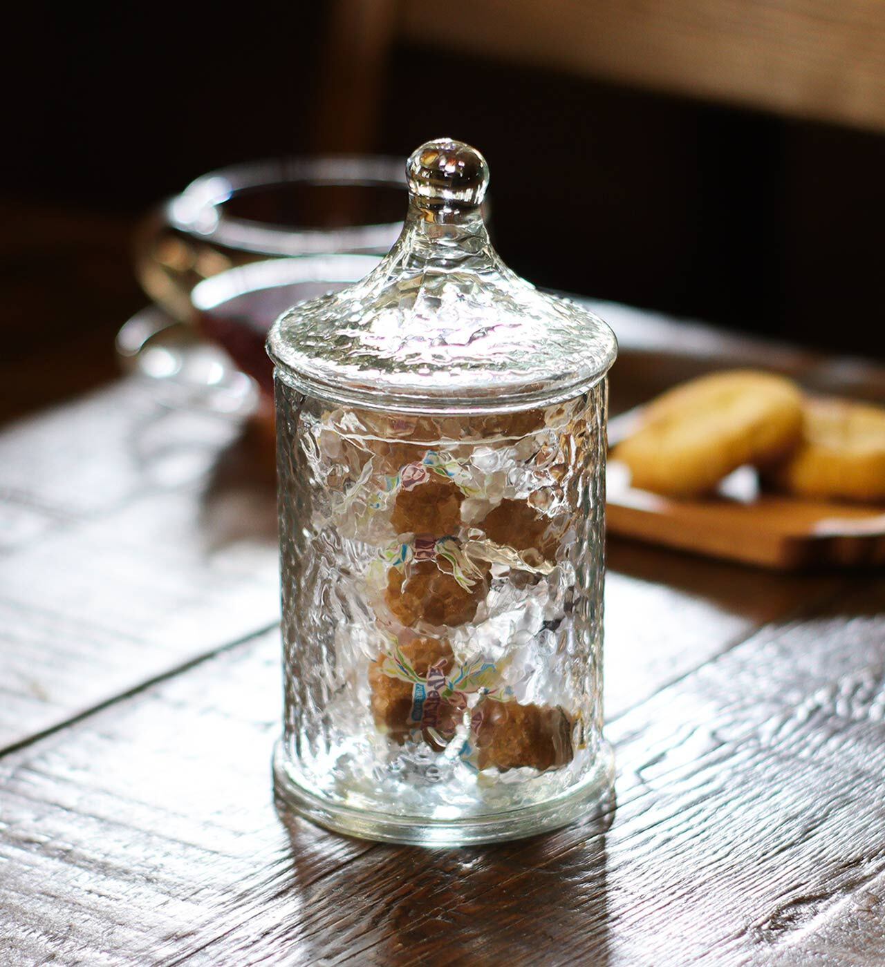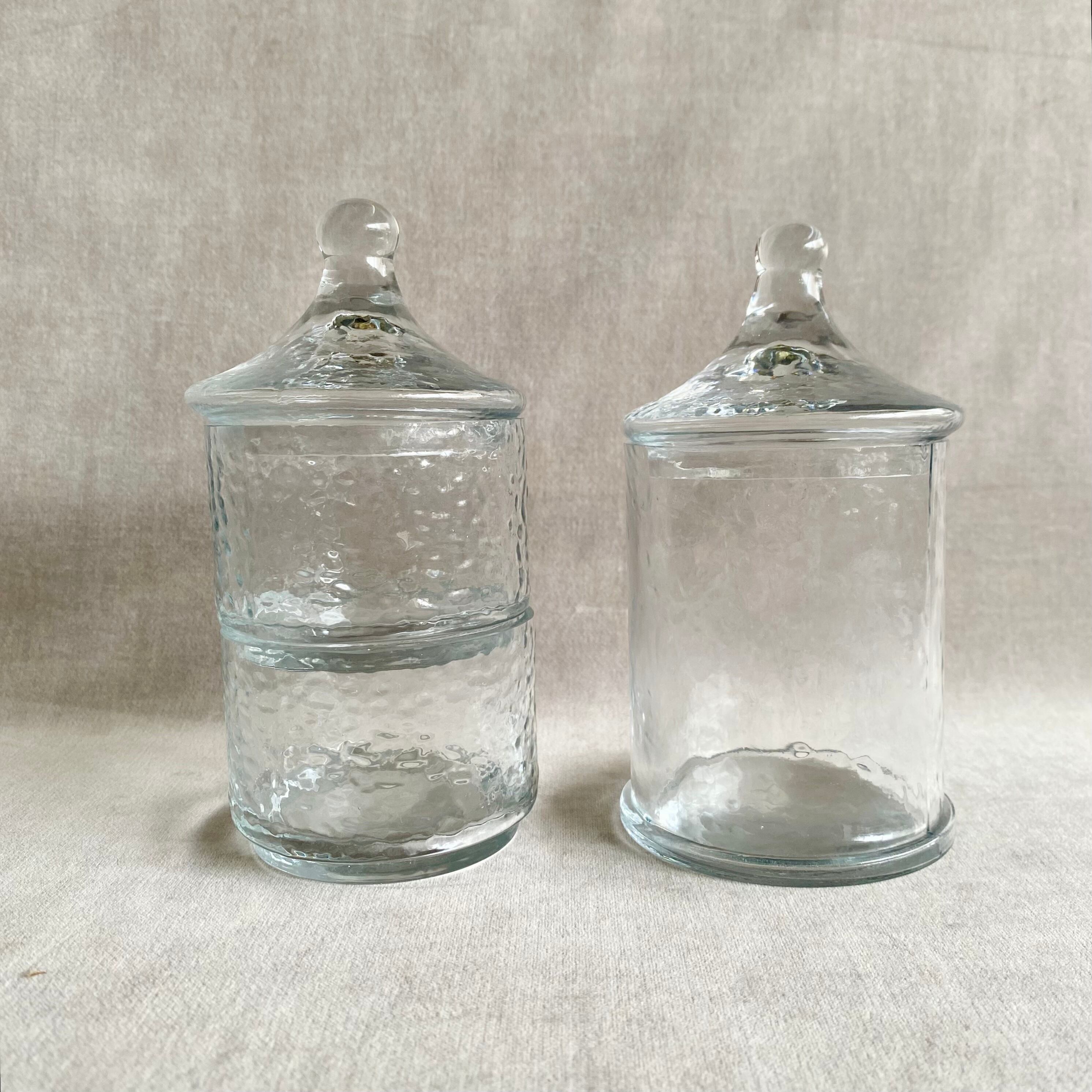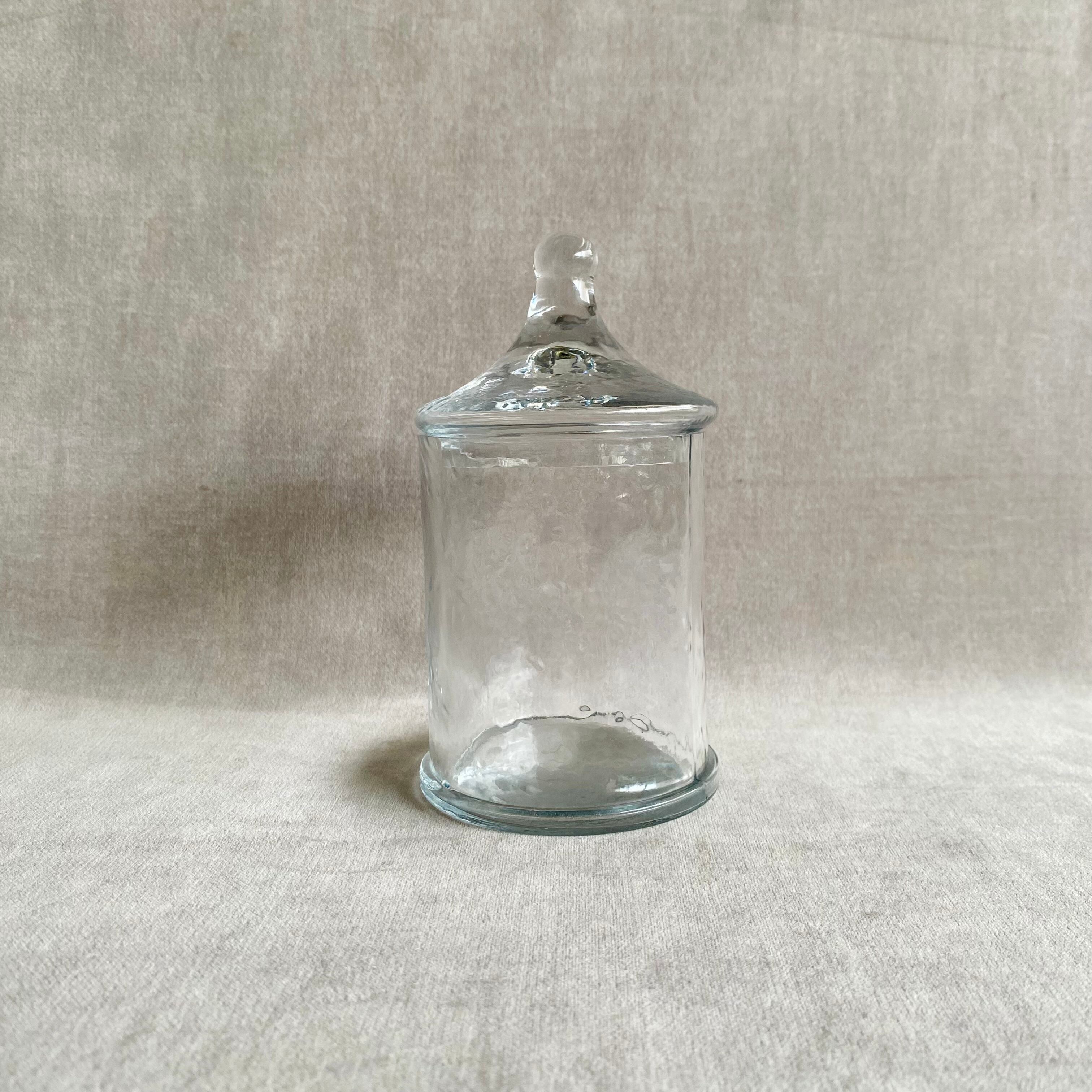 ガラスのゆらぎが美しい凹凸のあるテクスチャー入りガラスキャニスター。