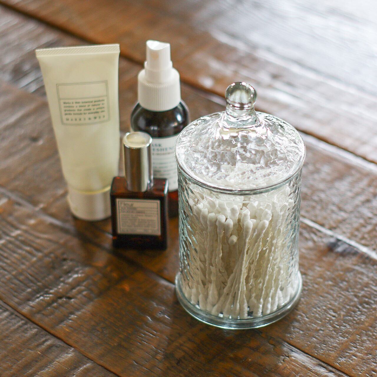 アンティーク風の絵になる小物入れは綿棒などの日用品もおしゃれに収納できます。