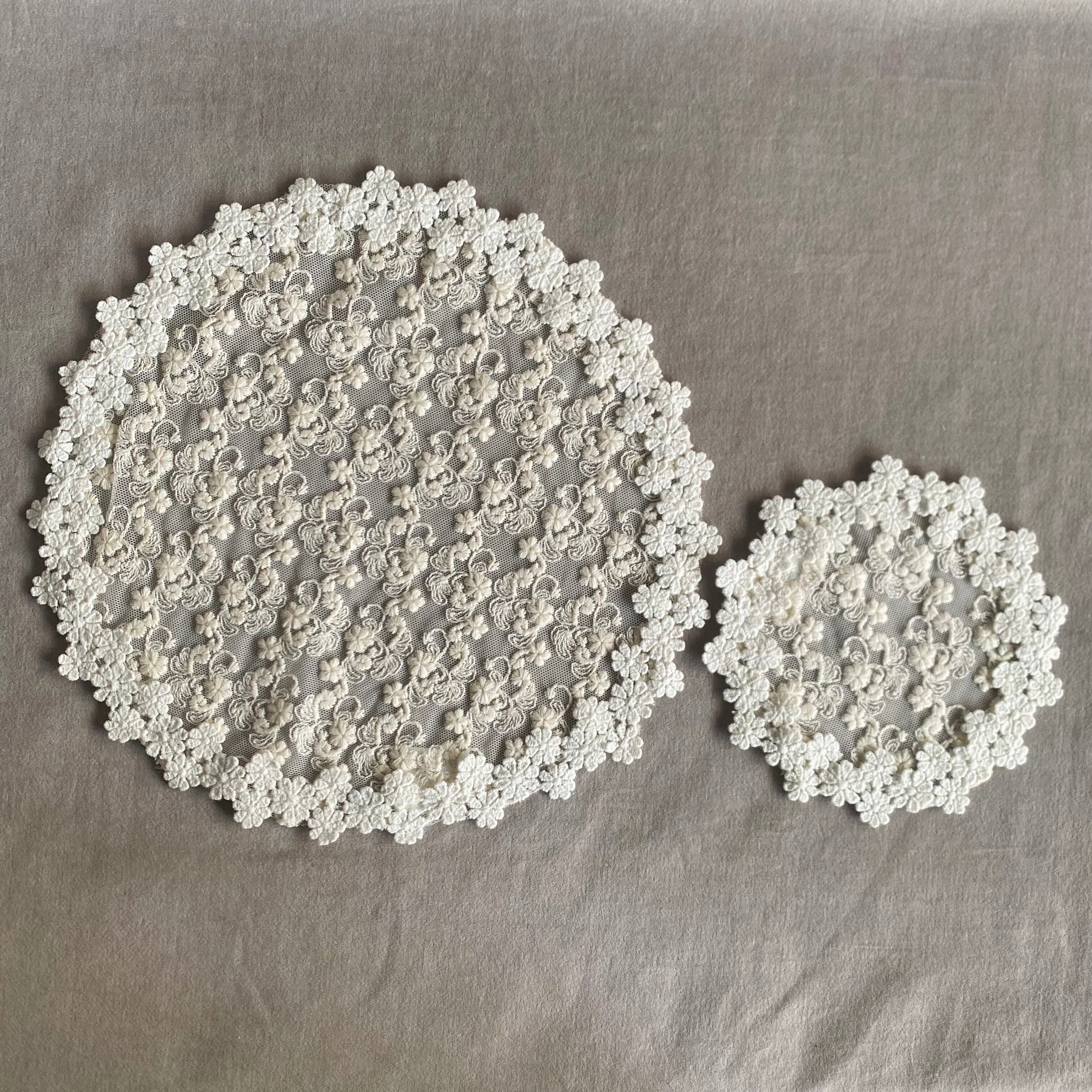 密集度の高いコットン刺繍にチュールレースをあしらったドイリー。