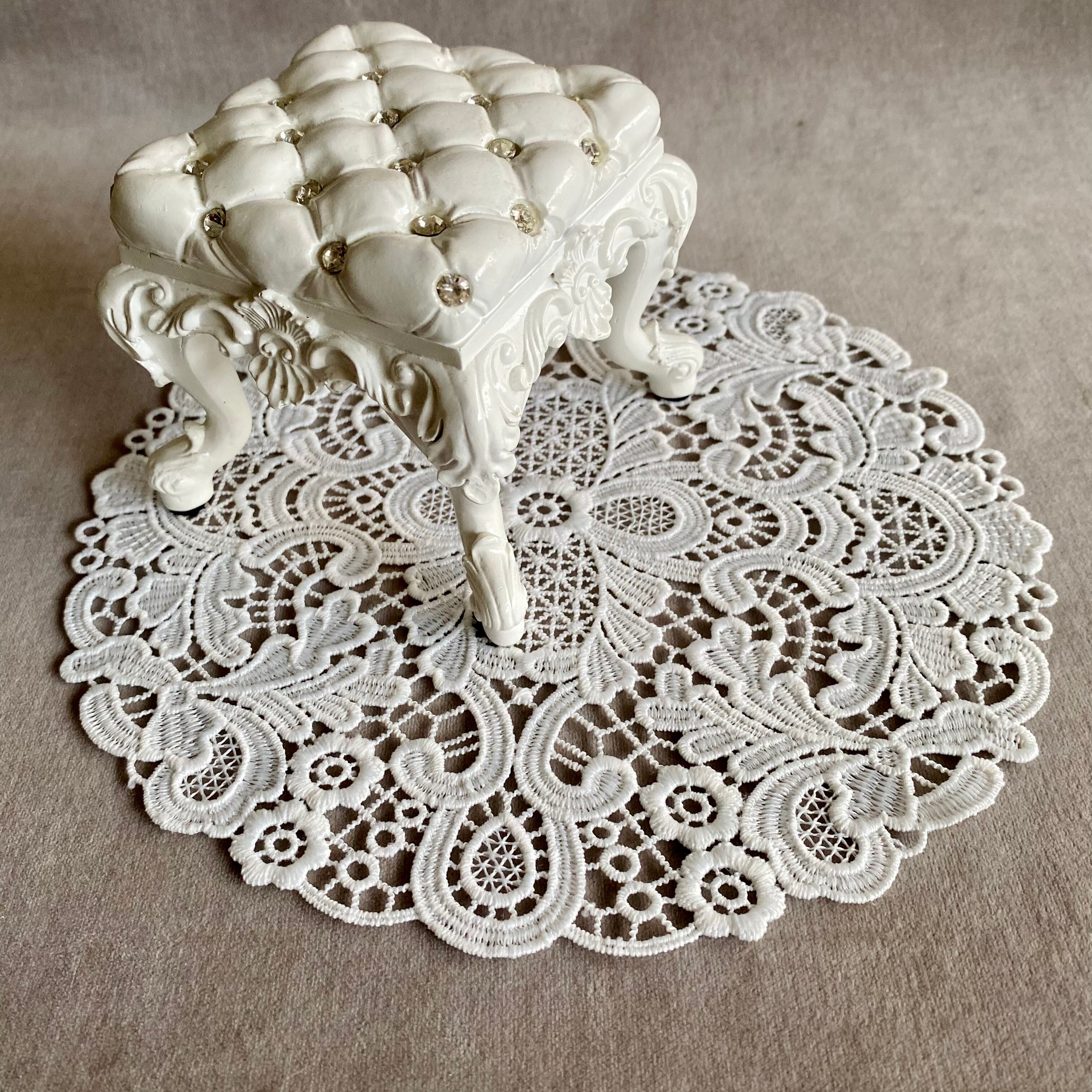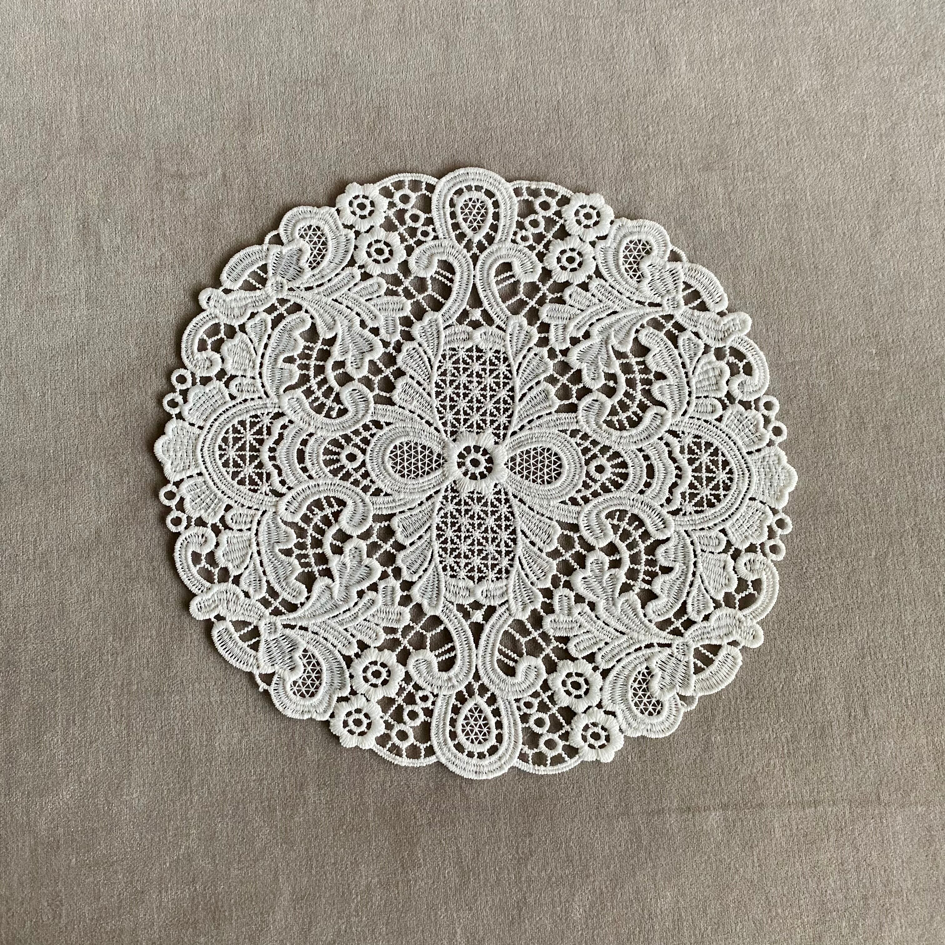 ドイリーとは、卓上用や小物置きとして使われる、レースや刺繍で装飾された小さな敷物のことです。もともとは、フィンガーボールやデザートなどの下に敷くために使われていましたが、現在では花瓶敷きやインテリアのアクセントとして、様々な素材や形で使われています。