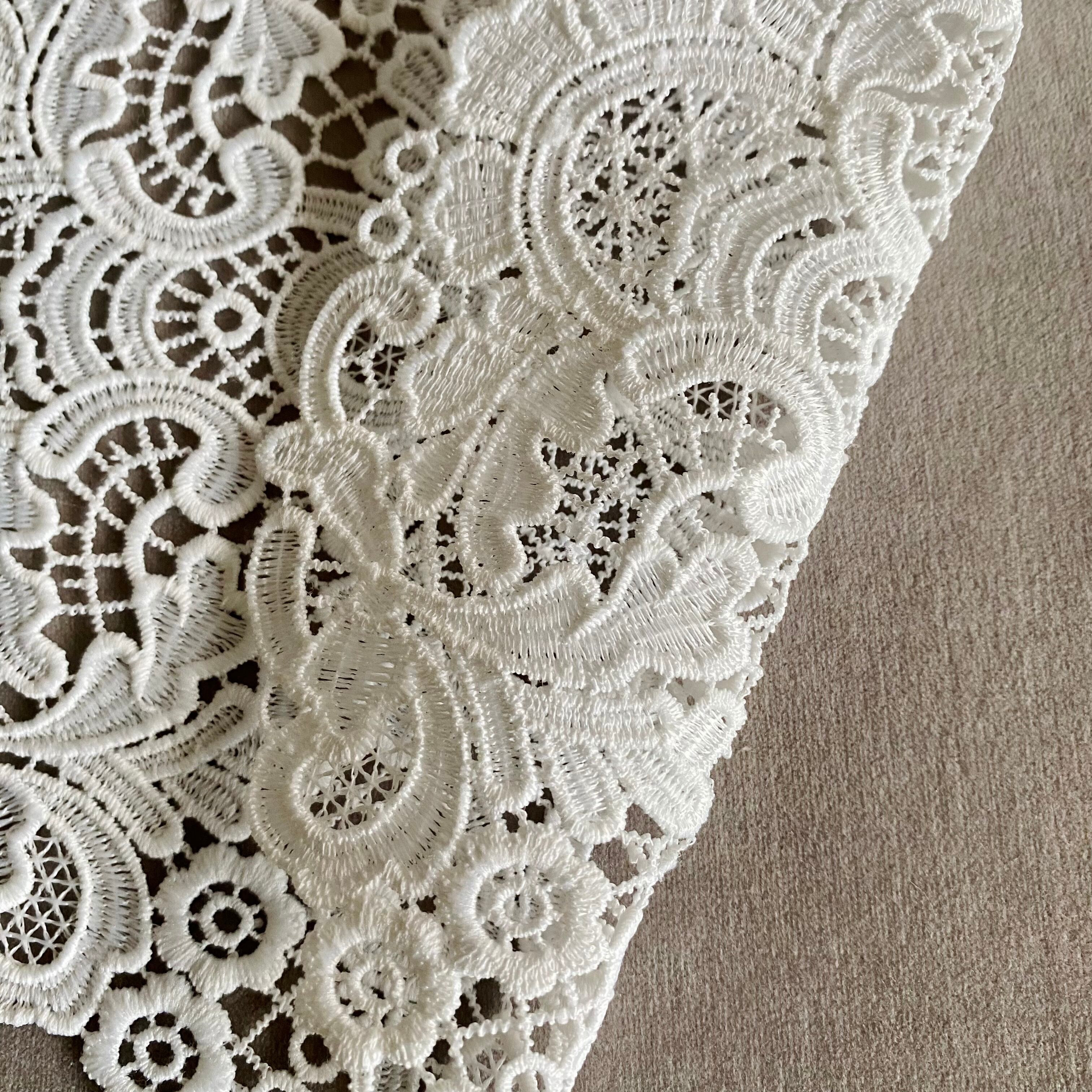 ギュピールレースとは、刺繍の技術を応用した機械レースの一種で、透かし模様や立体感のあるレリーフ状の模様が特徴です。