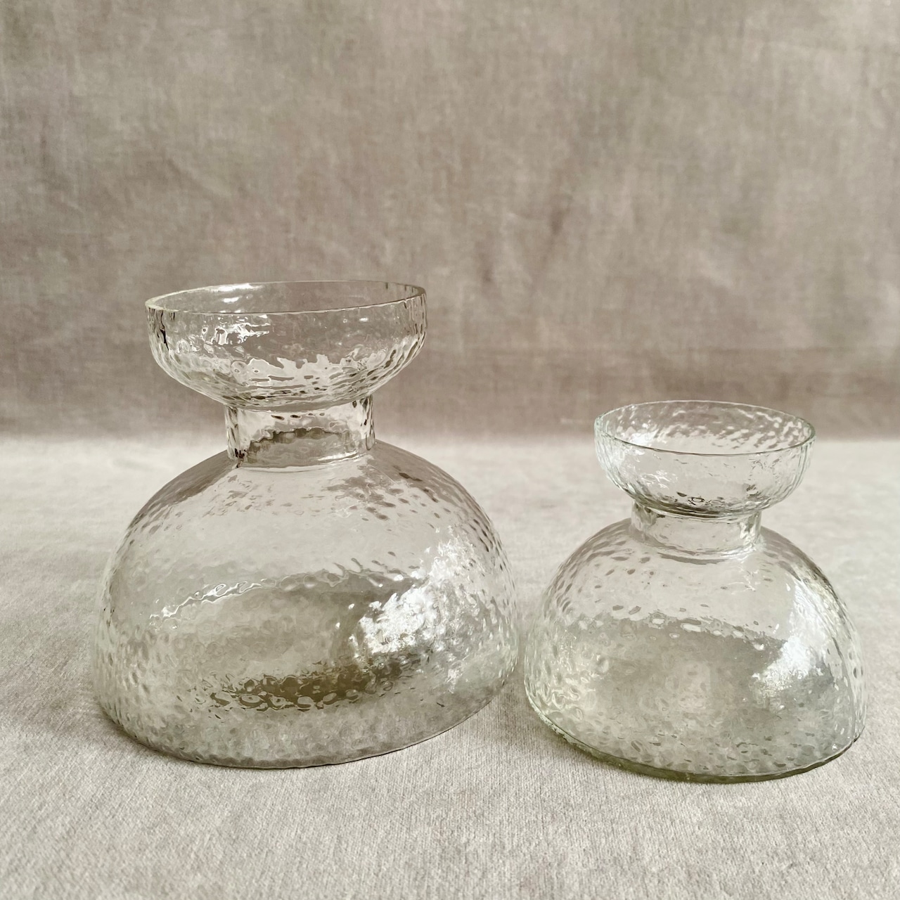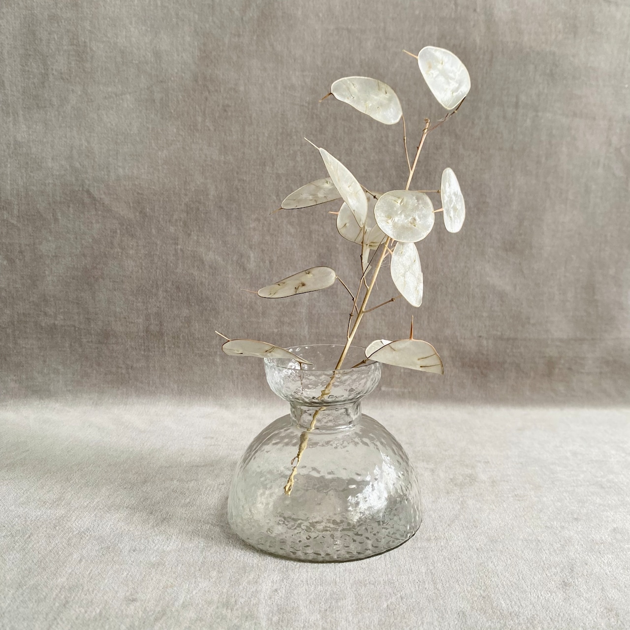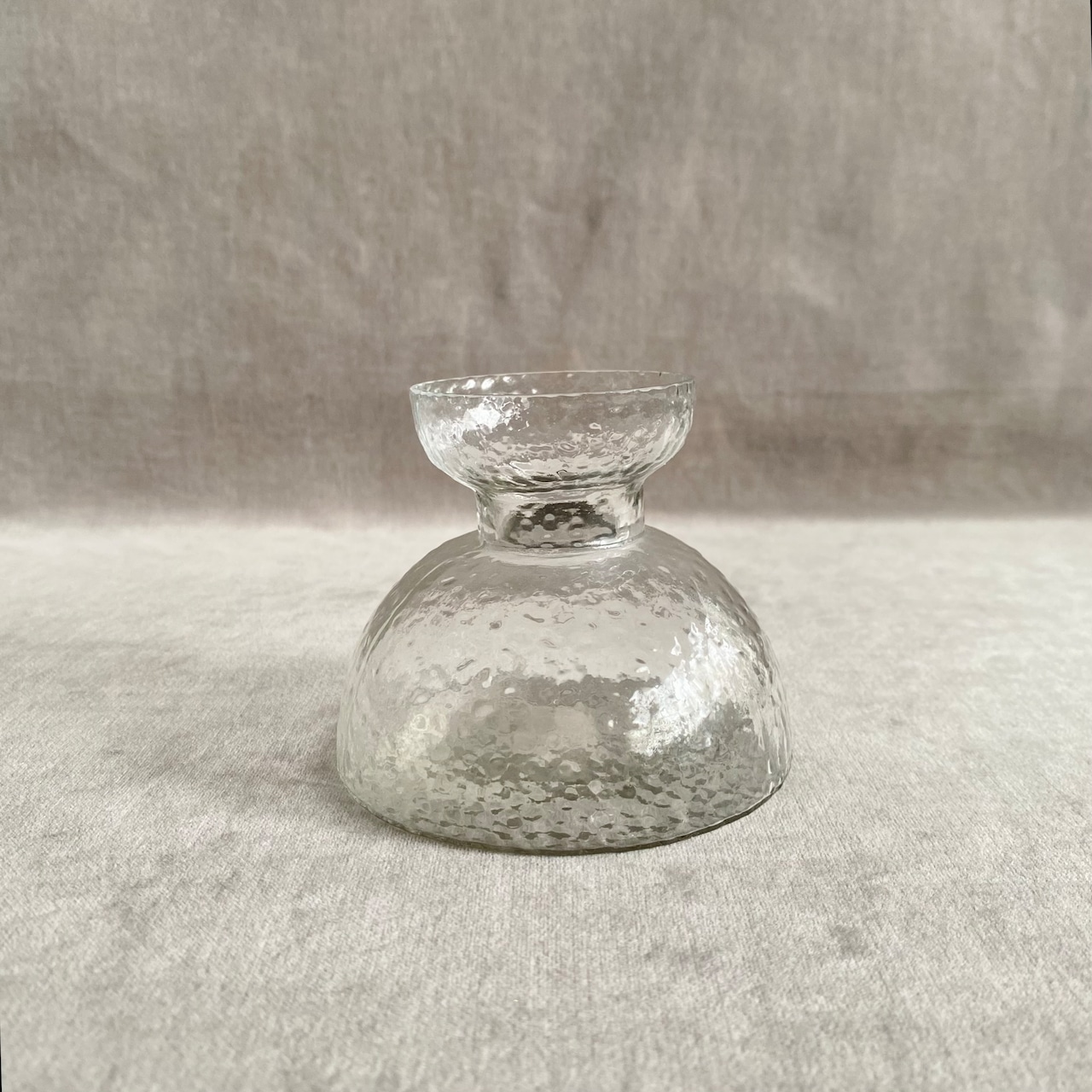 凹凸のある表面が光をやわらかく反射し、控えめなサイズ感が空間にやさしく馴染みます。