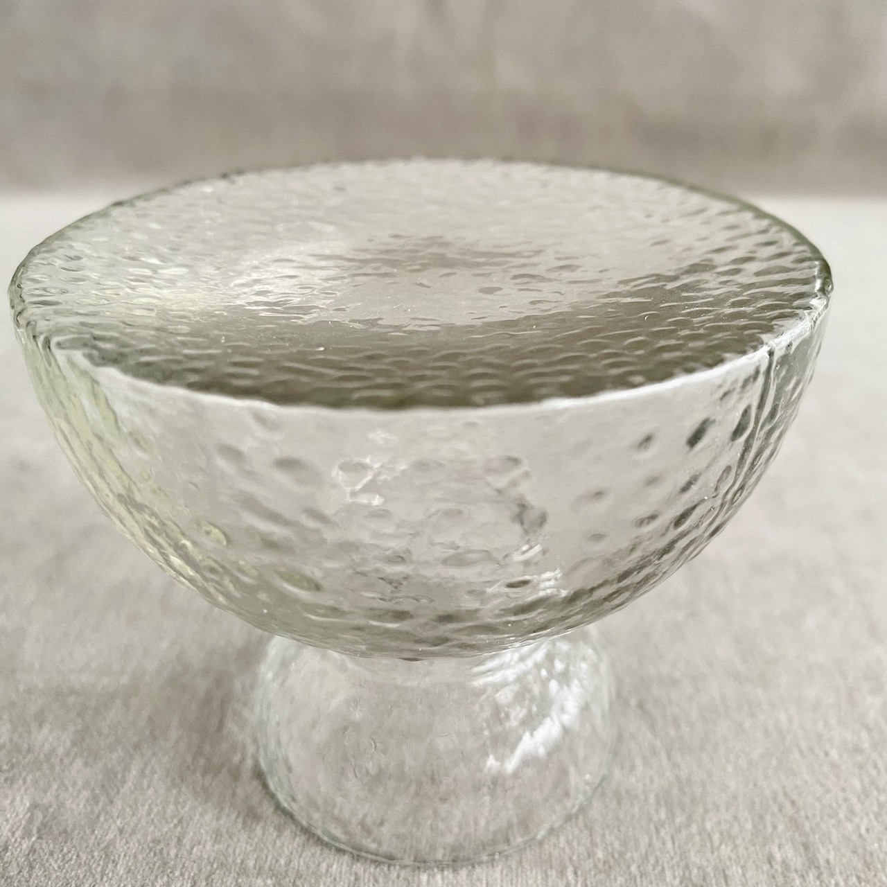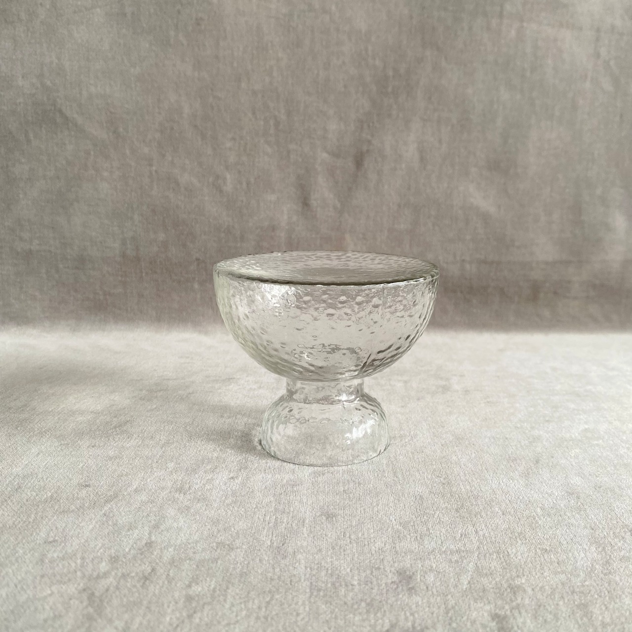 小ぶりなガラスコップのような形が印象的な、フラワーベースとしても使えるガラス製のスタンドトレイ。