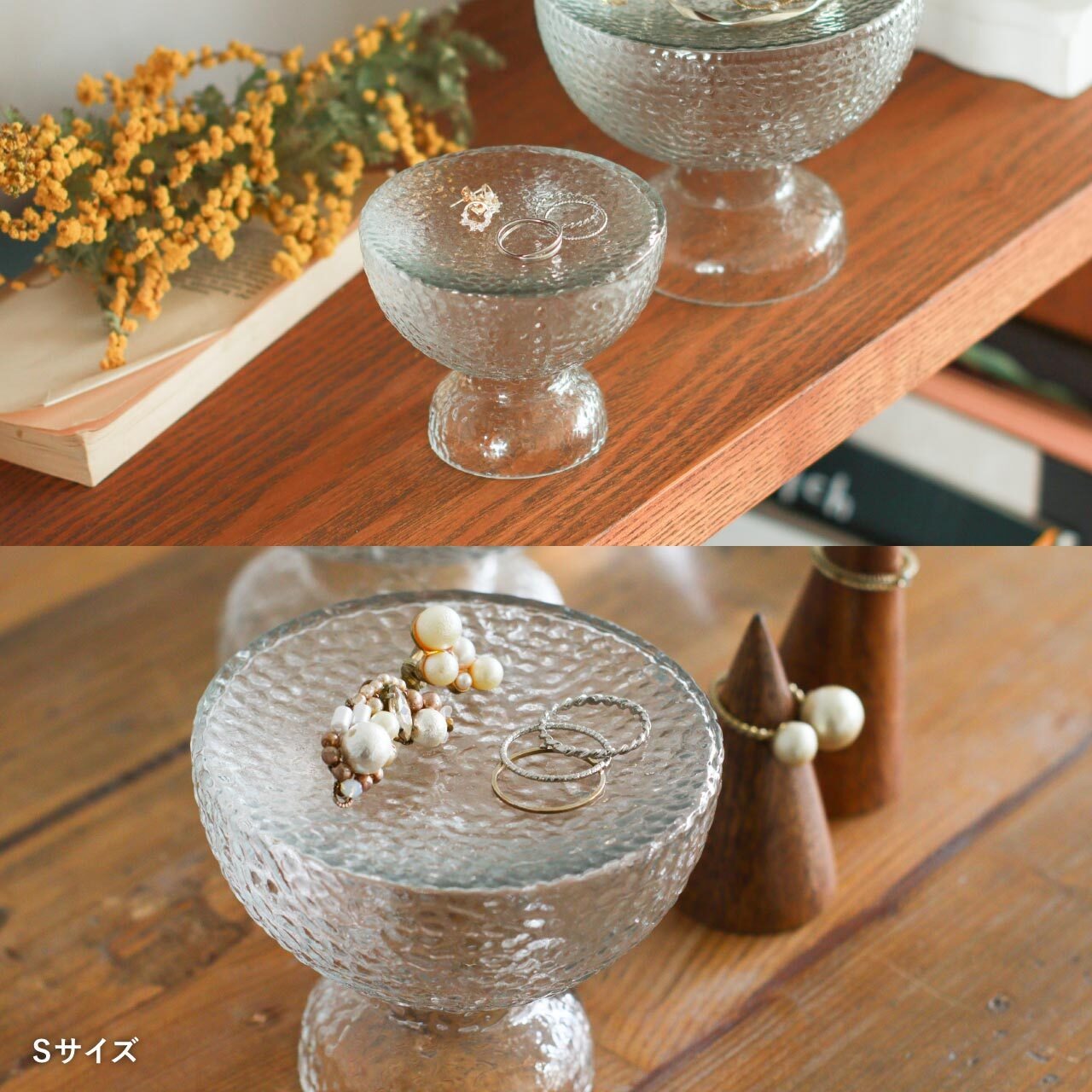 リングやピアスなど、小さなアクセサリーの置き場所としてちょうどよく、ただ収納するだけでなく、飾るように楽しめるのも魅力のひとつです。