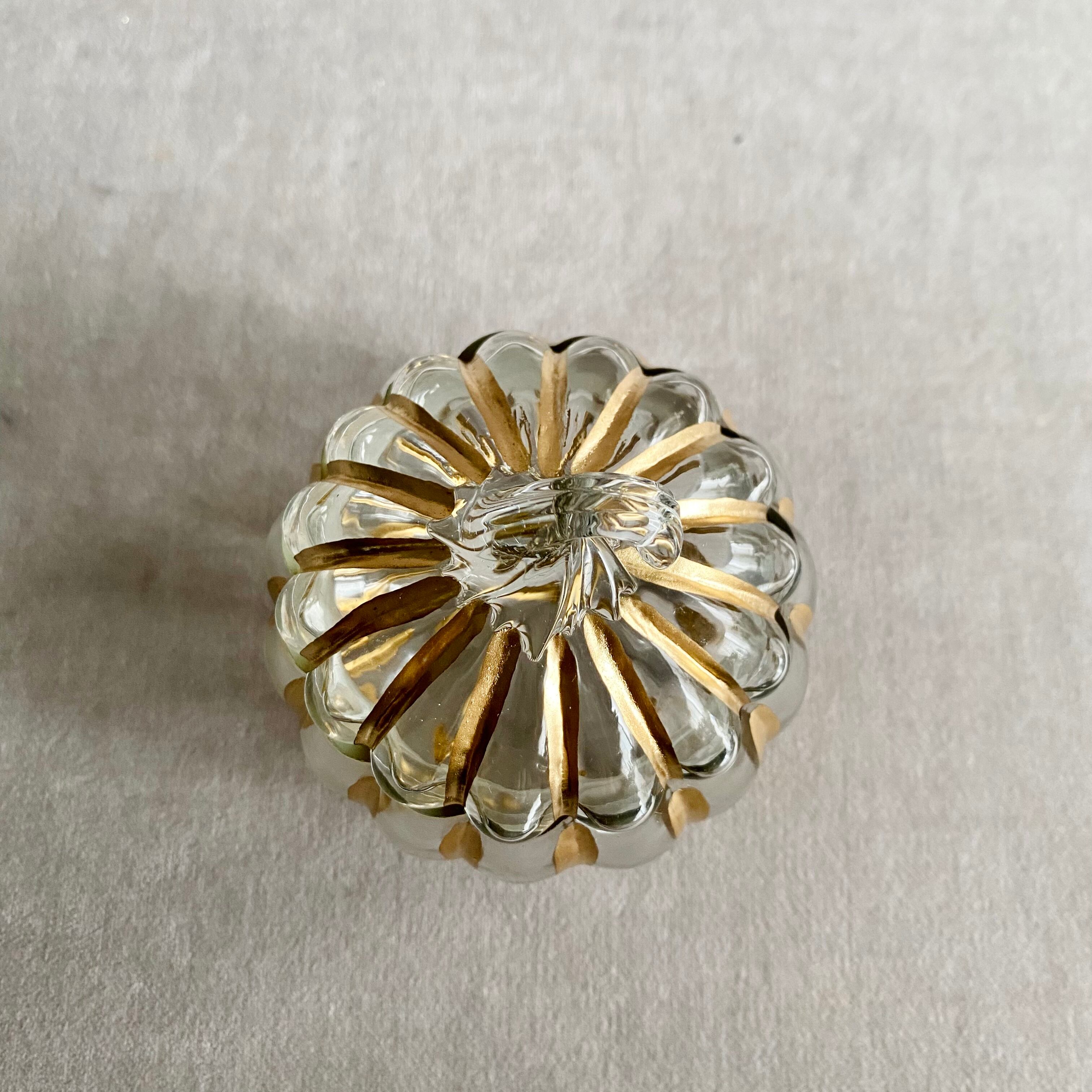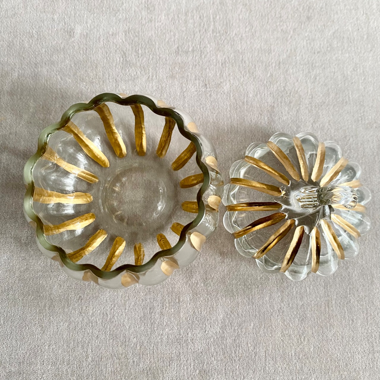 ゴールドのラインが入ったパンプキンデザインが可愛らしいガラス製のキャニスター。
