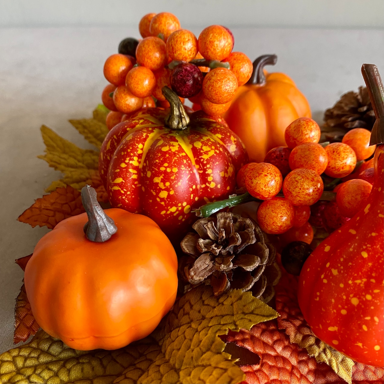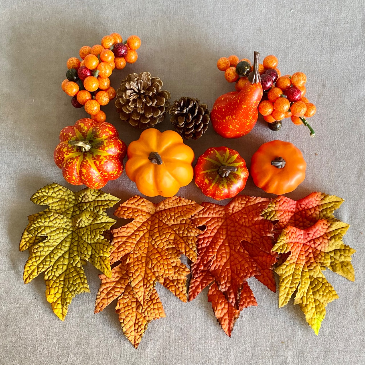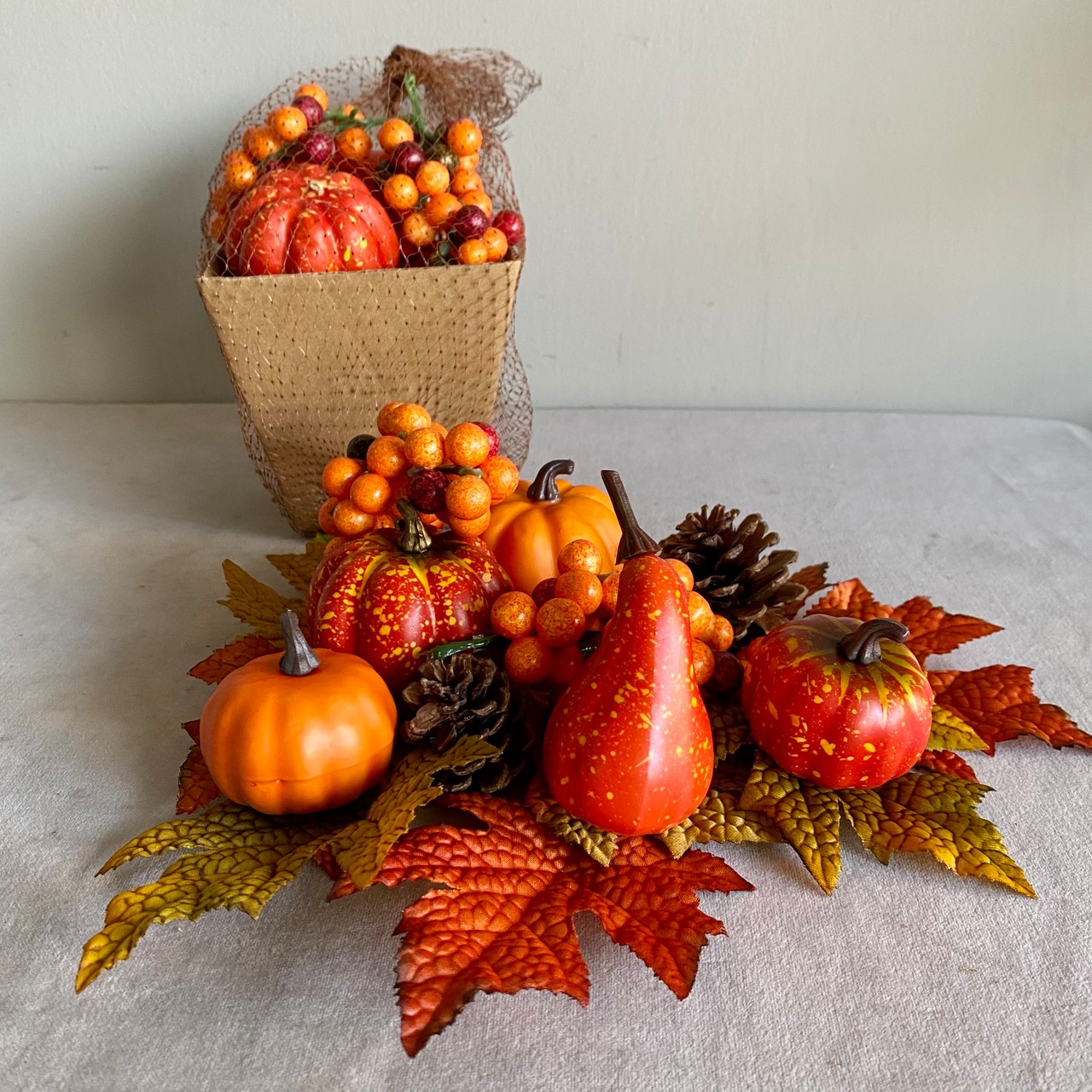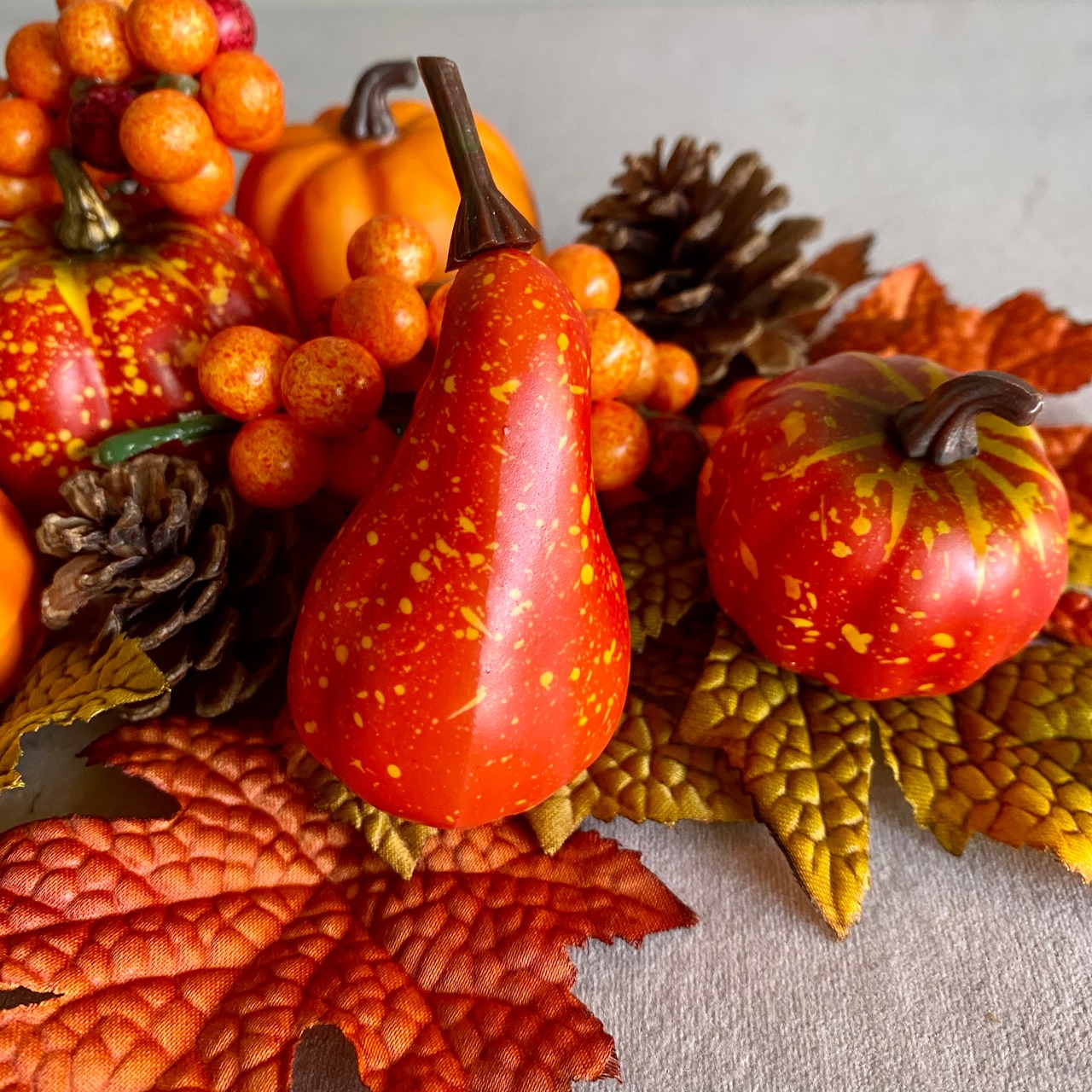 フェイクの小さなパンプキンやベリーや葉っぱのセット。