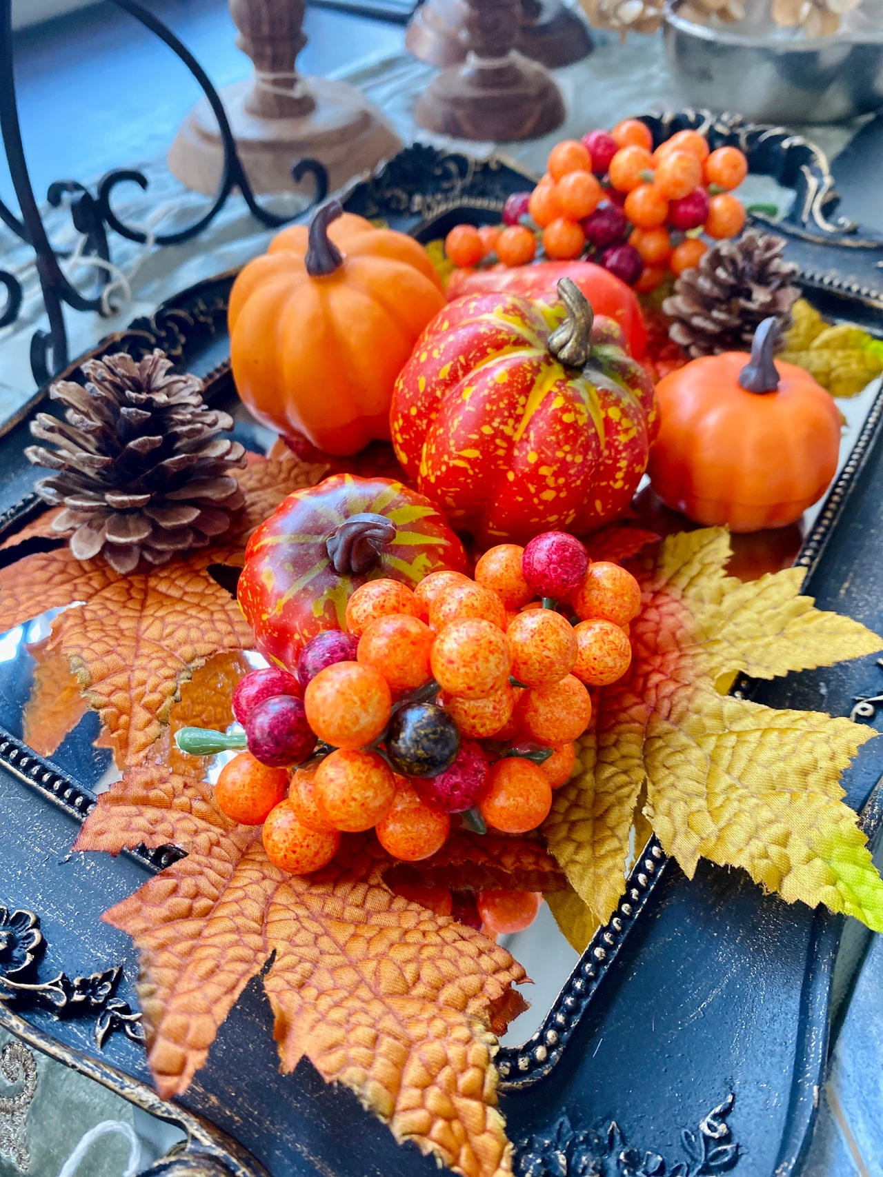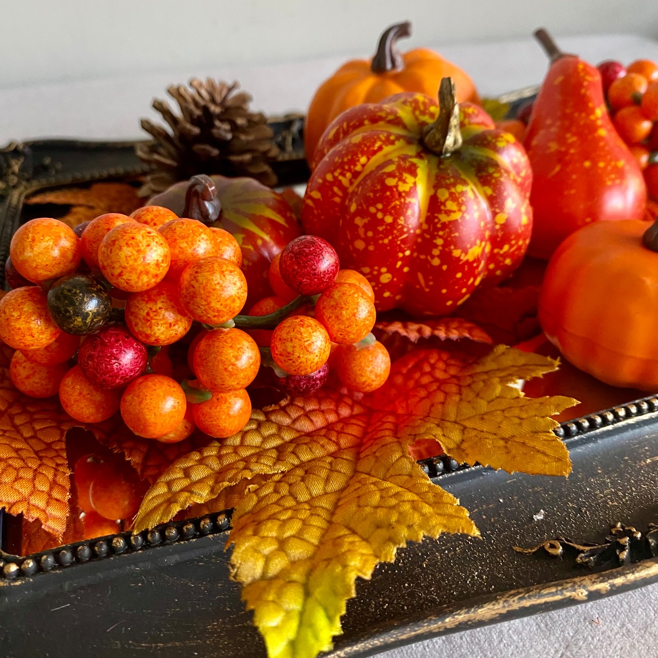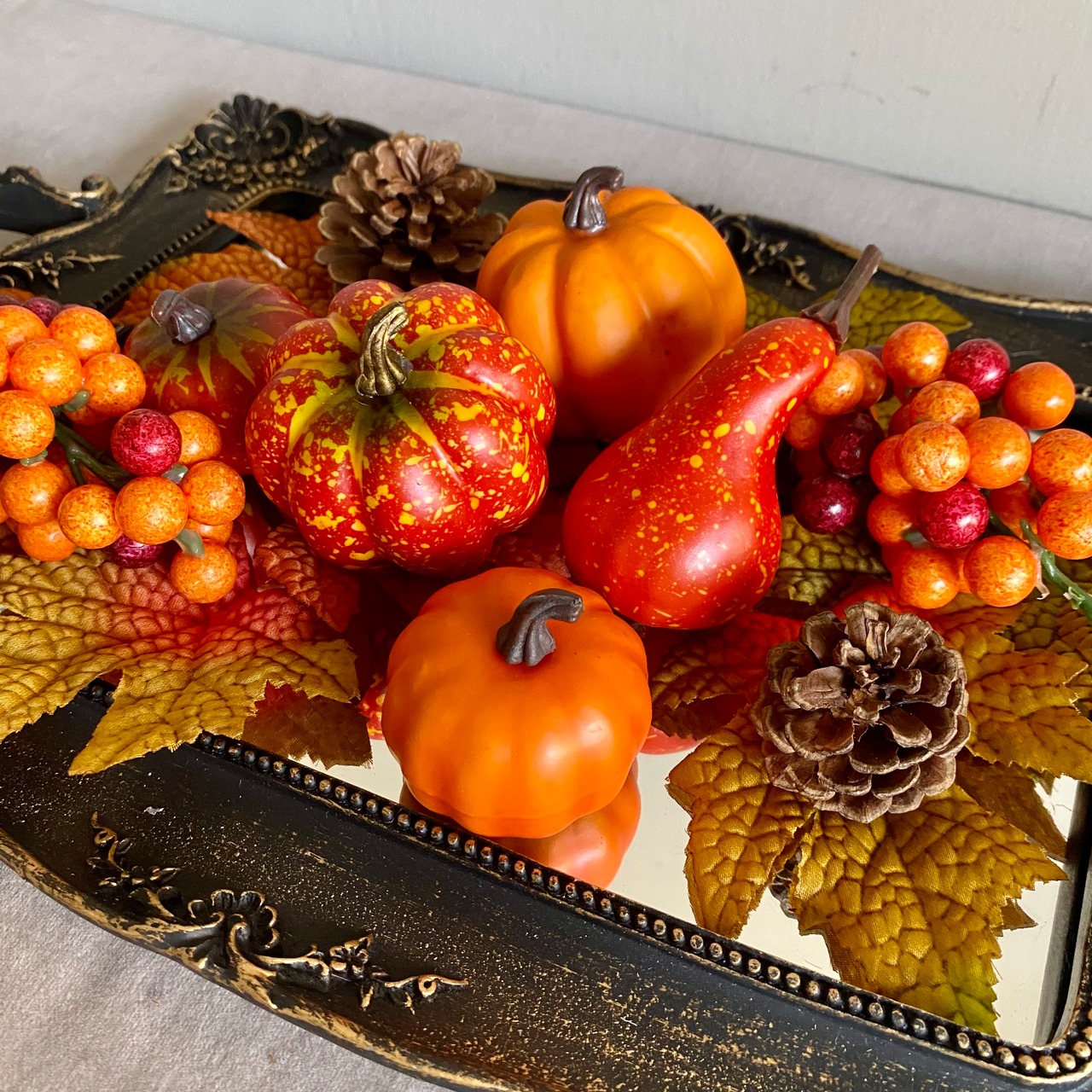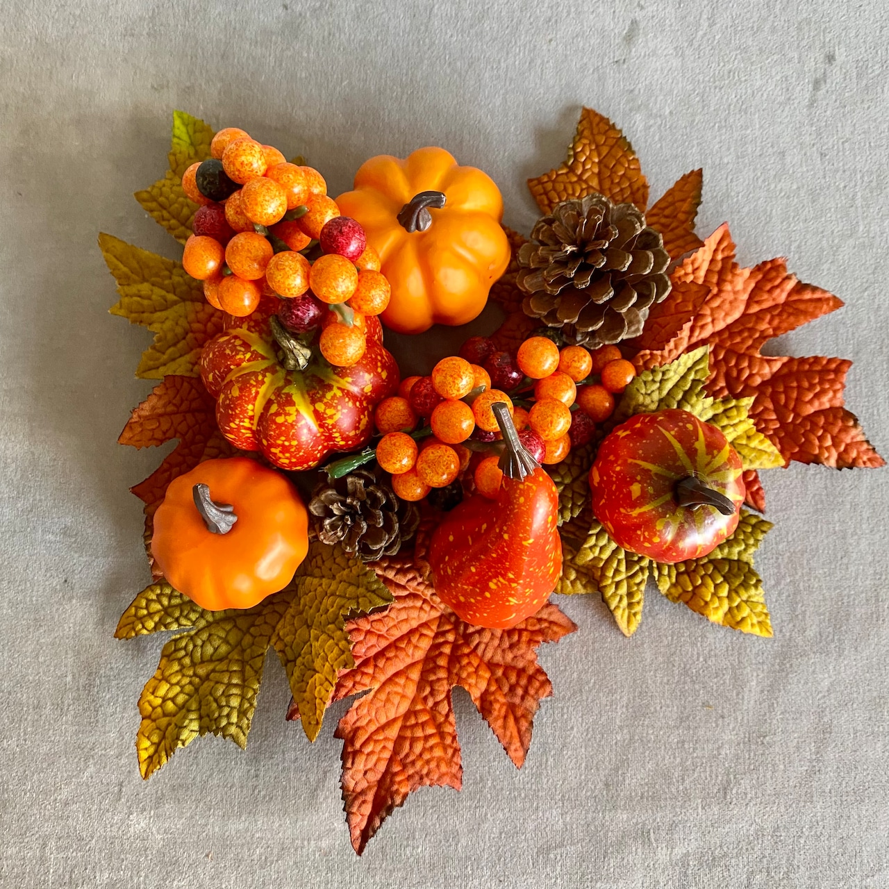 フェイクの小さなパンプキンやベリーや葉っぱのセット。