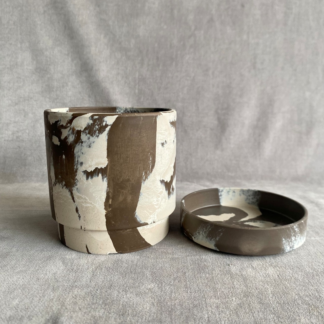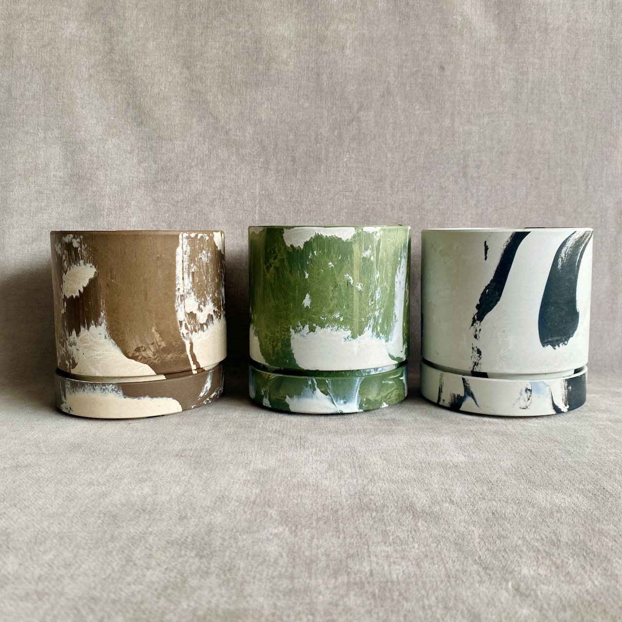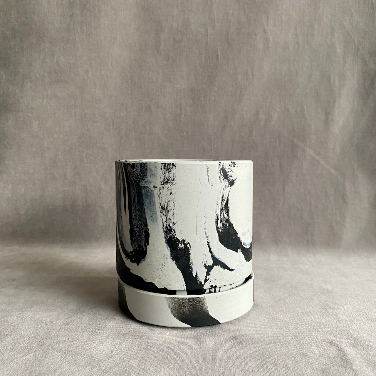 マーブル模様のおしゃれな樹脂製プランター(鉢)。