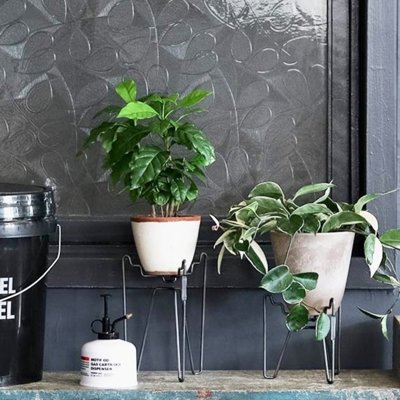 無骨なスチールの素材感が鉢の足元をクールに演出してくれるスタンドです。