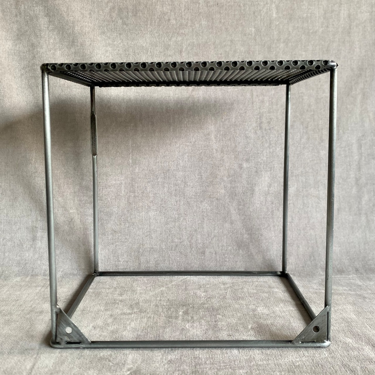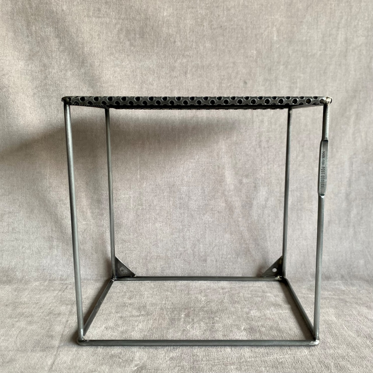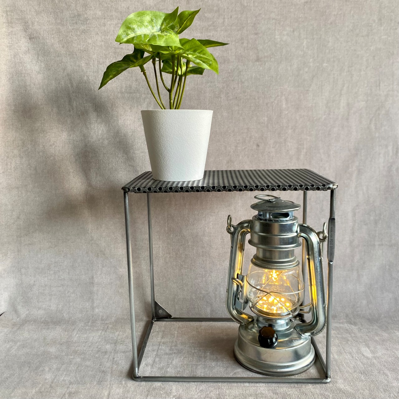 フレームとメッシュ状の天板の無骨な素材感が鉢の足元をクールに演出してくれるアイテムです。