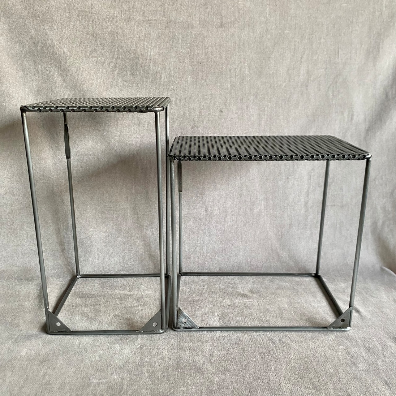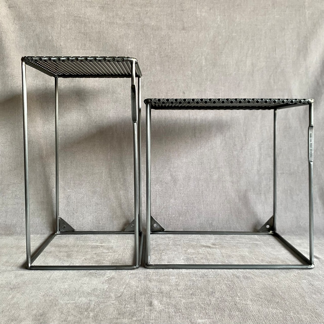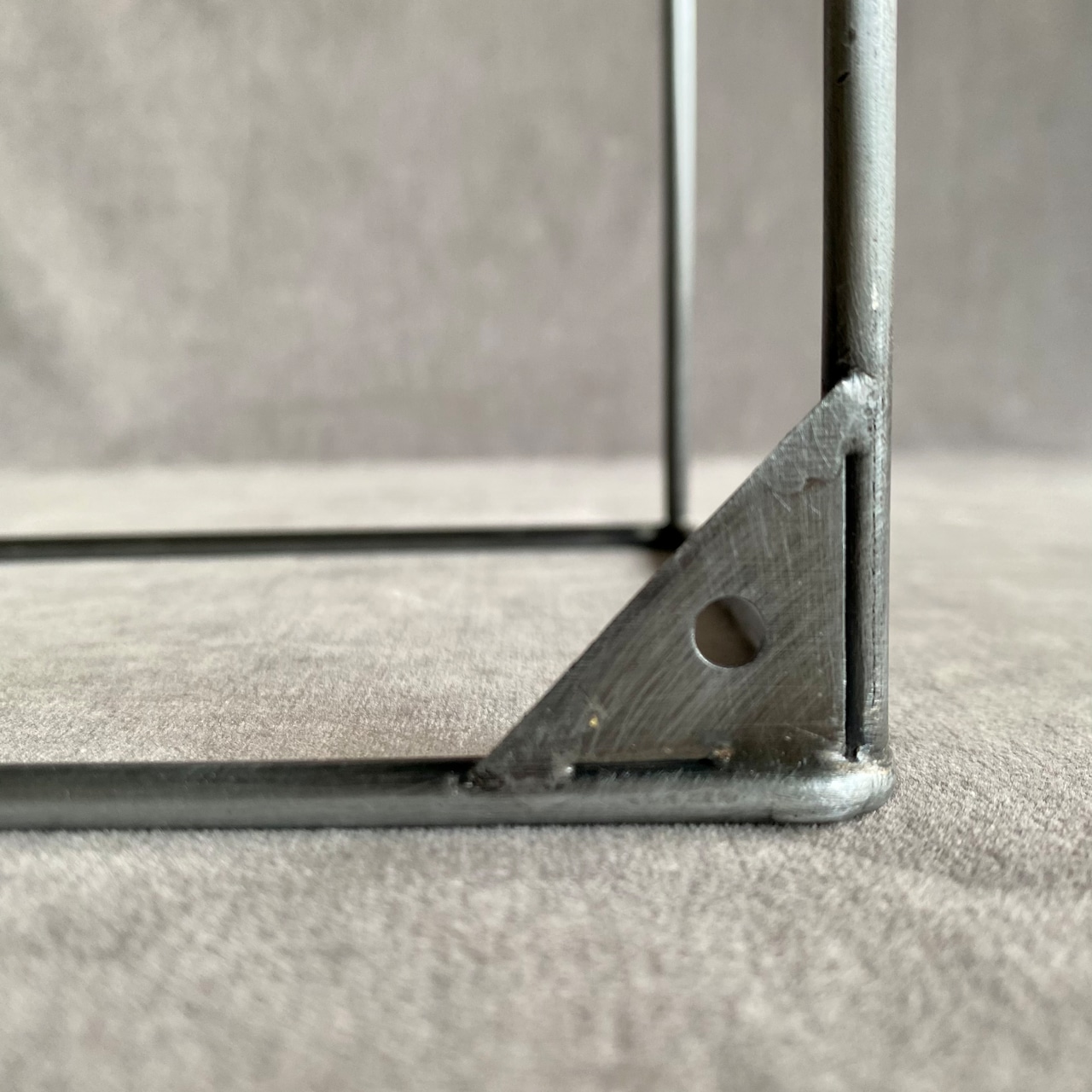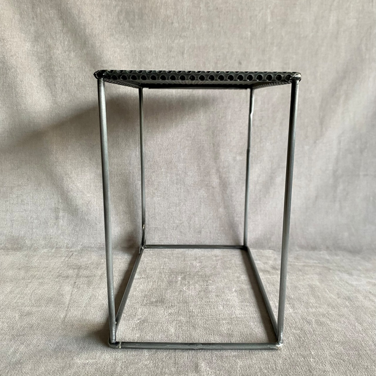 フレームとメッシュ状の天板の無骨な素材感が鉢の足元をクールに演出してくれるアイテムです。