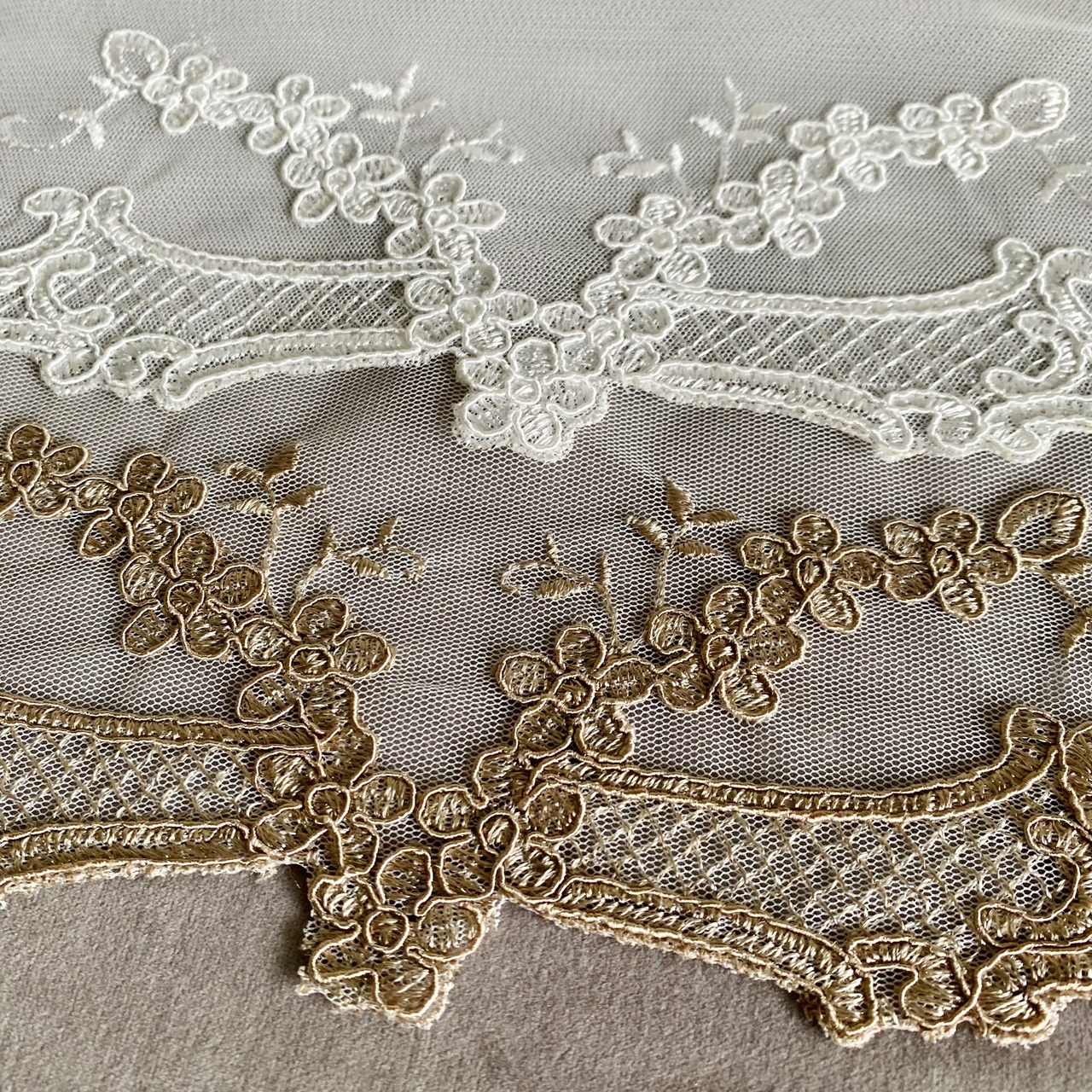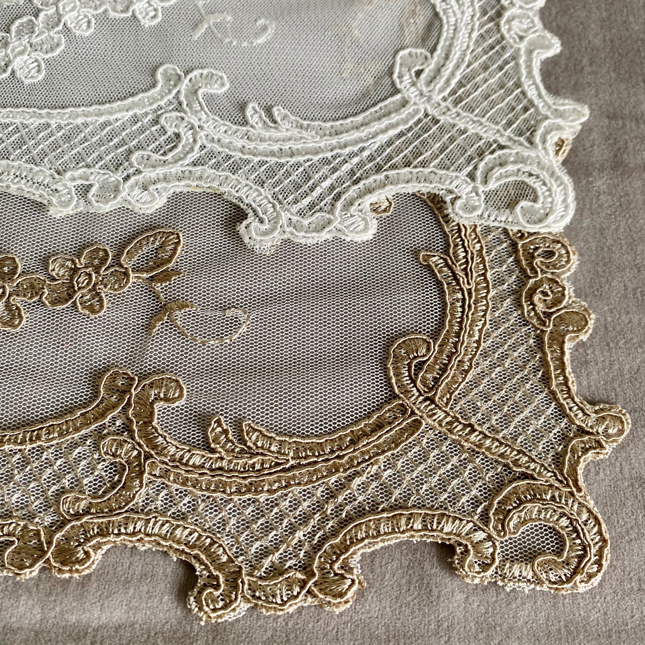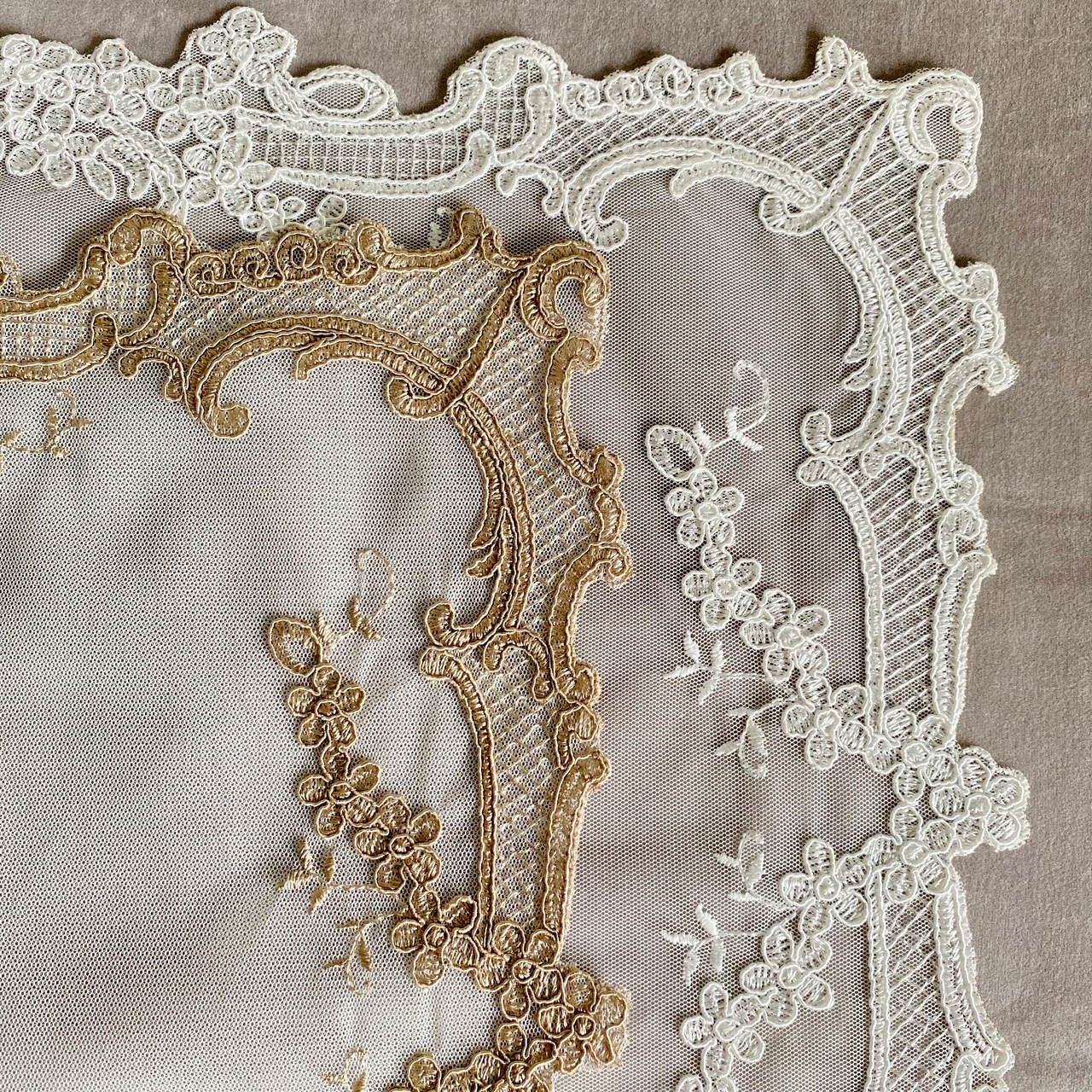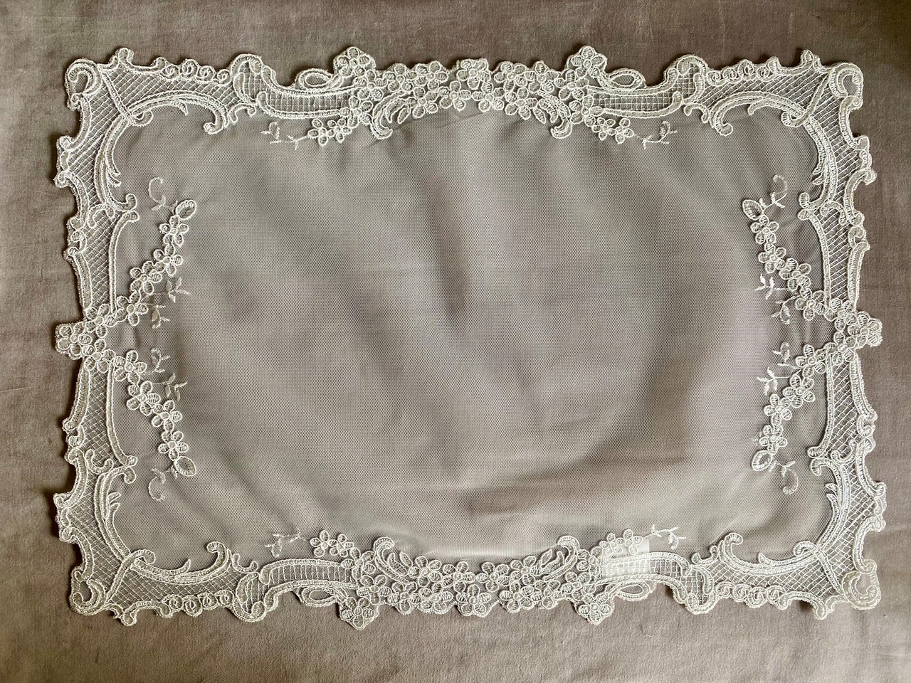 繊細な花柄の刺繍をあしらったエレガントなレースのプレイスマット。
