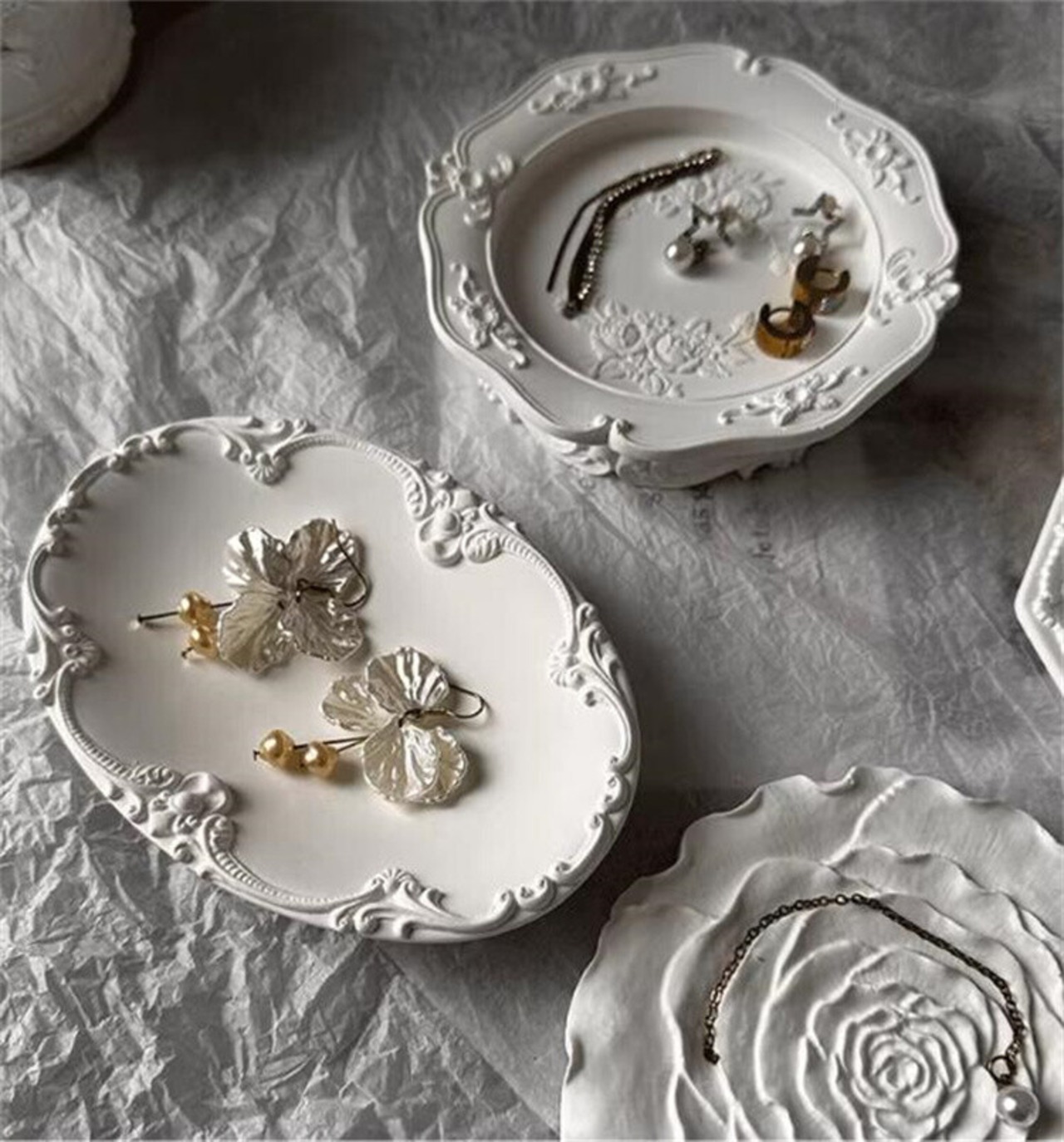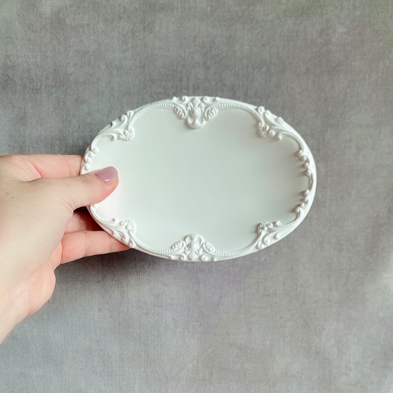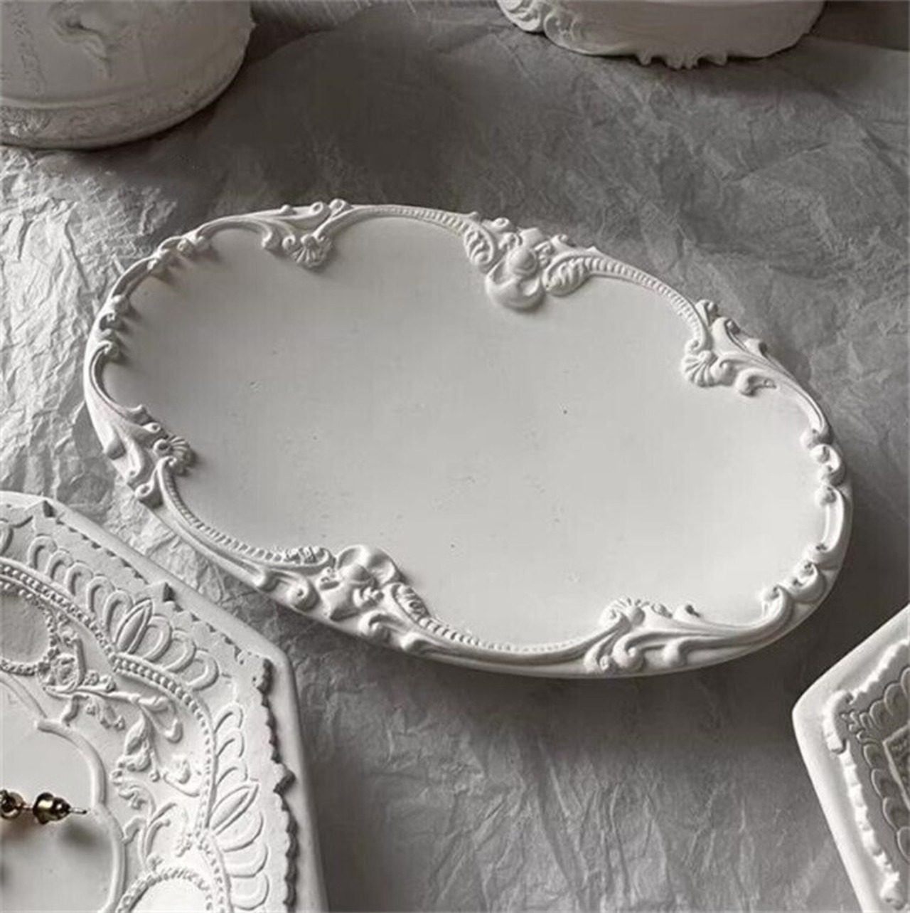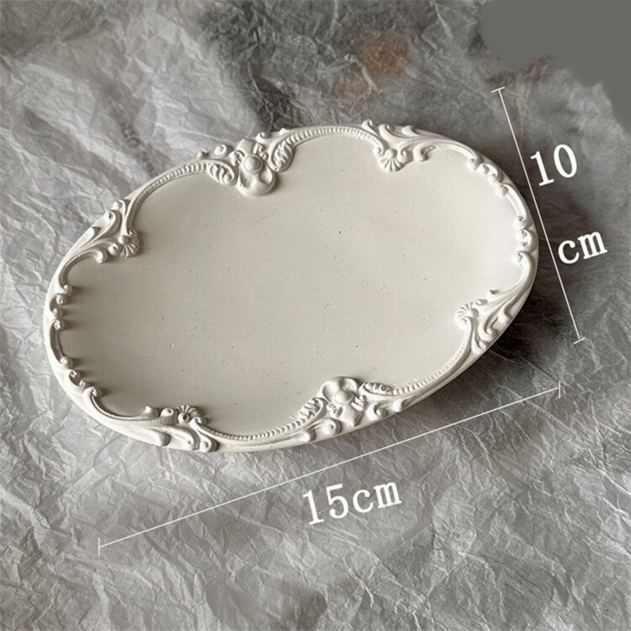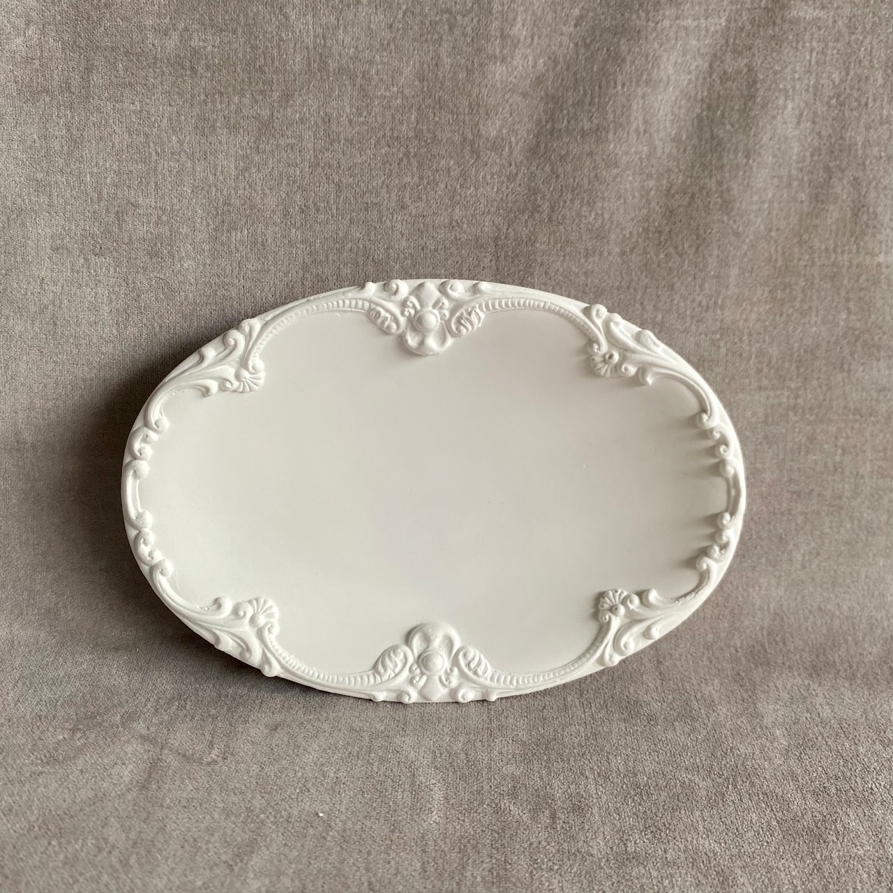 アンティーク調の縁取りが美しい石膏トレイ。