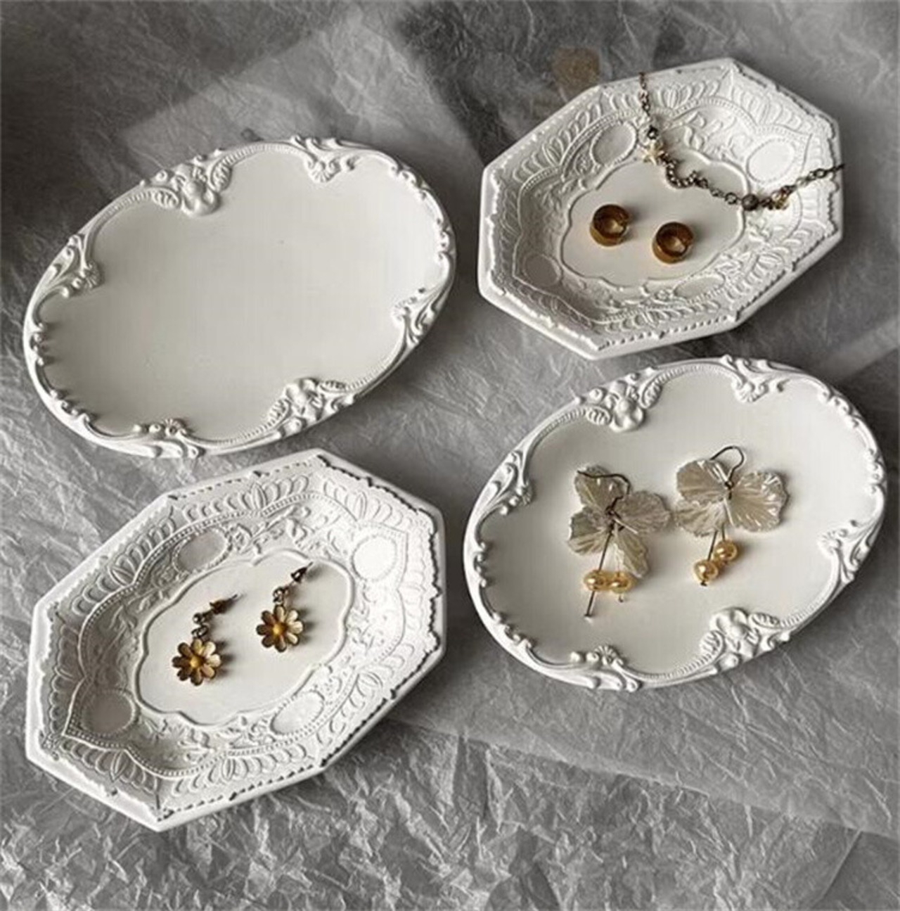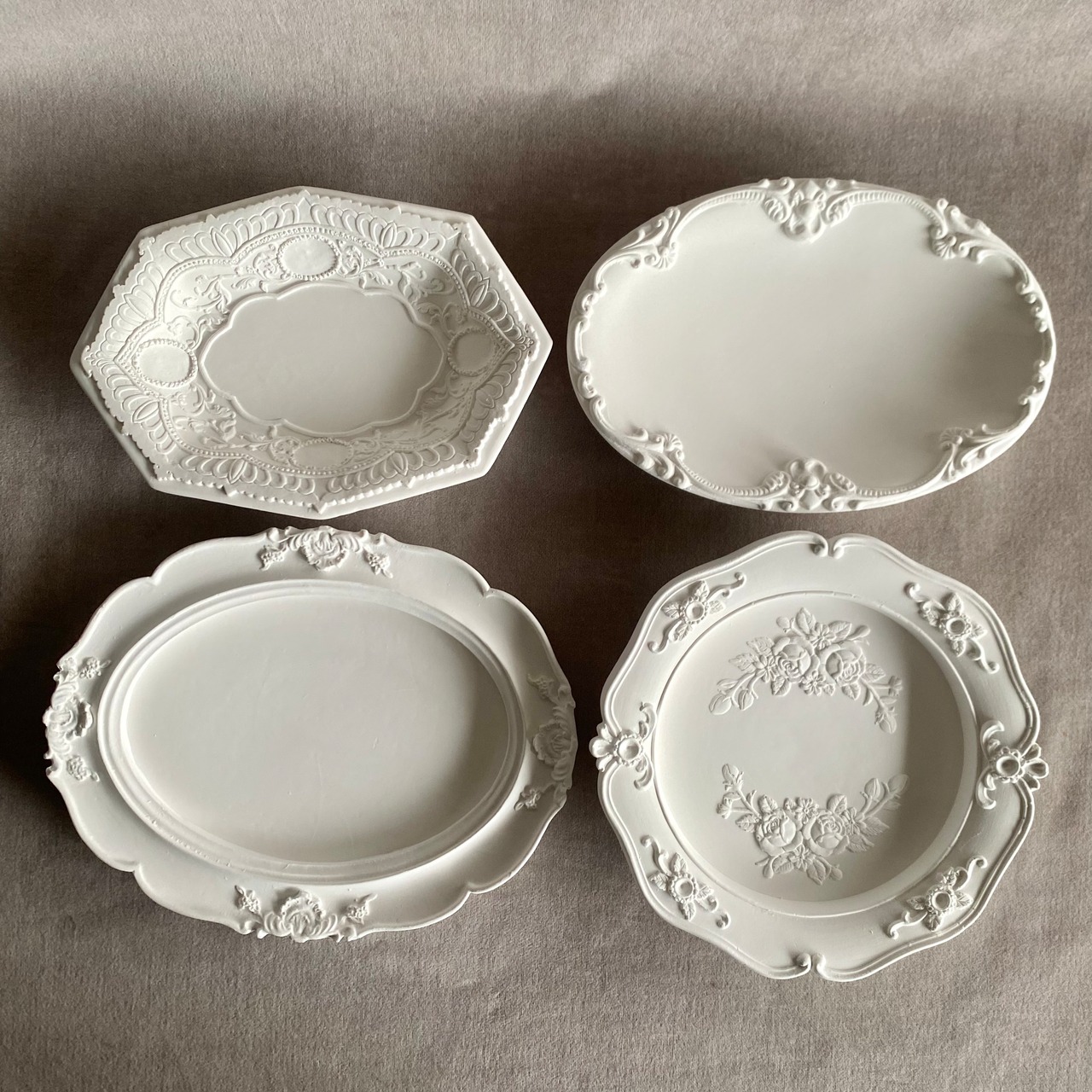 アンティーク調の縁取りが美しい石膏トレイ。