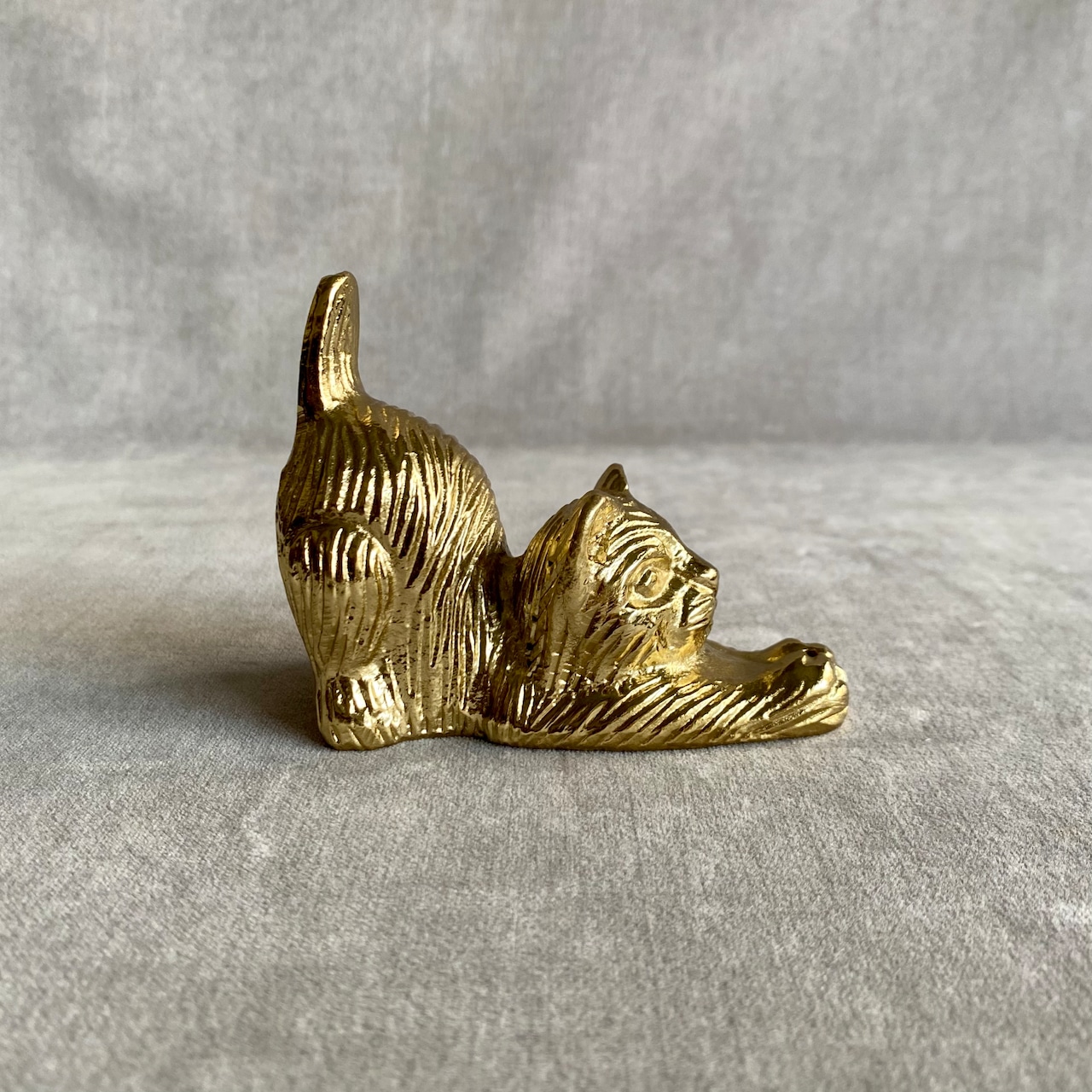 ゴールドの猫のポーズが可愛らしいインセンスホルダー。