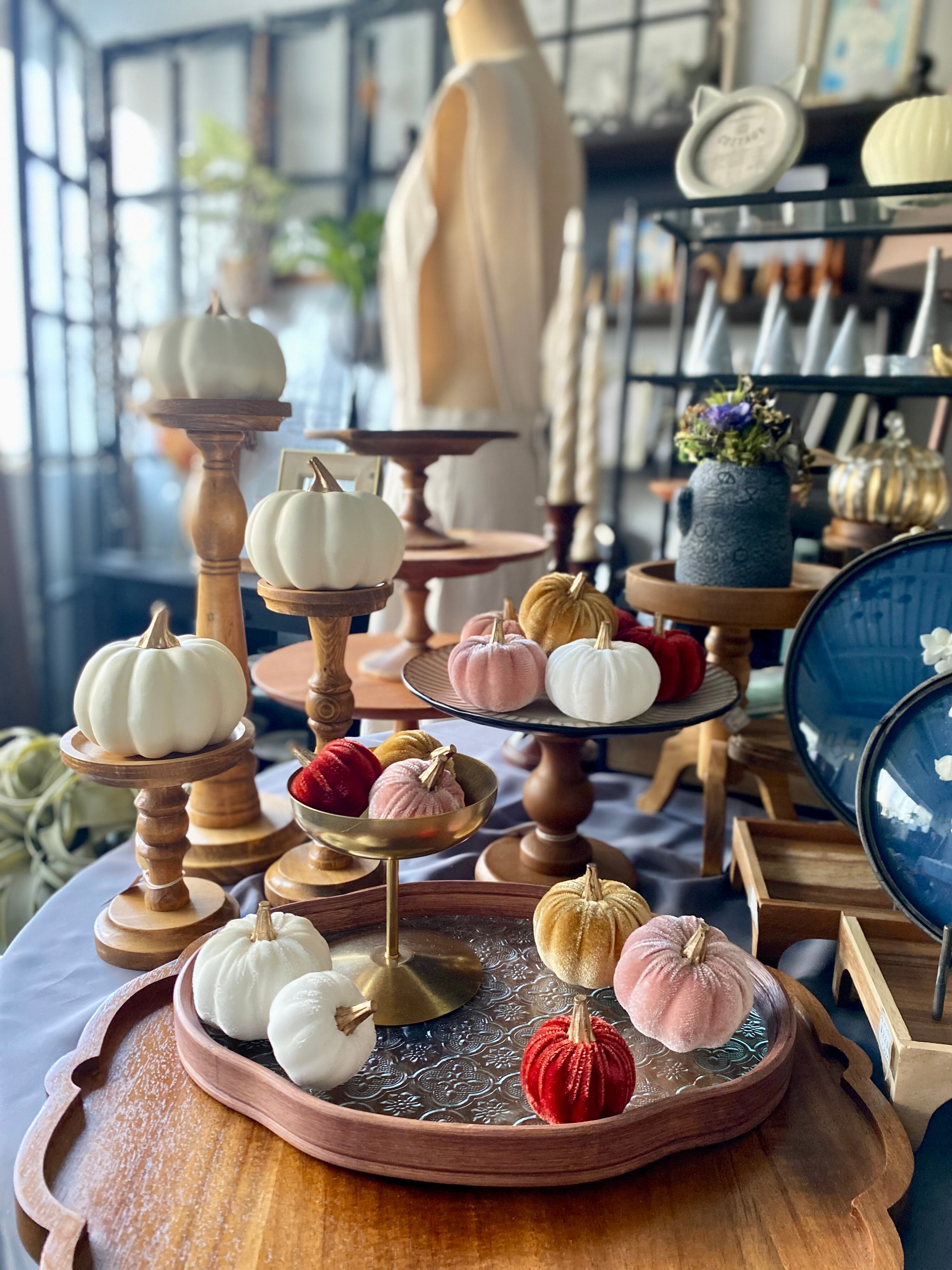 やわらかな質感のベロア調パンプキンの同色3個セット。