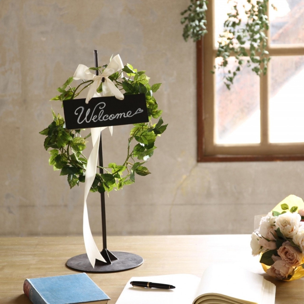 リースはもちろん、バッグや帽子、アクセサリーなどを掛けてディスプレイしたり、サインプレートや看板を掛けるのもおすすめです。