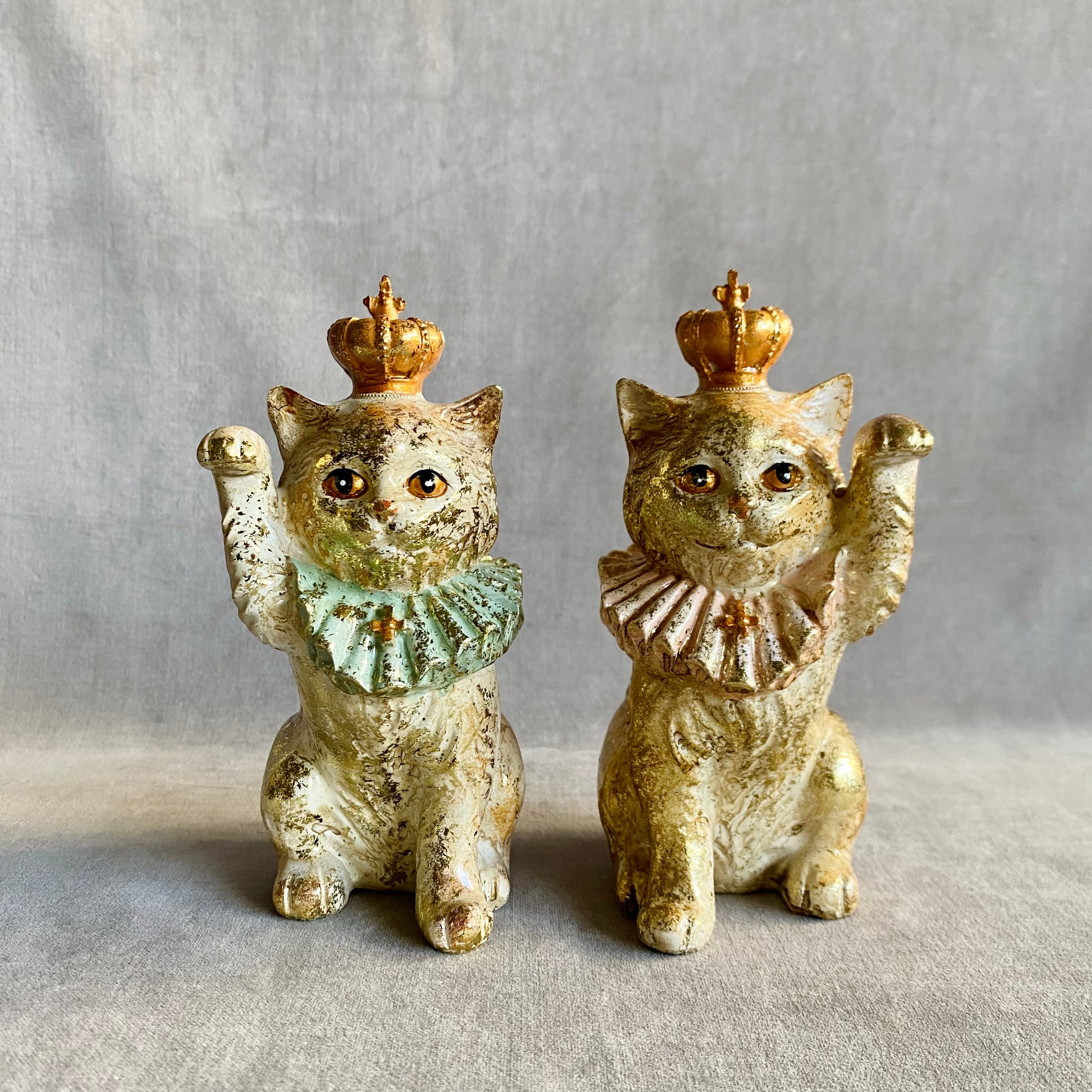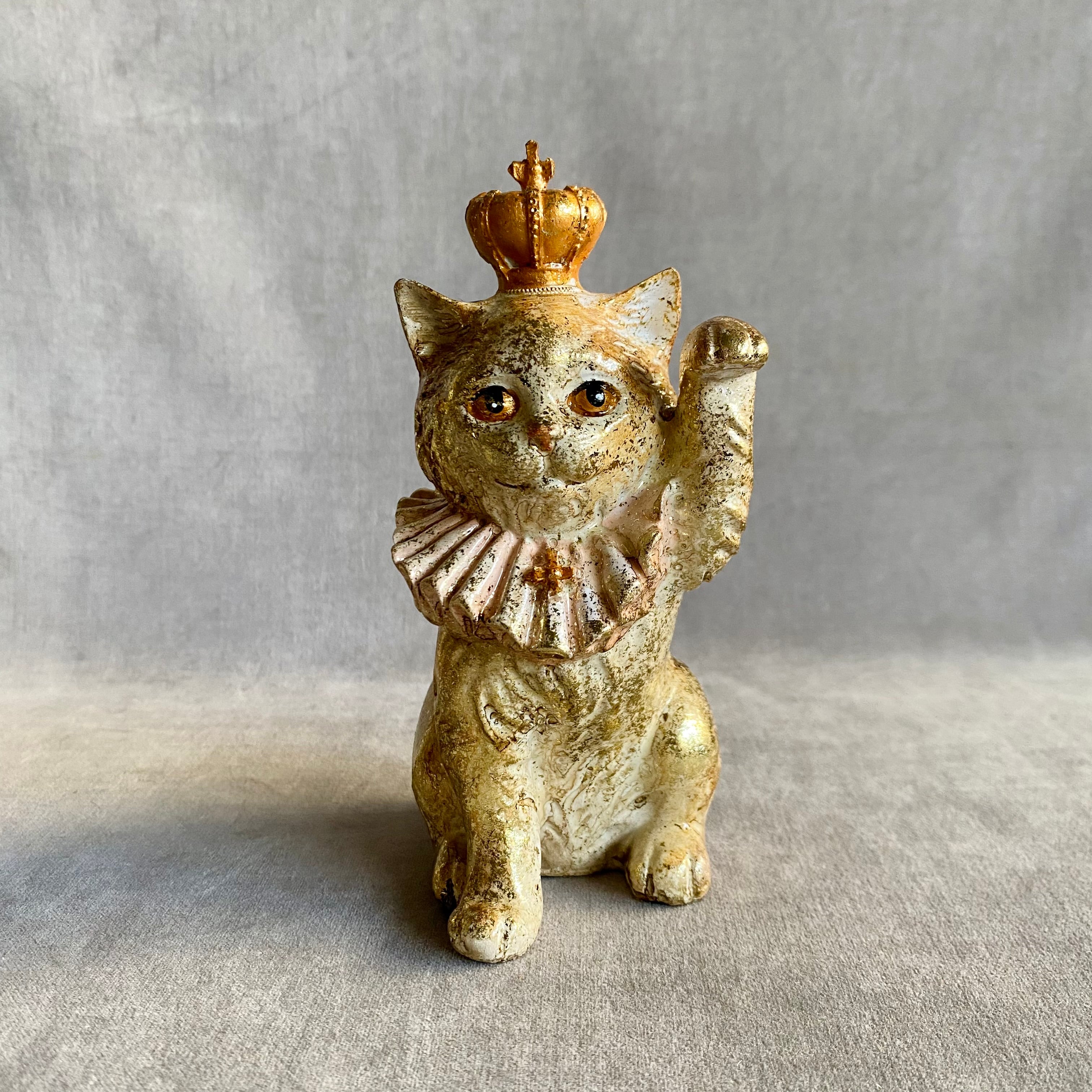 アンティーク調の王冠を被ったおしゃれな洋風招き猫のオブジェ。
