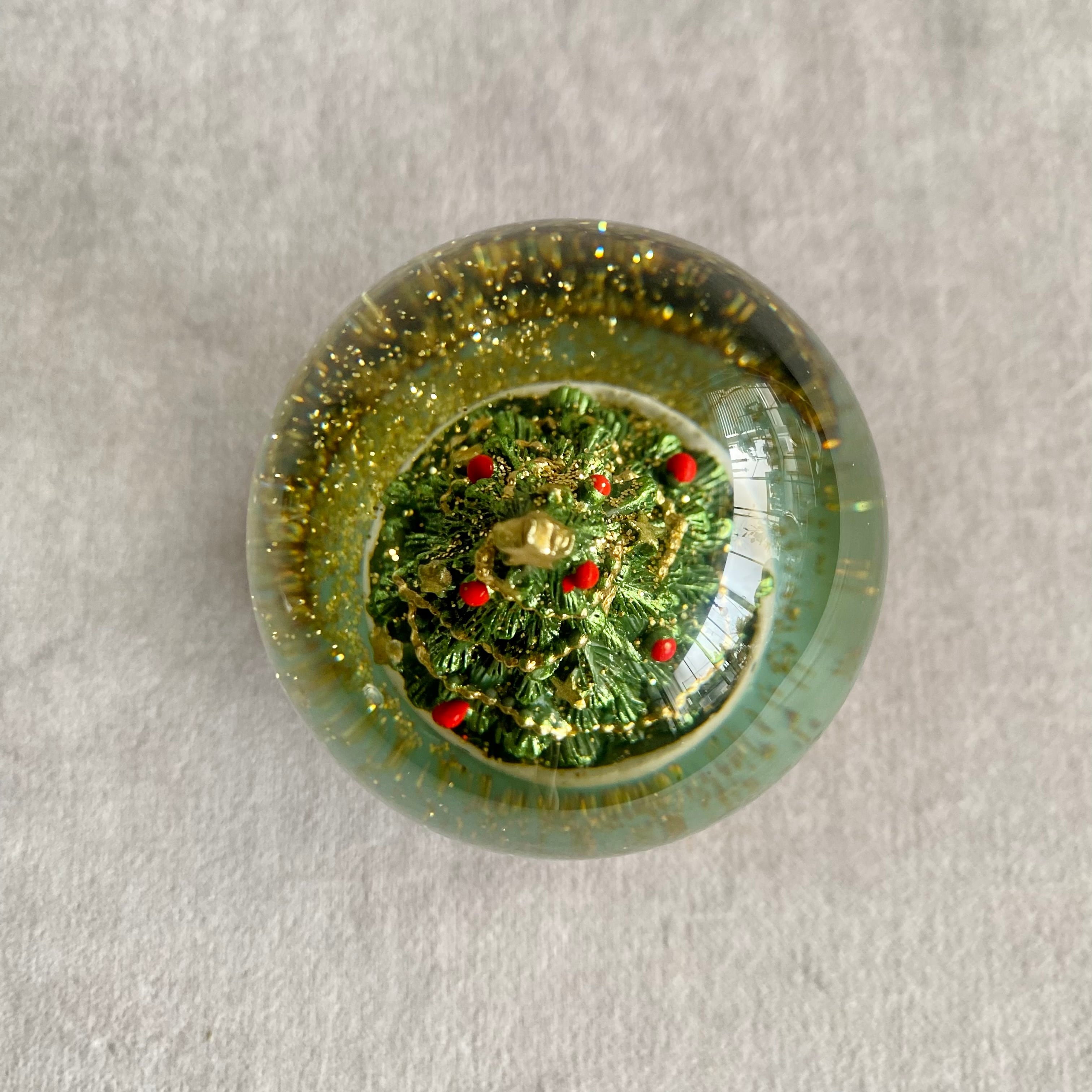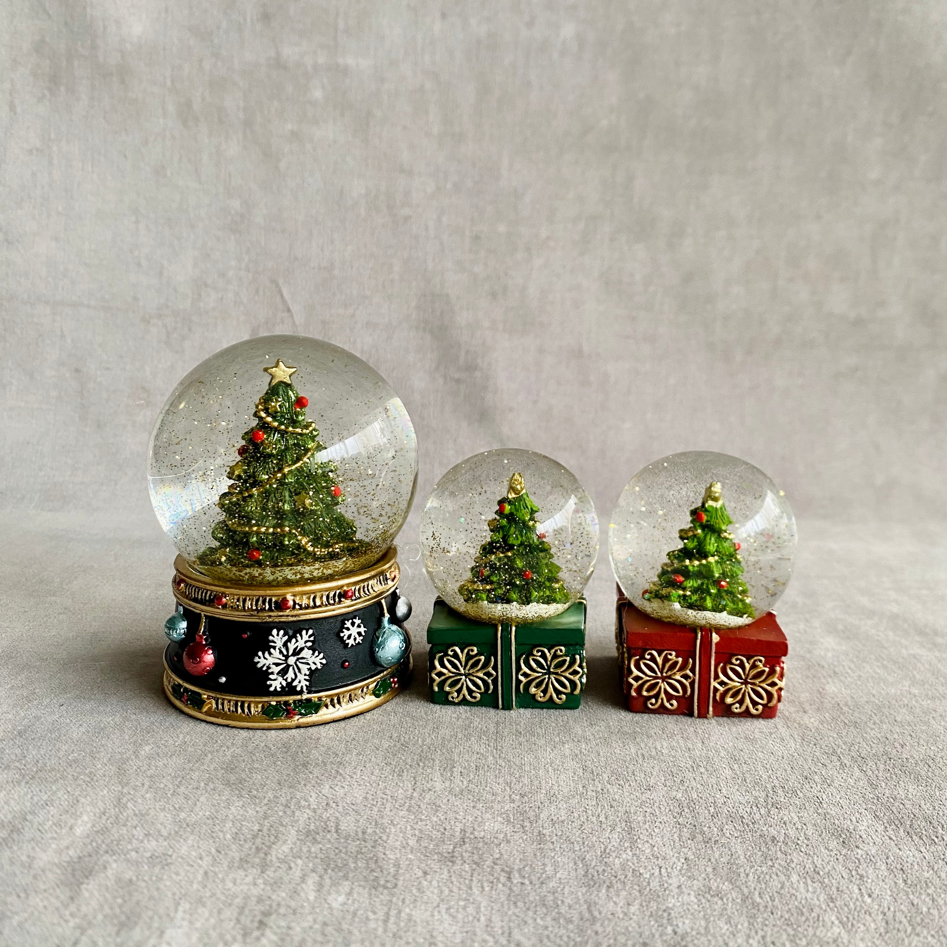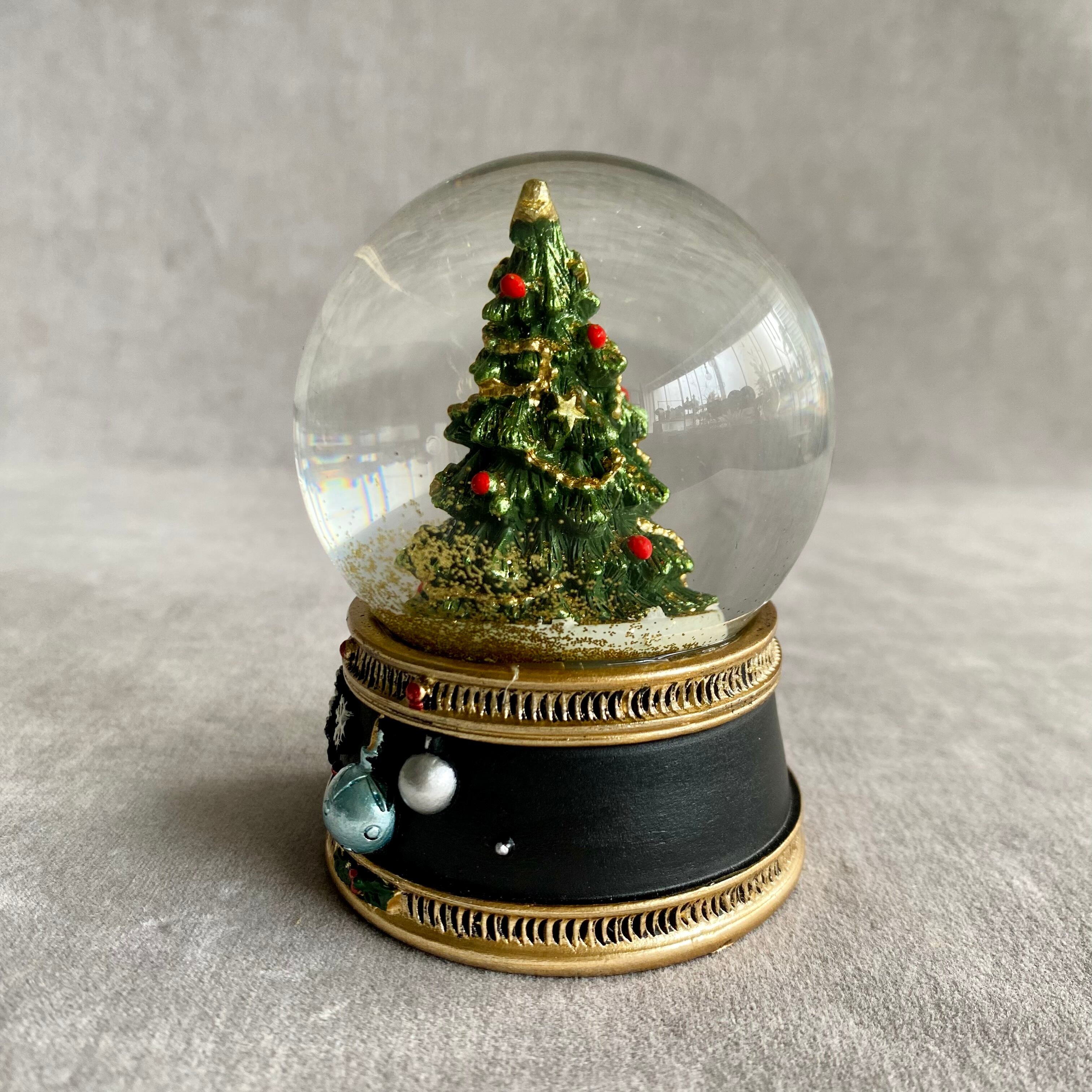 クリスマスツリーが入ったコンパクトサイズのスノードームオブジェ。