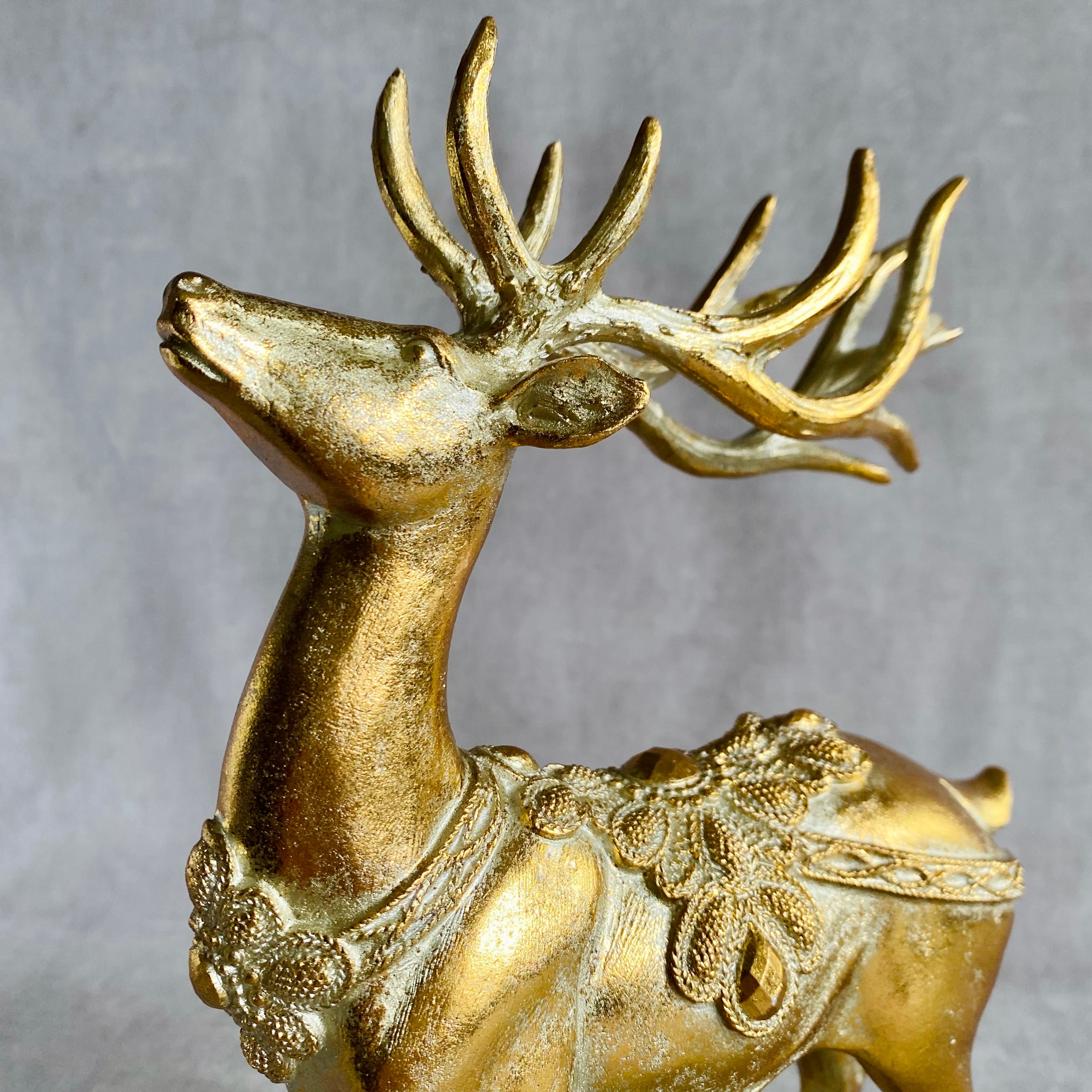 クラシカルな装飾を付けたアンティーク調のトナカイのオブジェ。