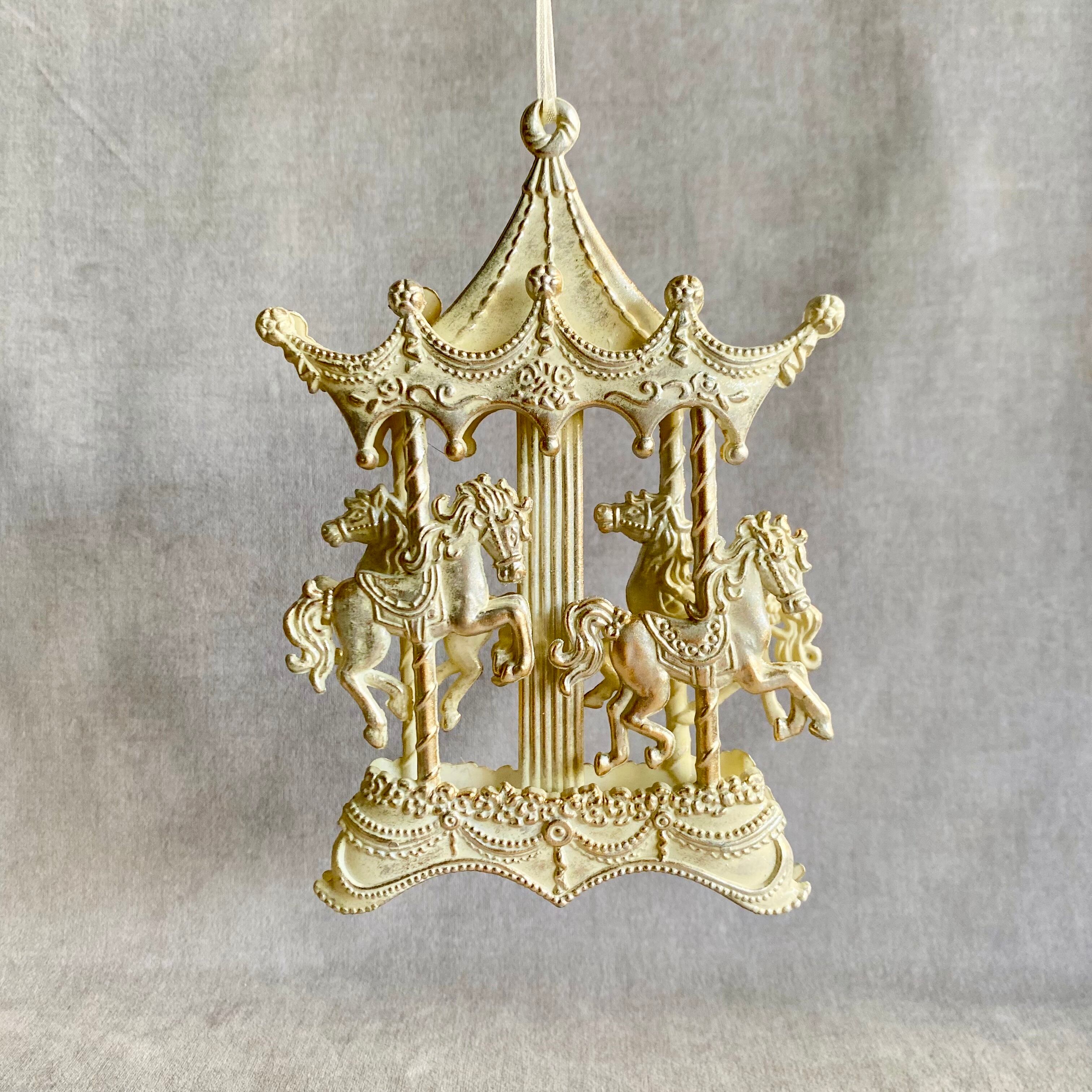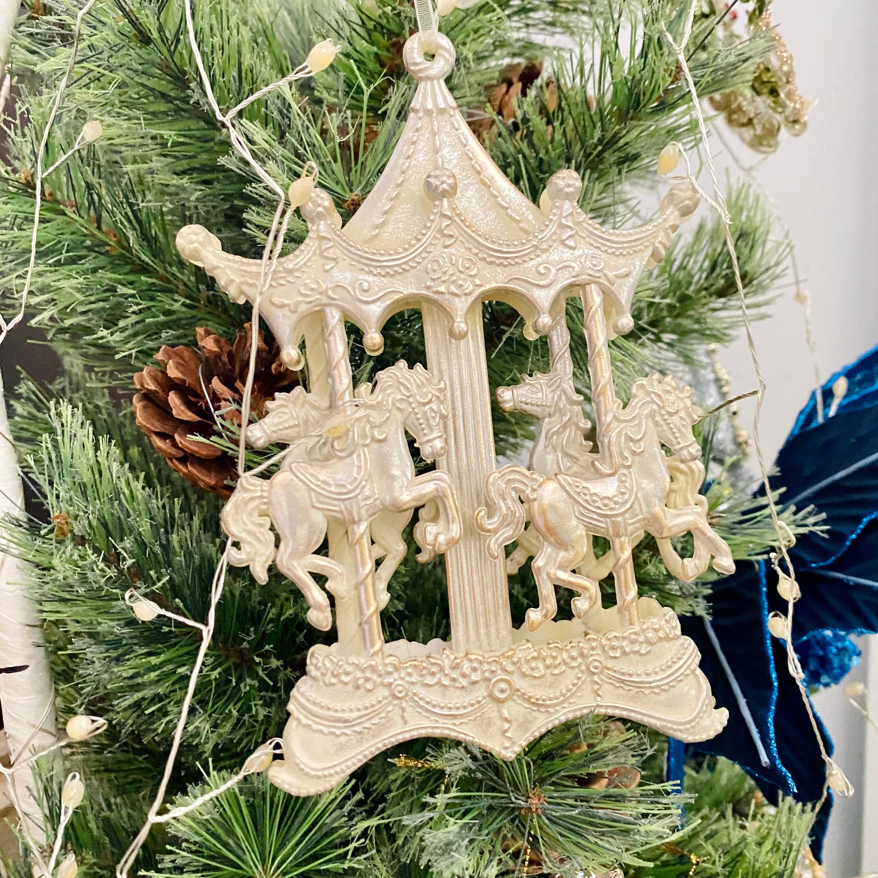 シャビーなホワイトカラーのおしゃれなカルーセルのオーナメント。