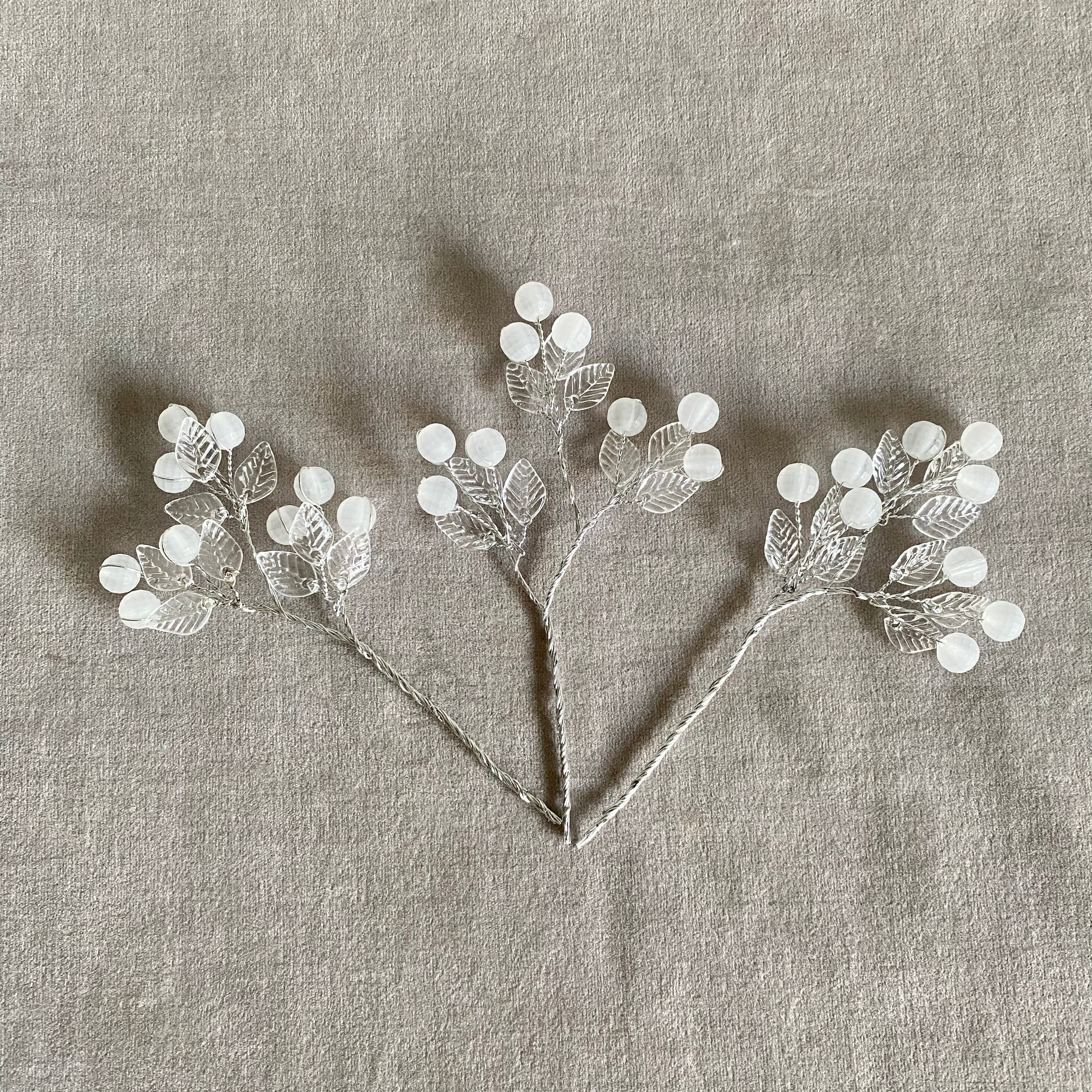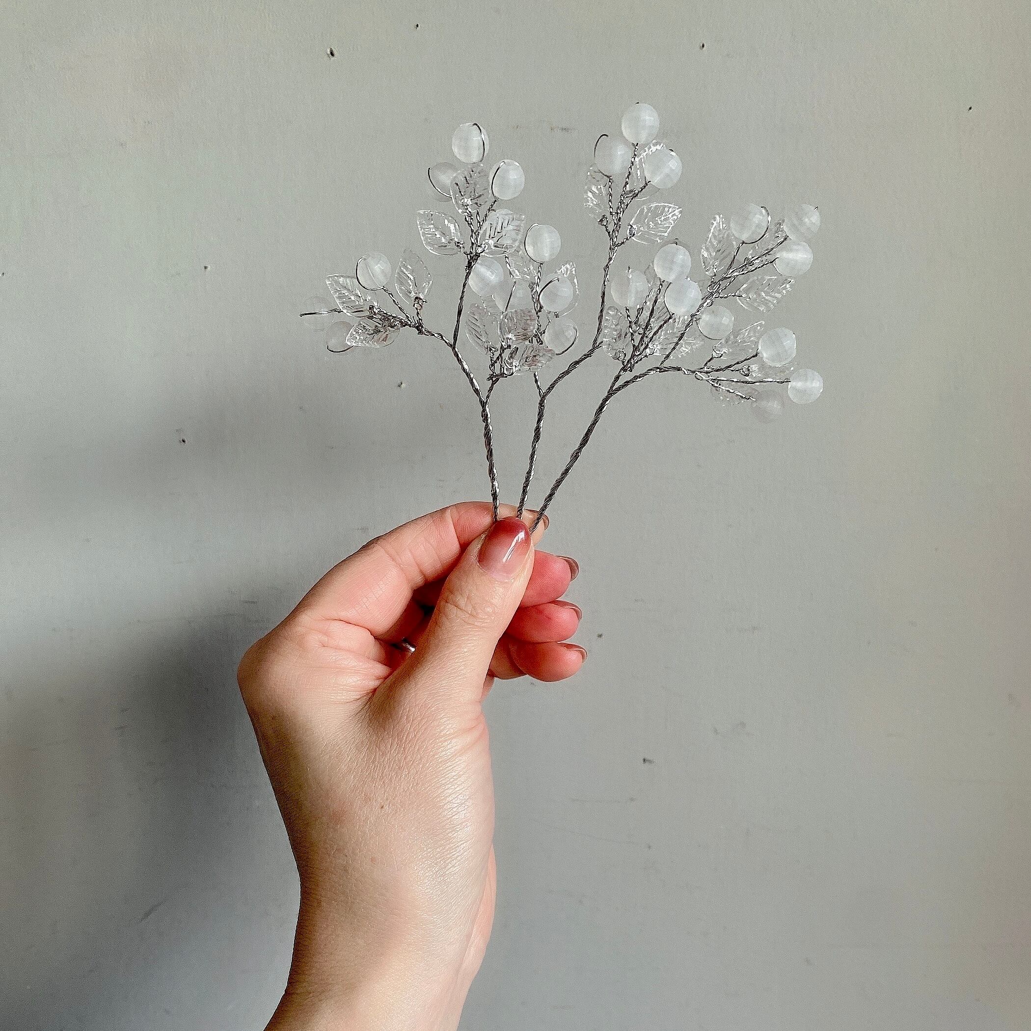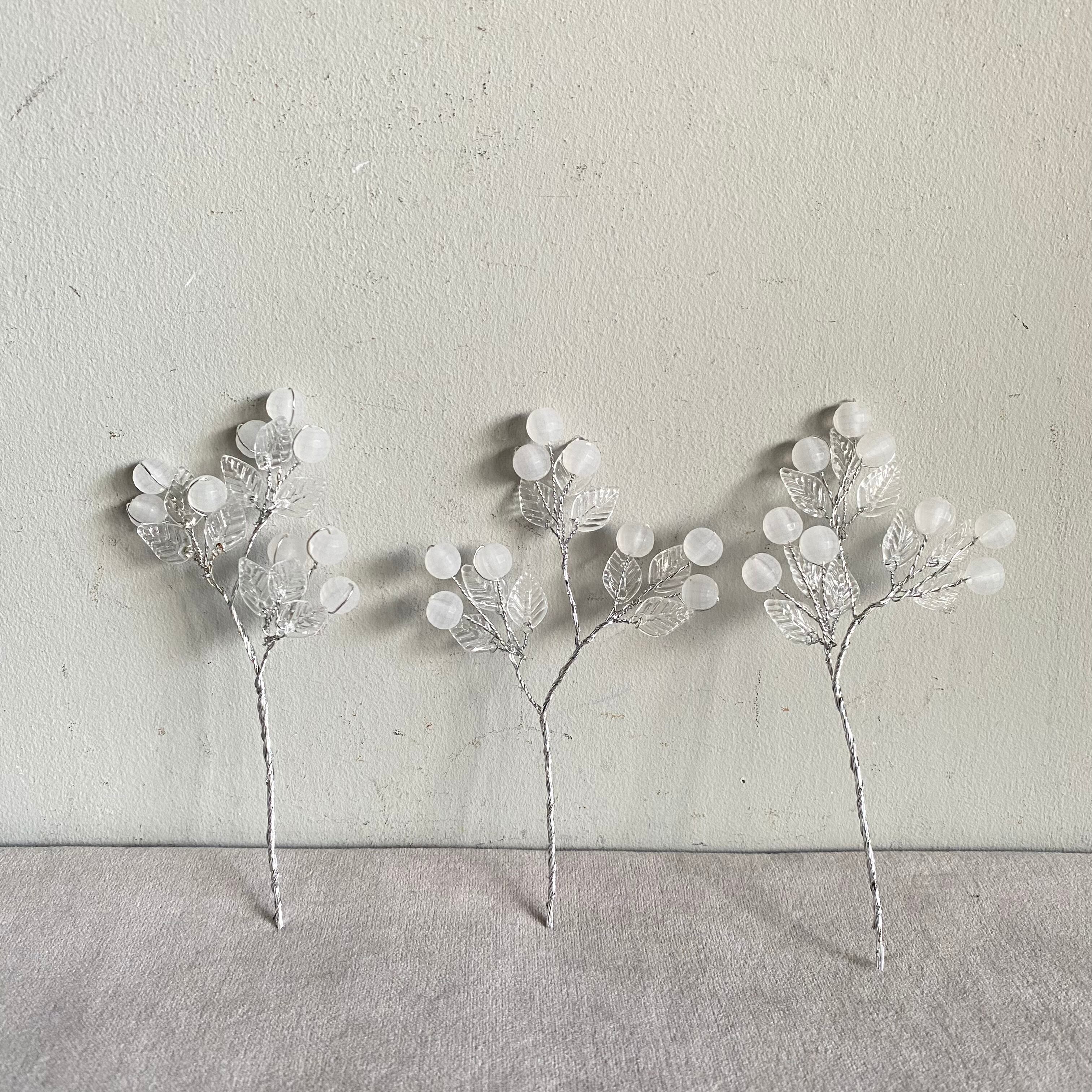 半透明の実と透明の葉が可愛いベリーのピックの3本セット。