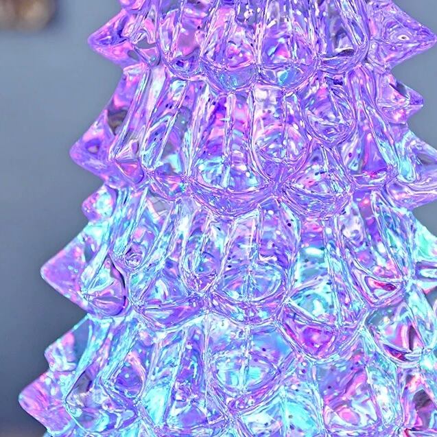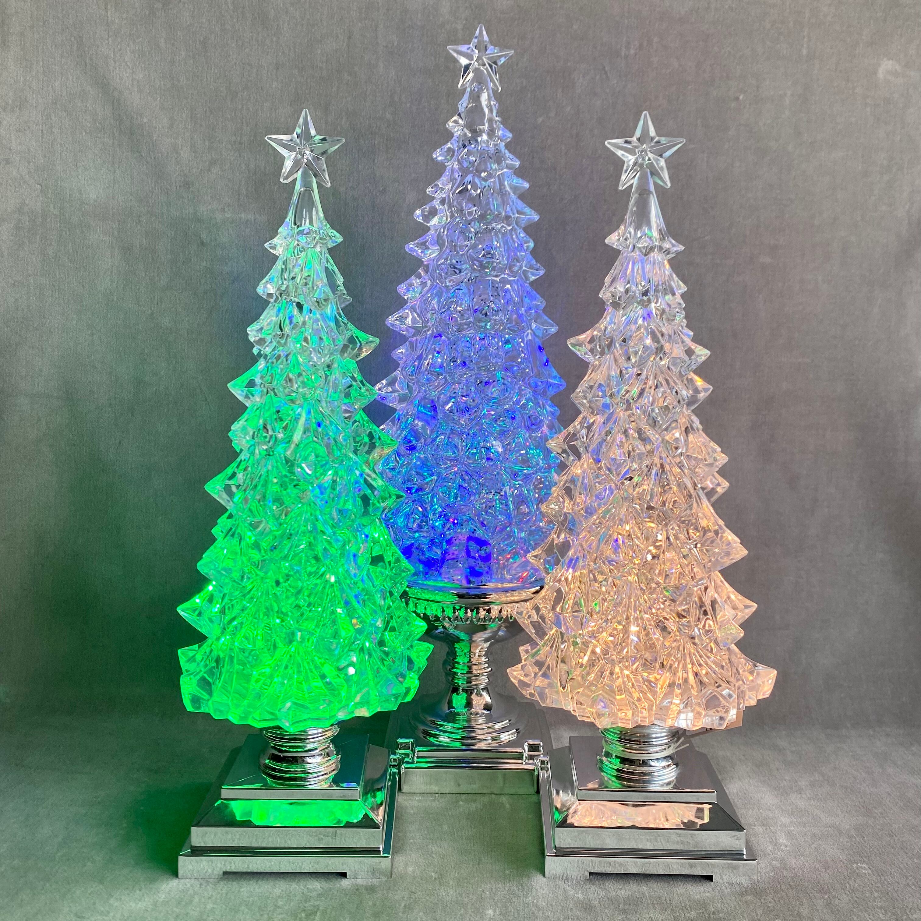 ガラスの様に美しいカットのアクリル製のLED付きクリスマスツリーオブジェ。