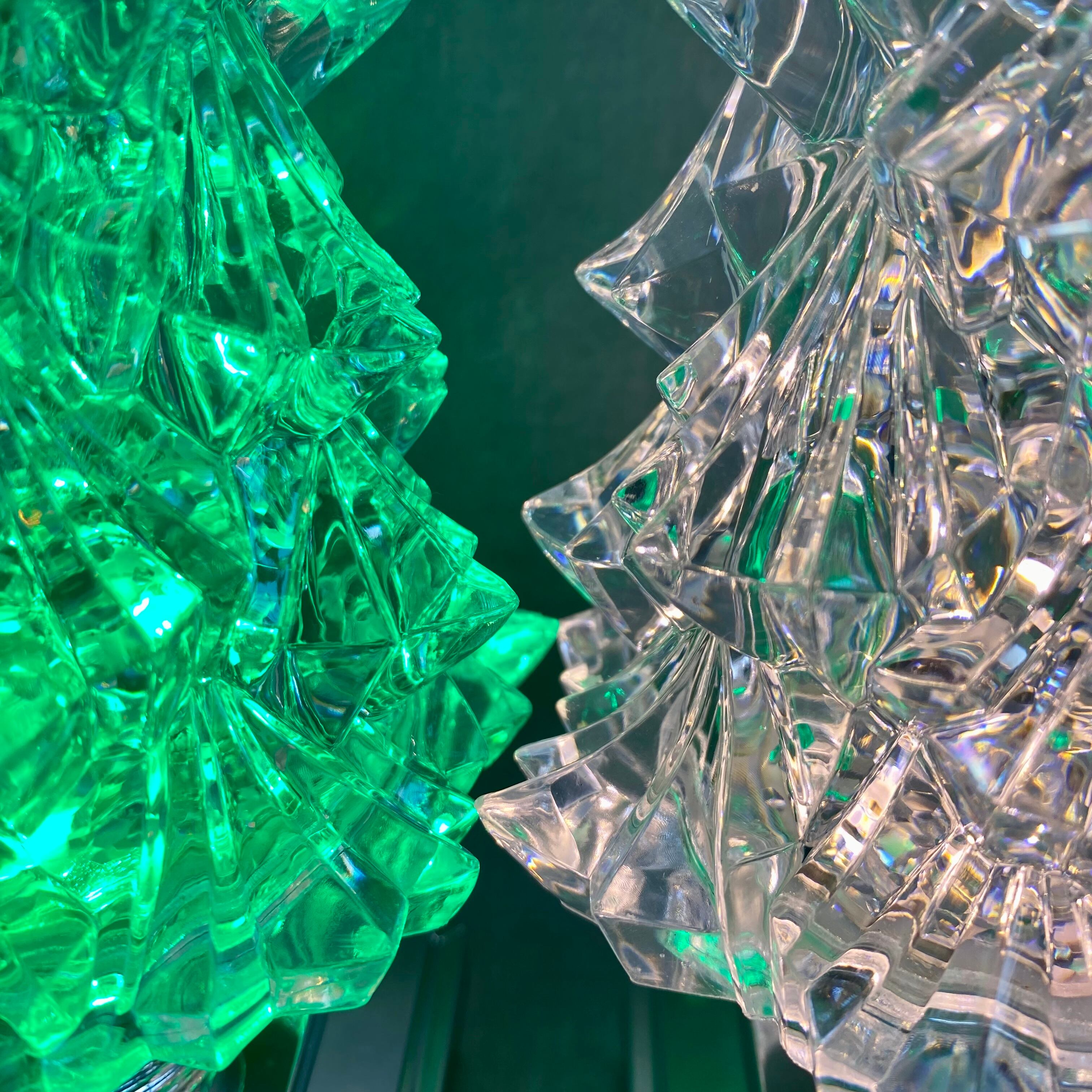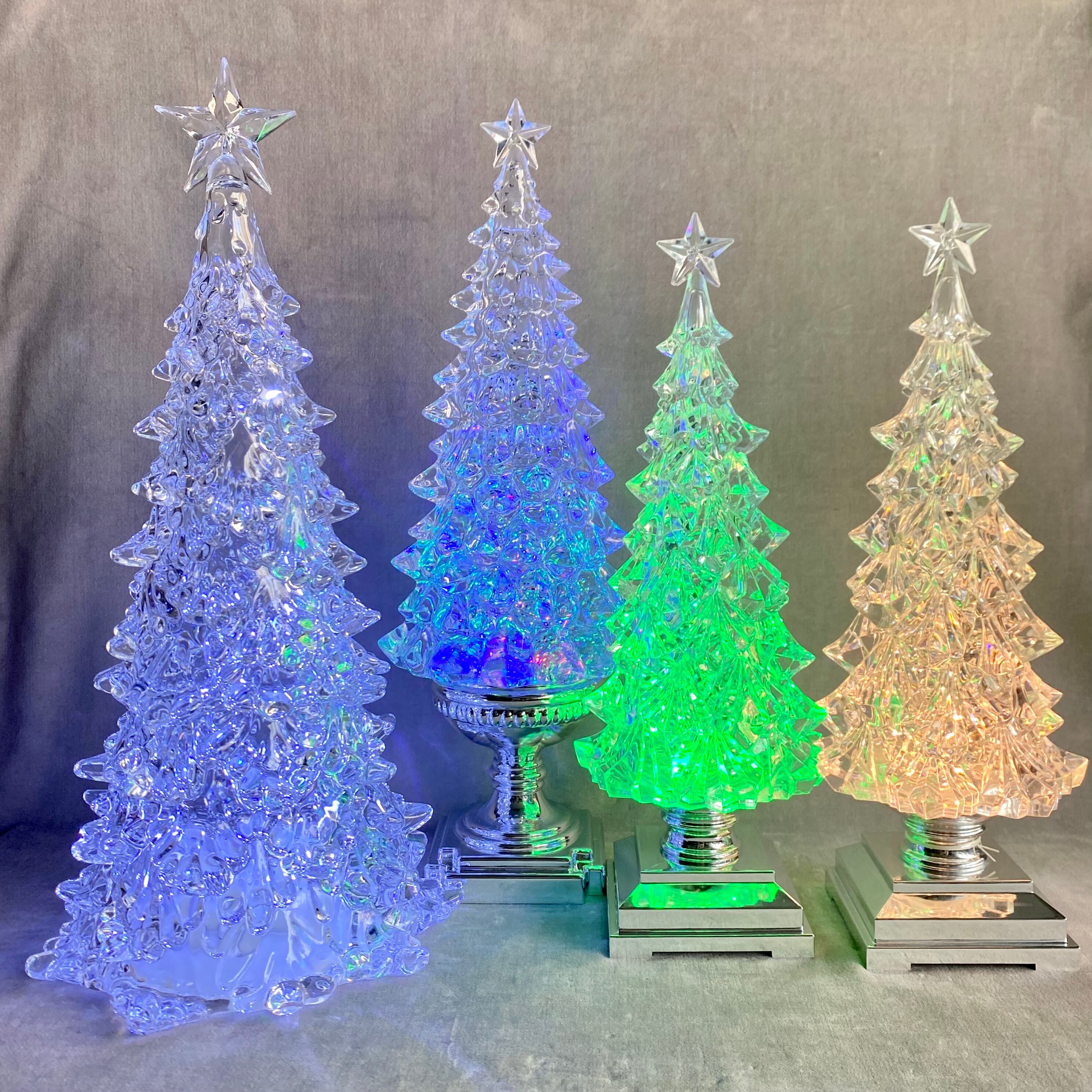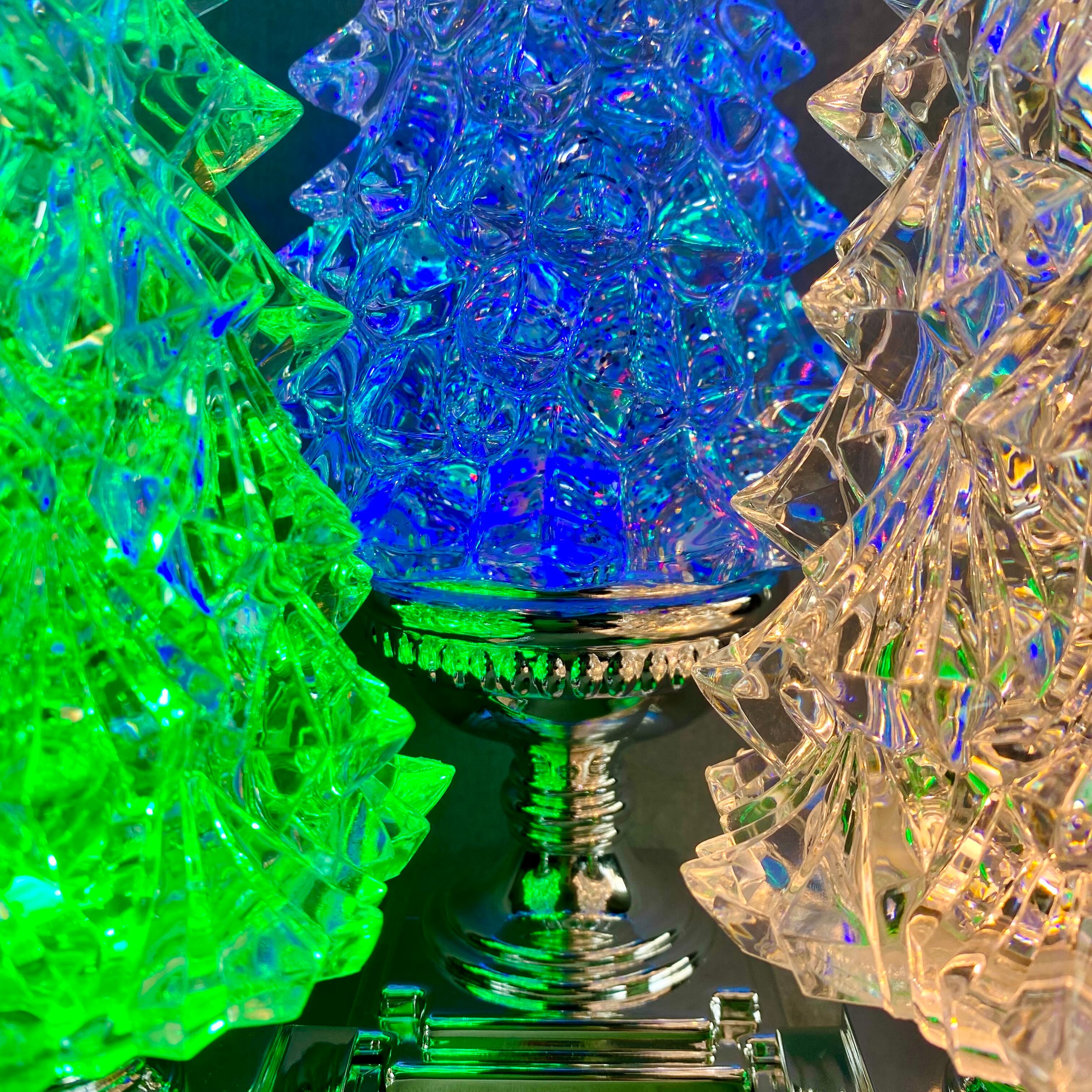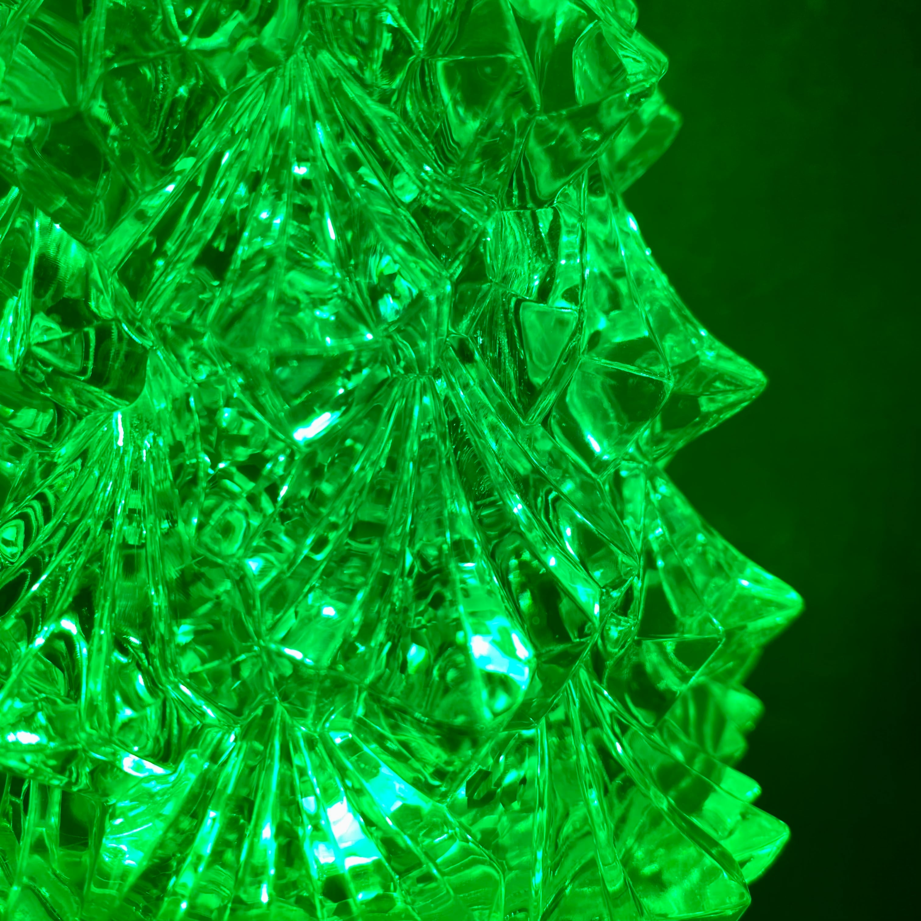 グリーンの光の中にラメが舞う幻想的なクリスマスツリーのオブジェ。