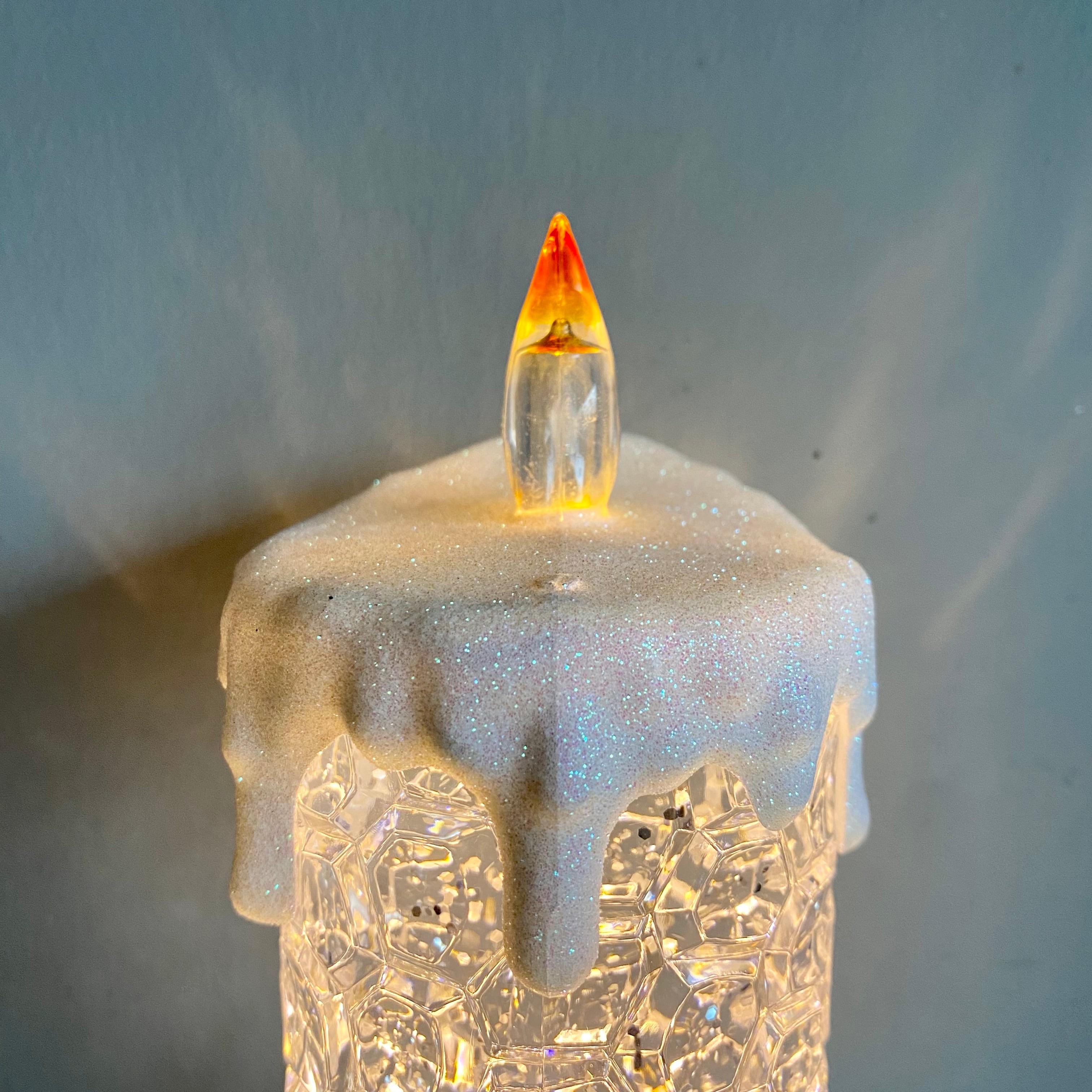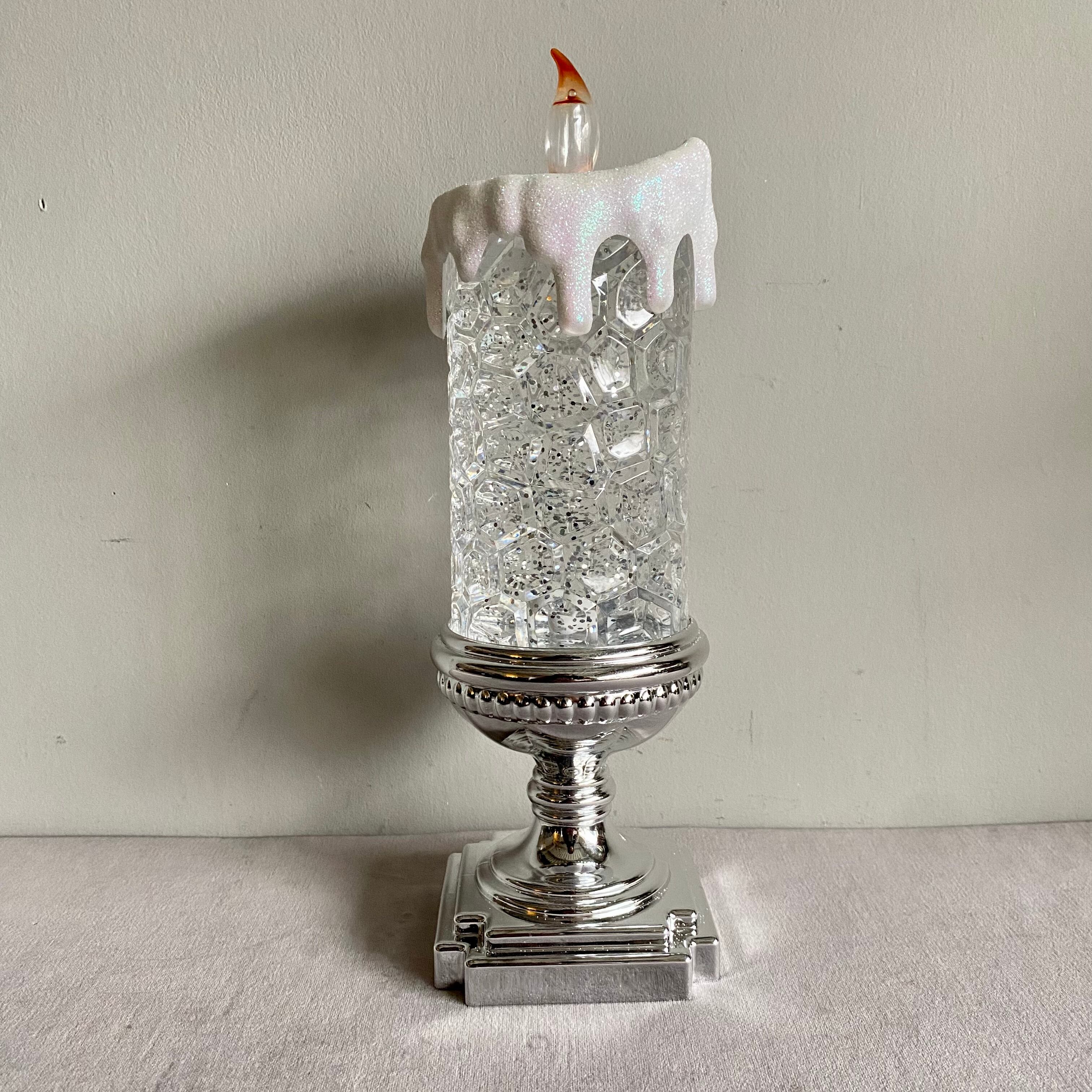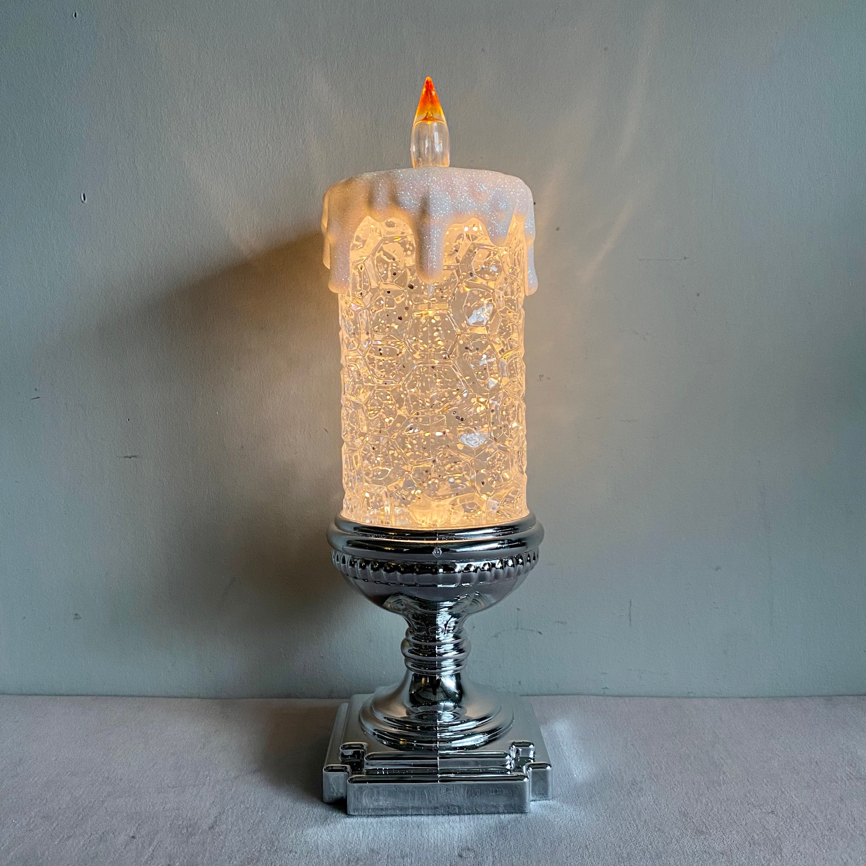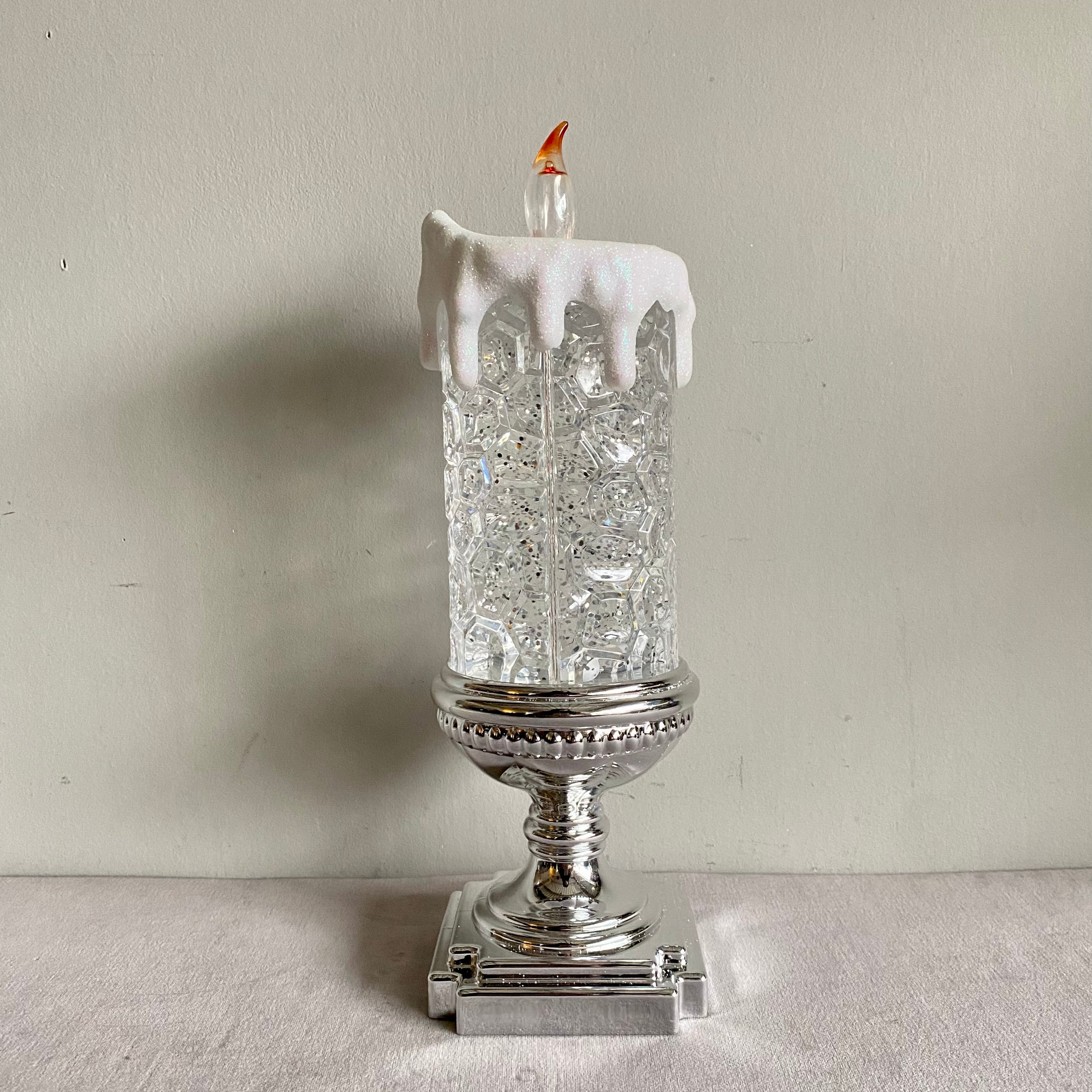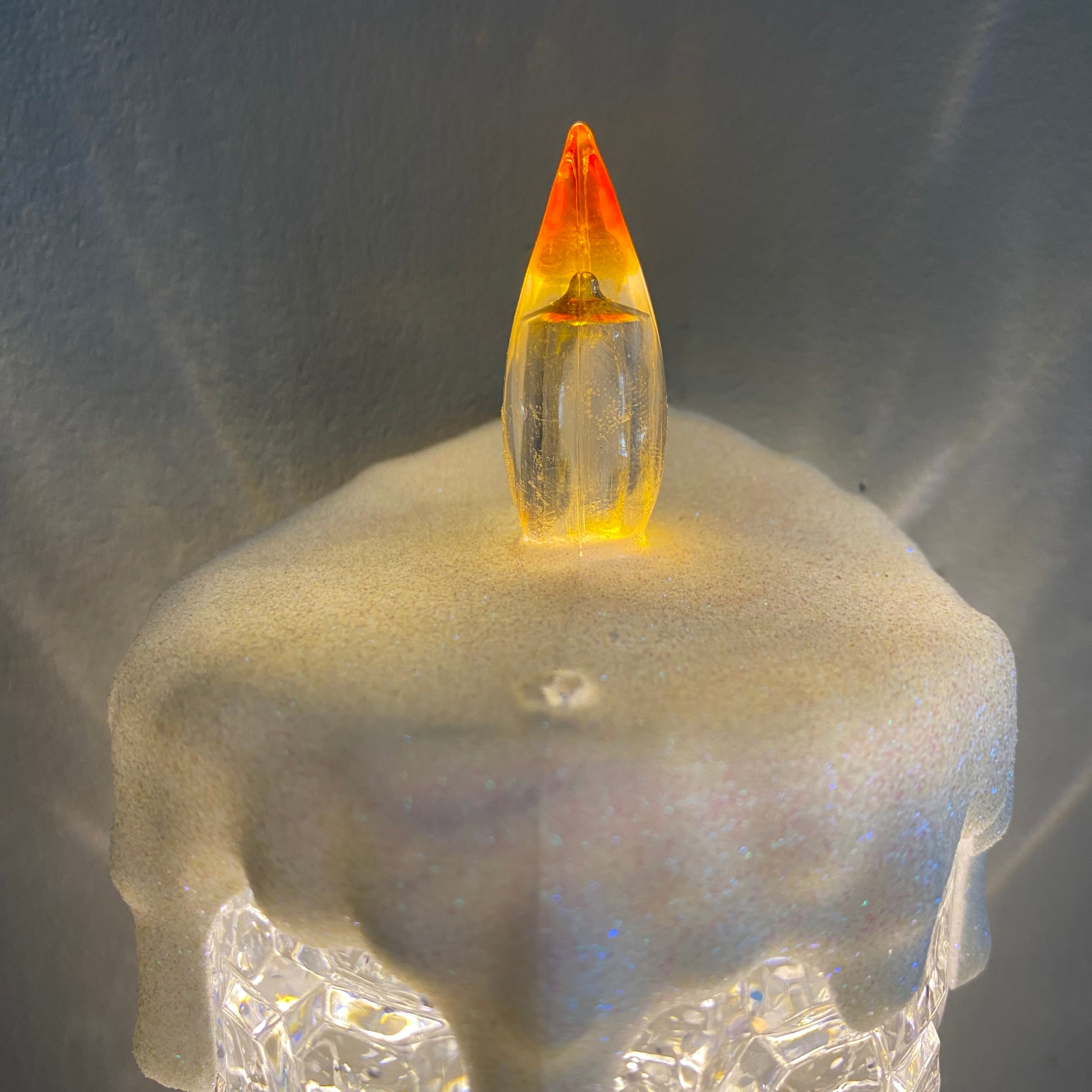 中でグリッターが舞う幻想的なキャンドルのオブジェ。
