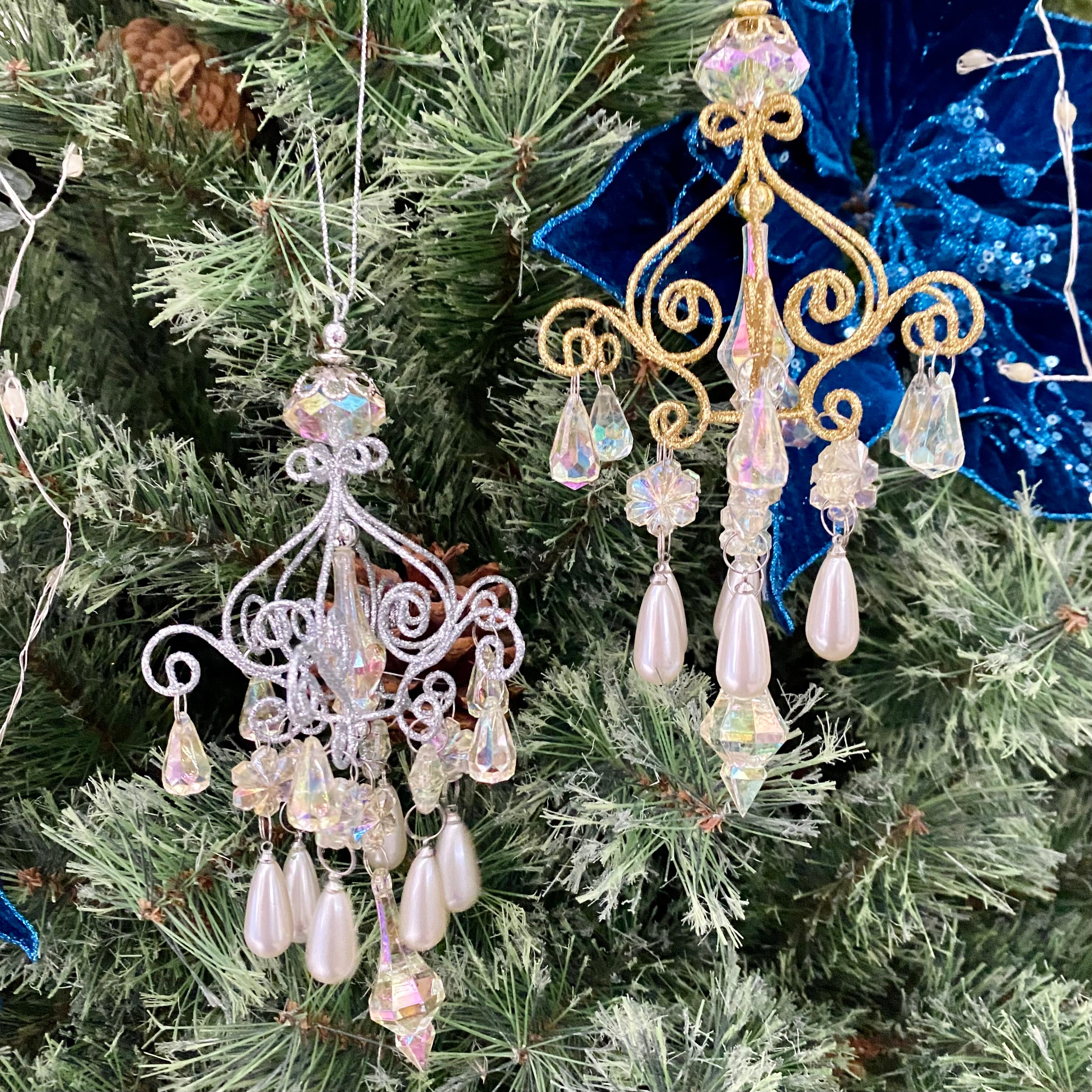 オーナメント ミニシャンデリア(パールmix)GD/SV