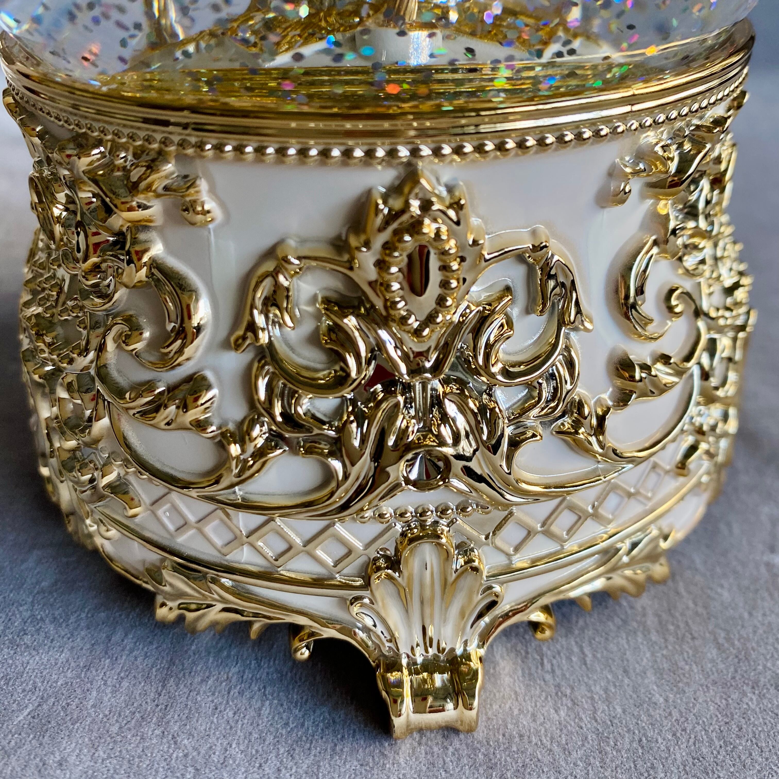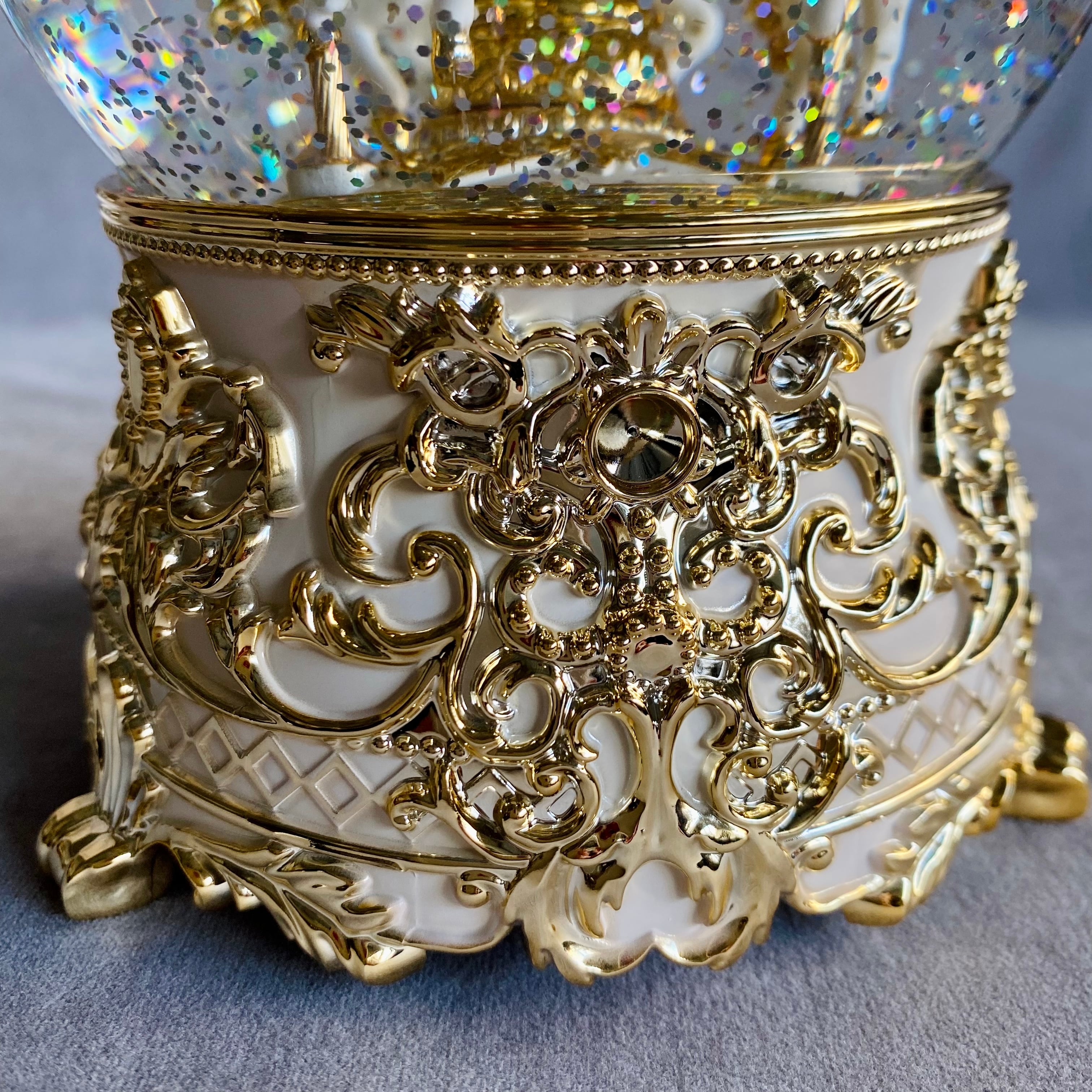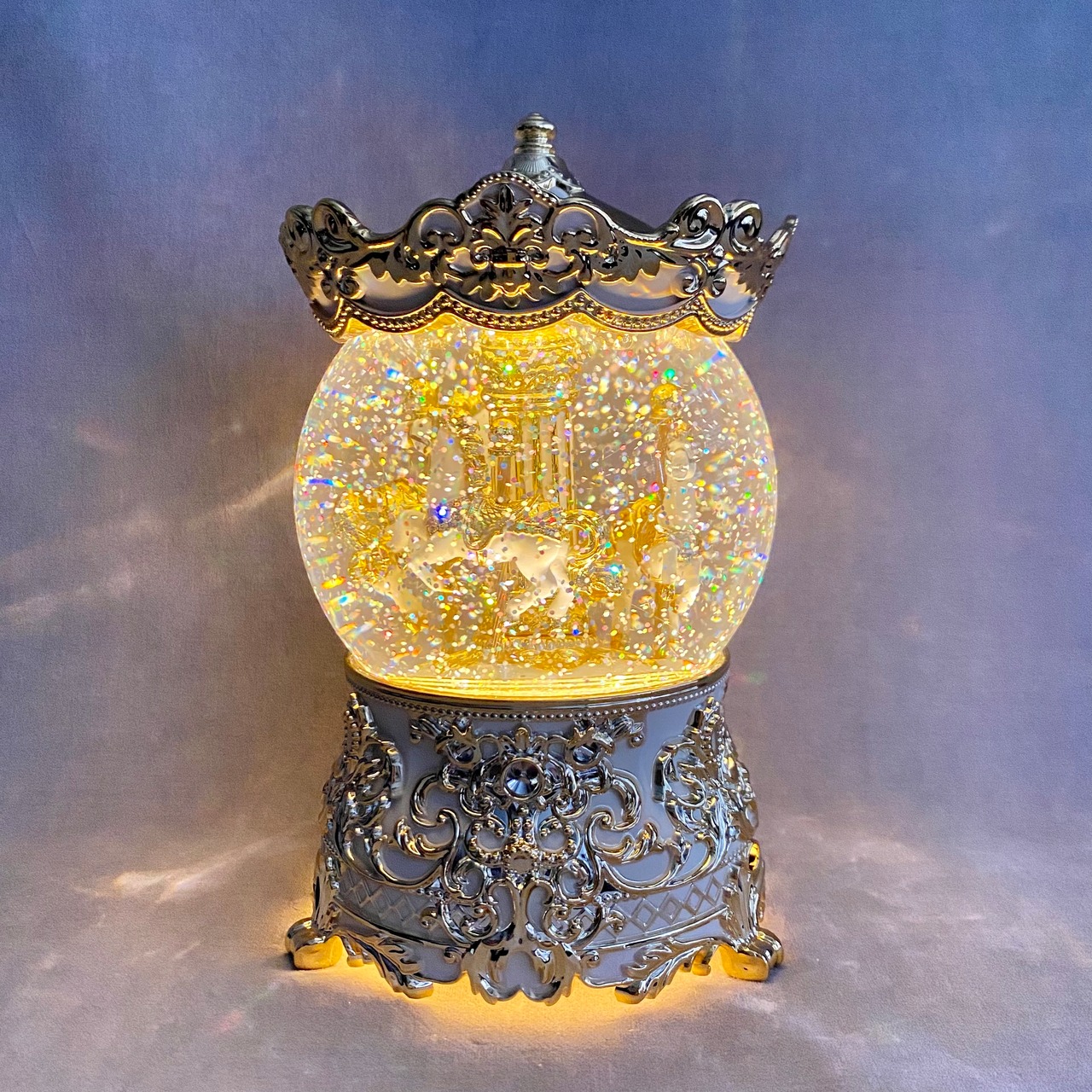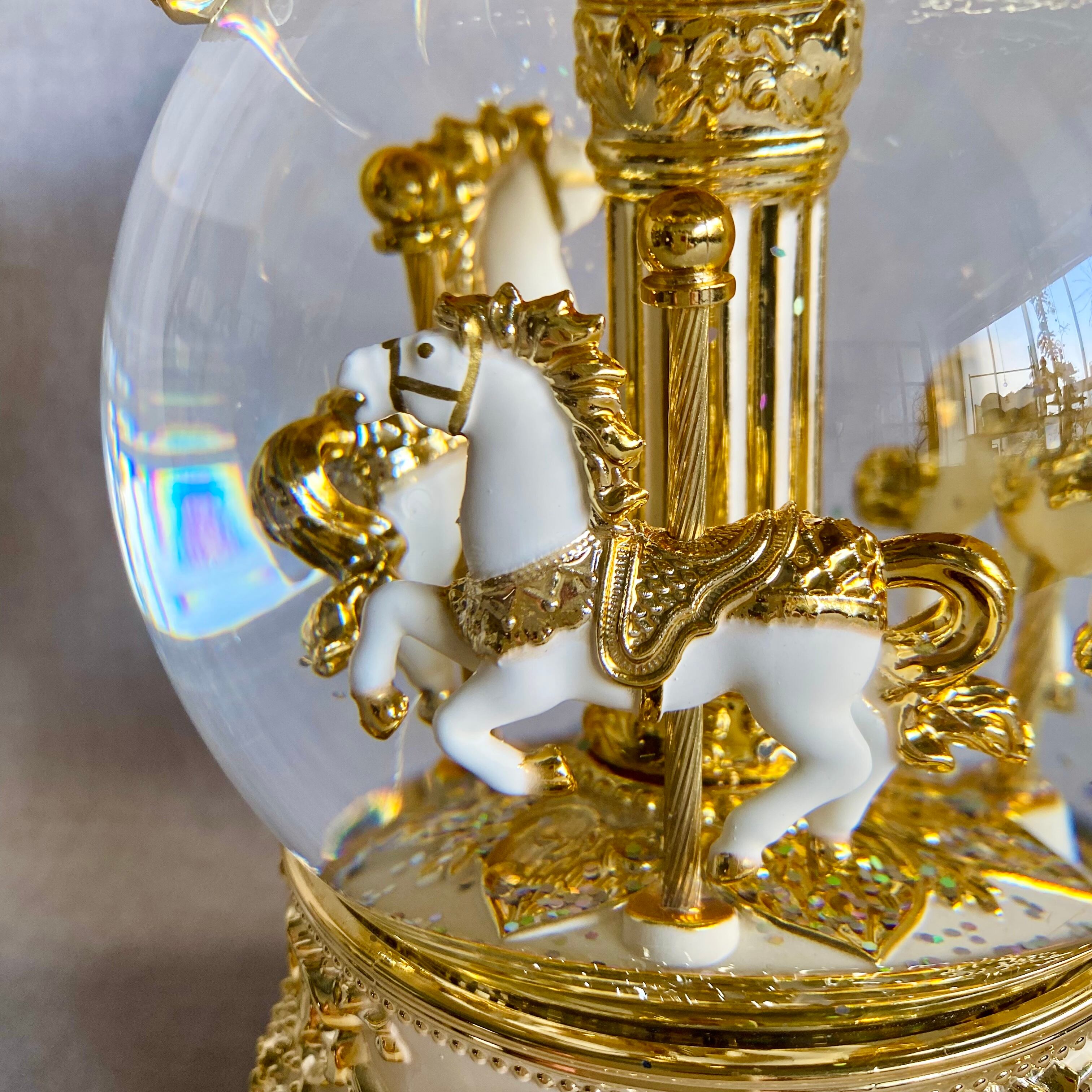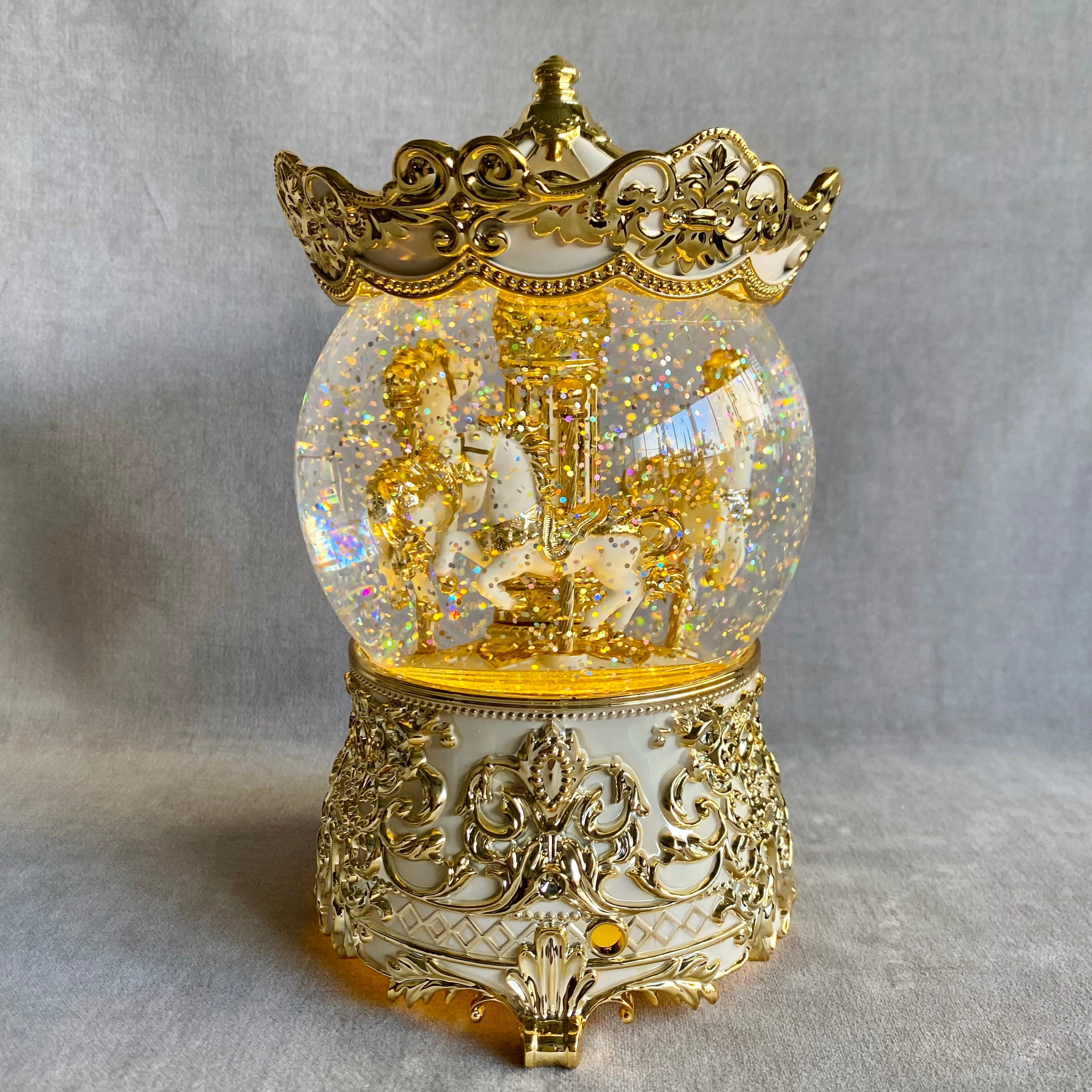 ラグジュアリで華やかなゴールドのカルーセルのLED付きスノードーム。