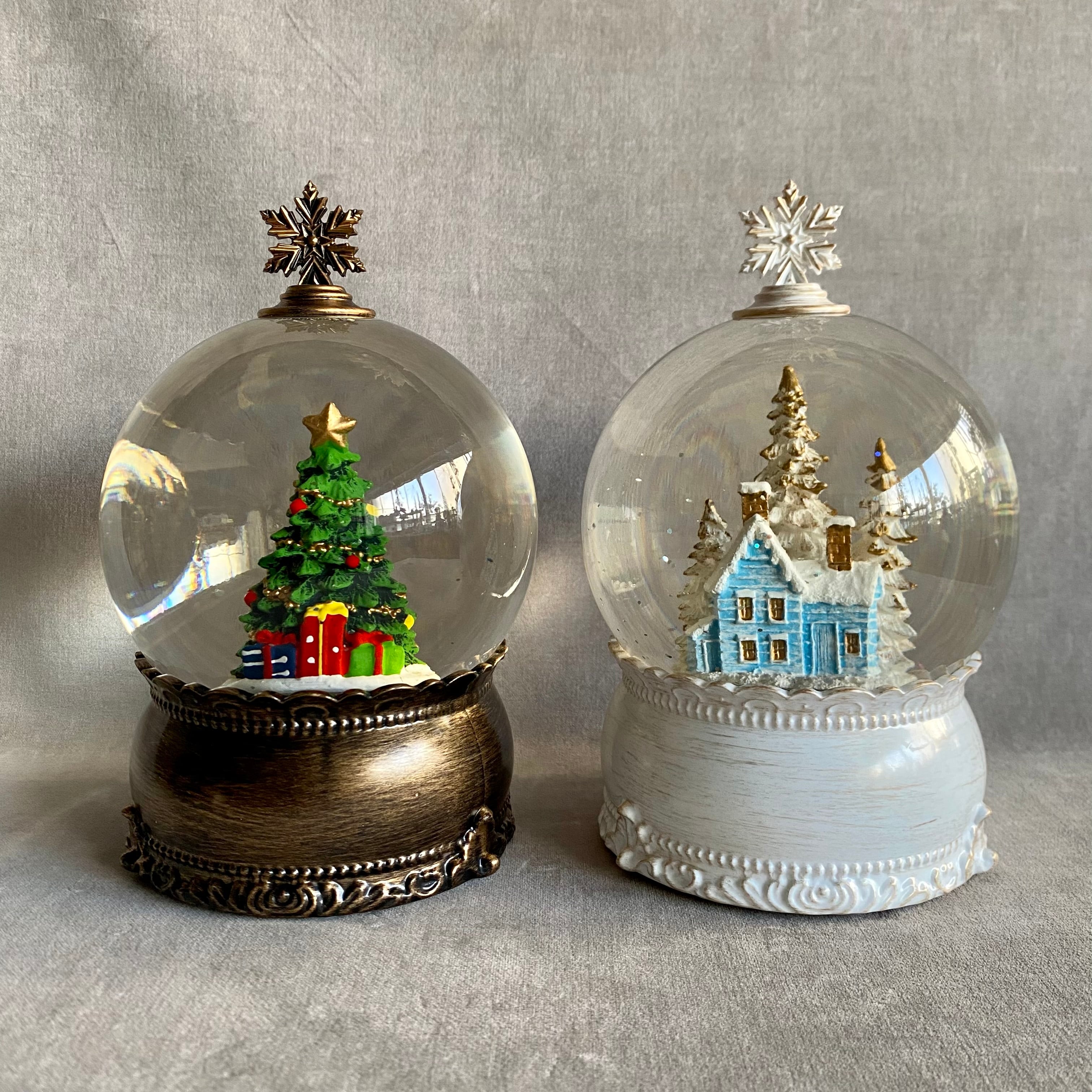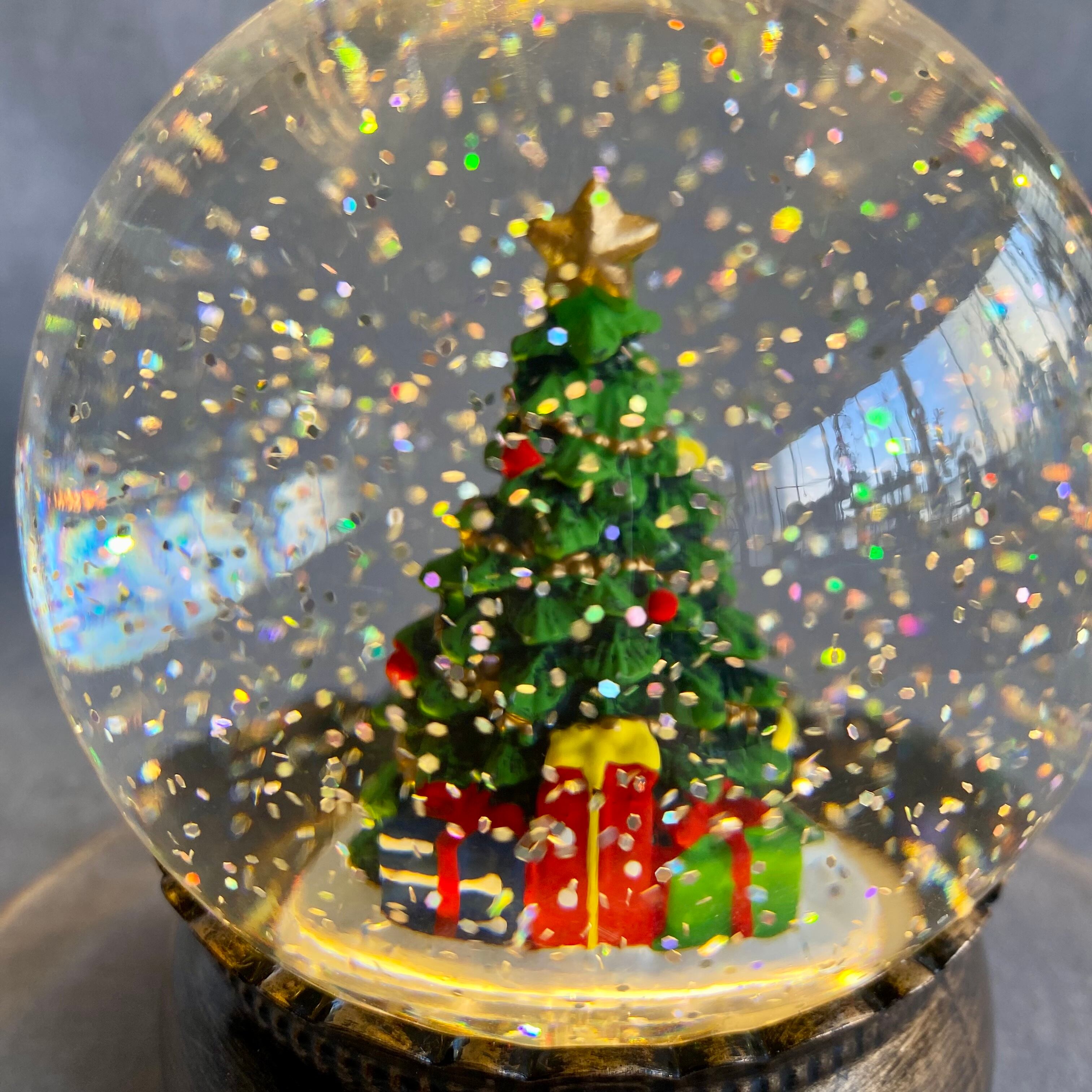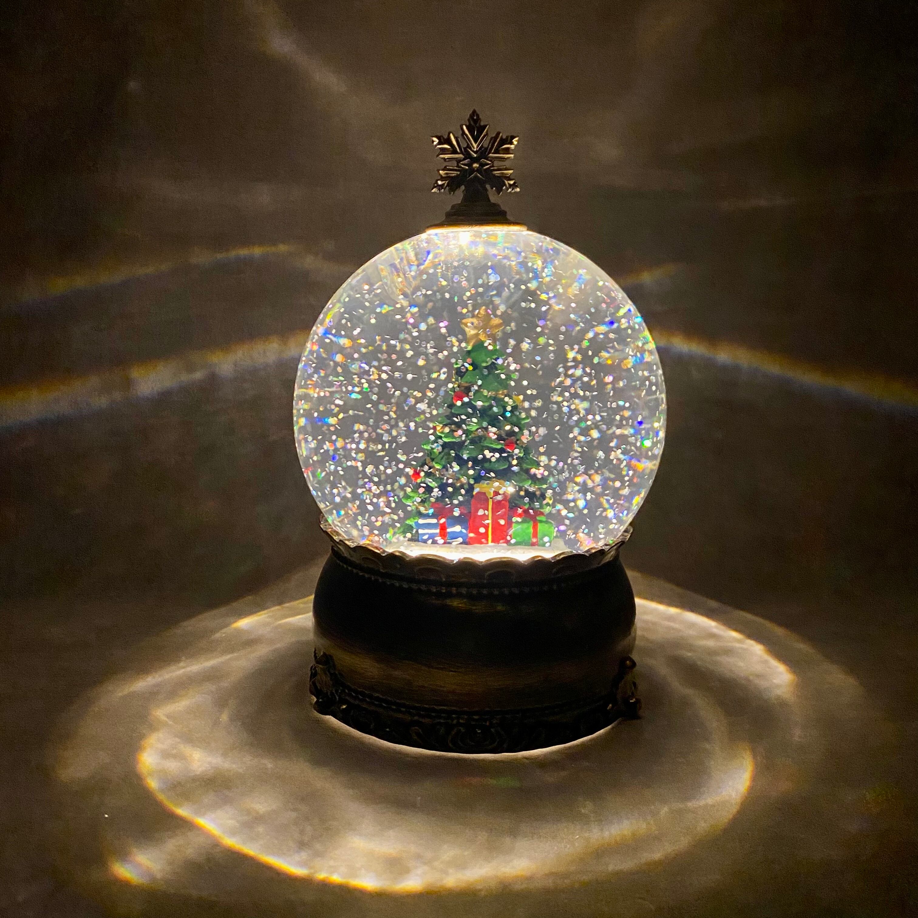 クラシカルなクリスマスツリーが入ったスノードームオブジェ。