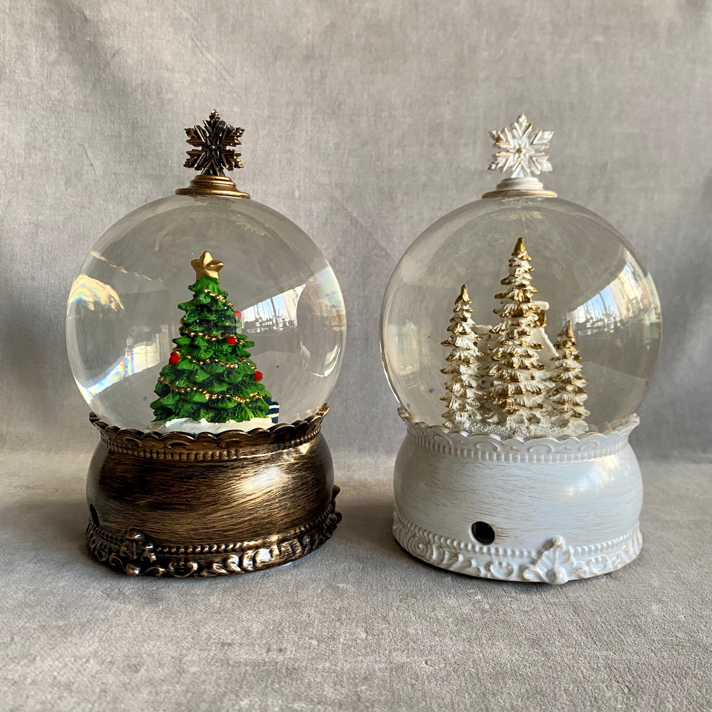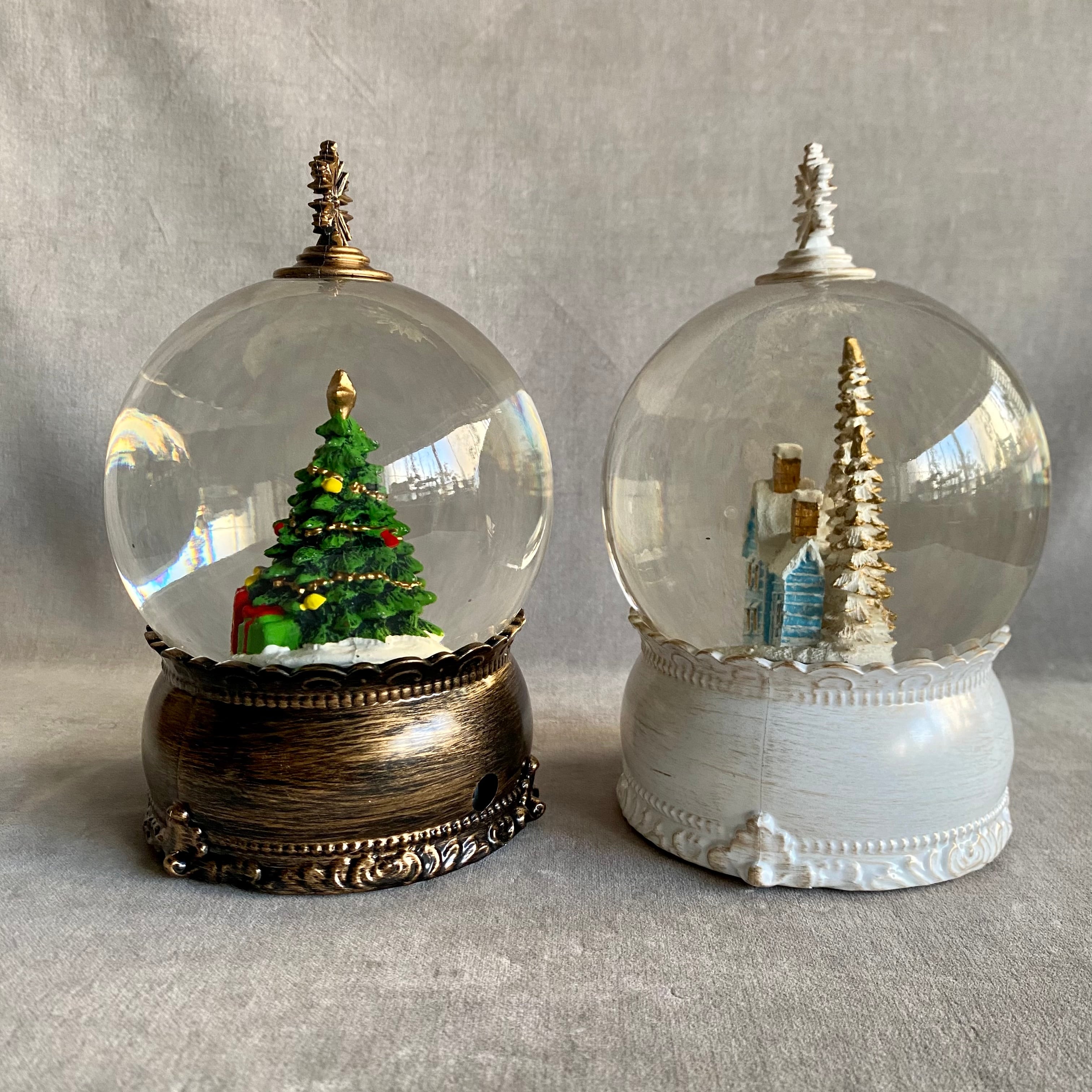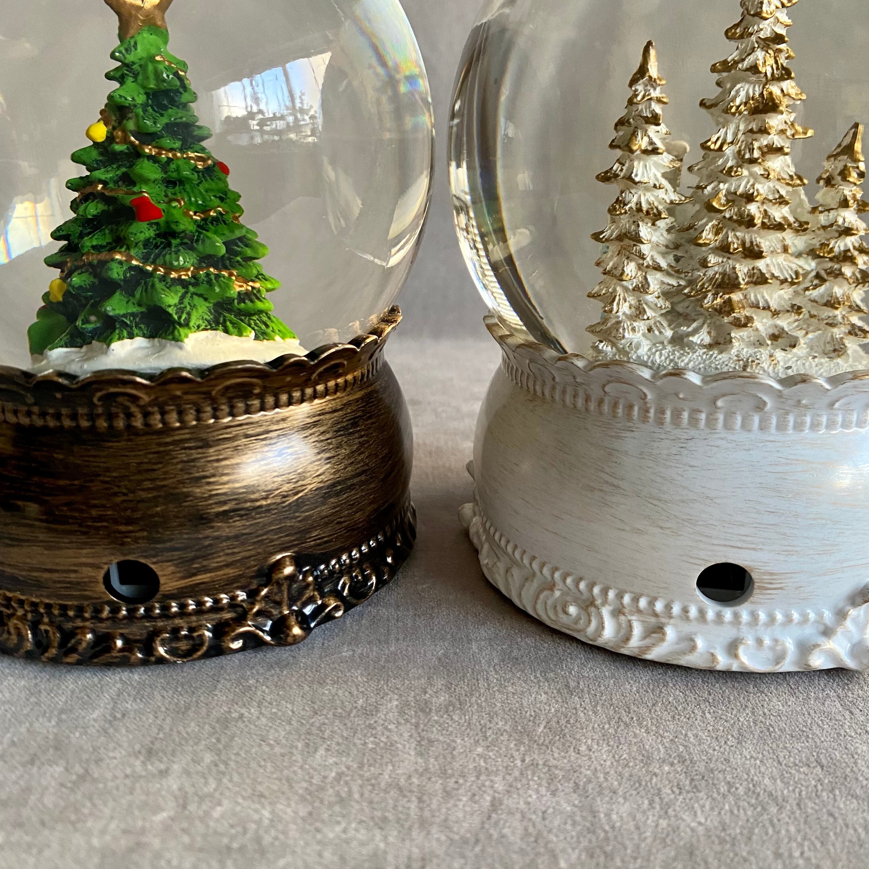 クラシカルなクリスマスツリーが入ったスノードームオブジェ。