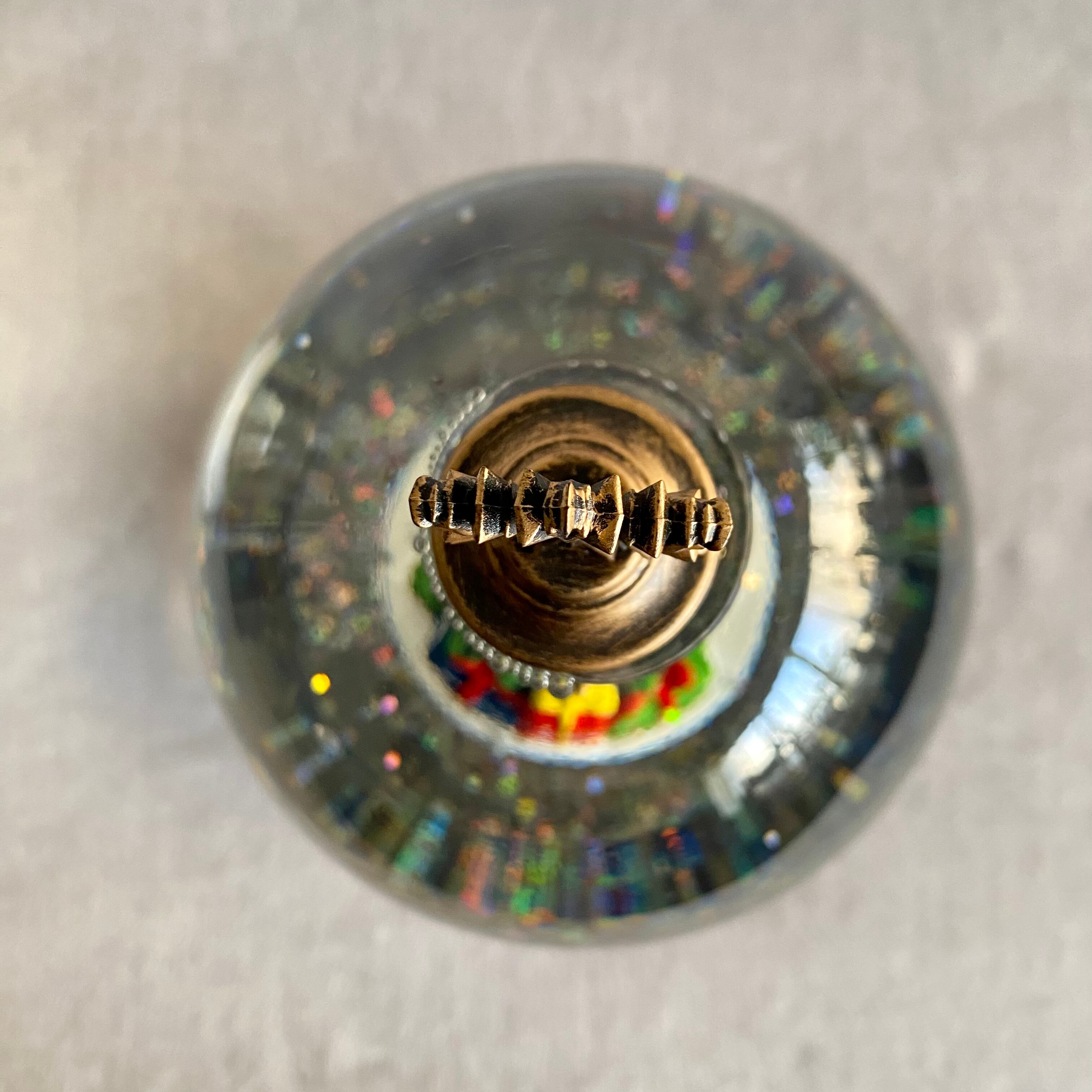 スイッチを入れるとLEDライトが点灯し中のラメが舞います。