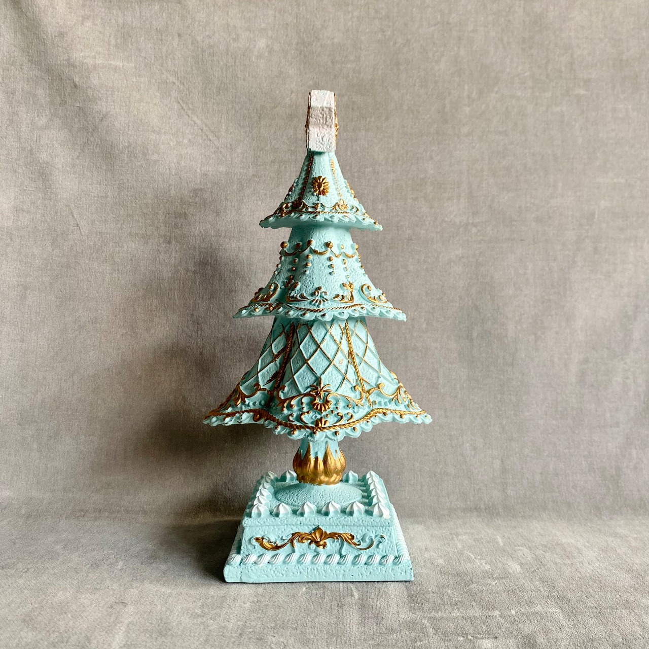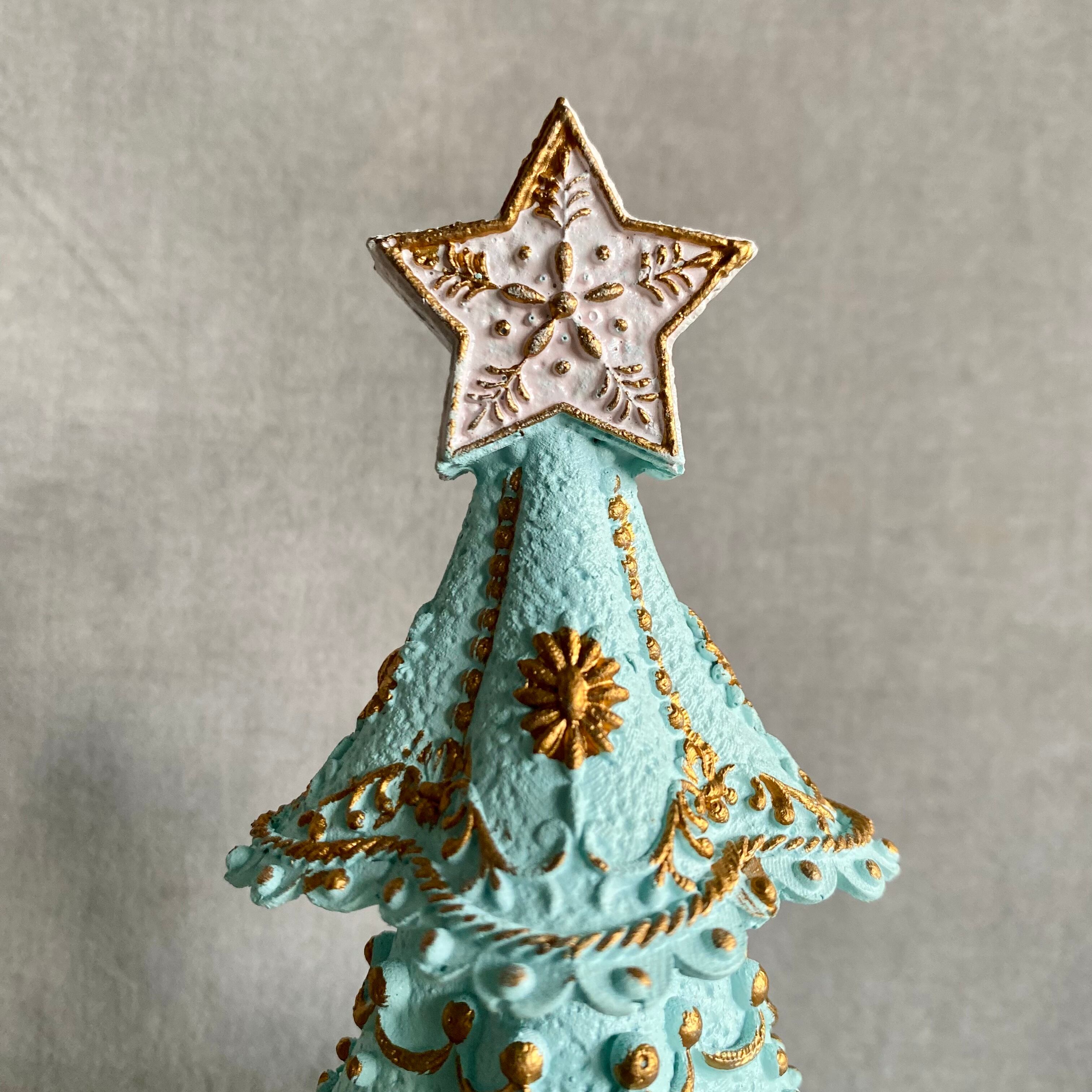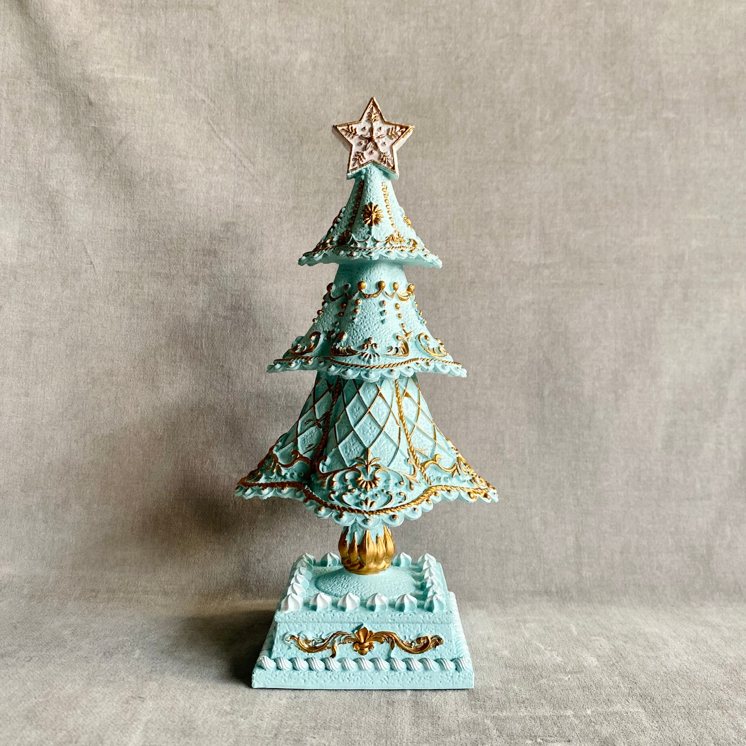 おしゃれなパステルブルーのスイーツモチーフのクリスマスツリーオブジェ。