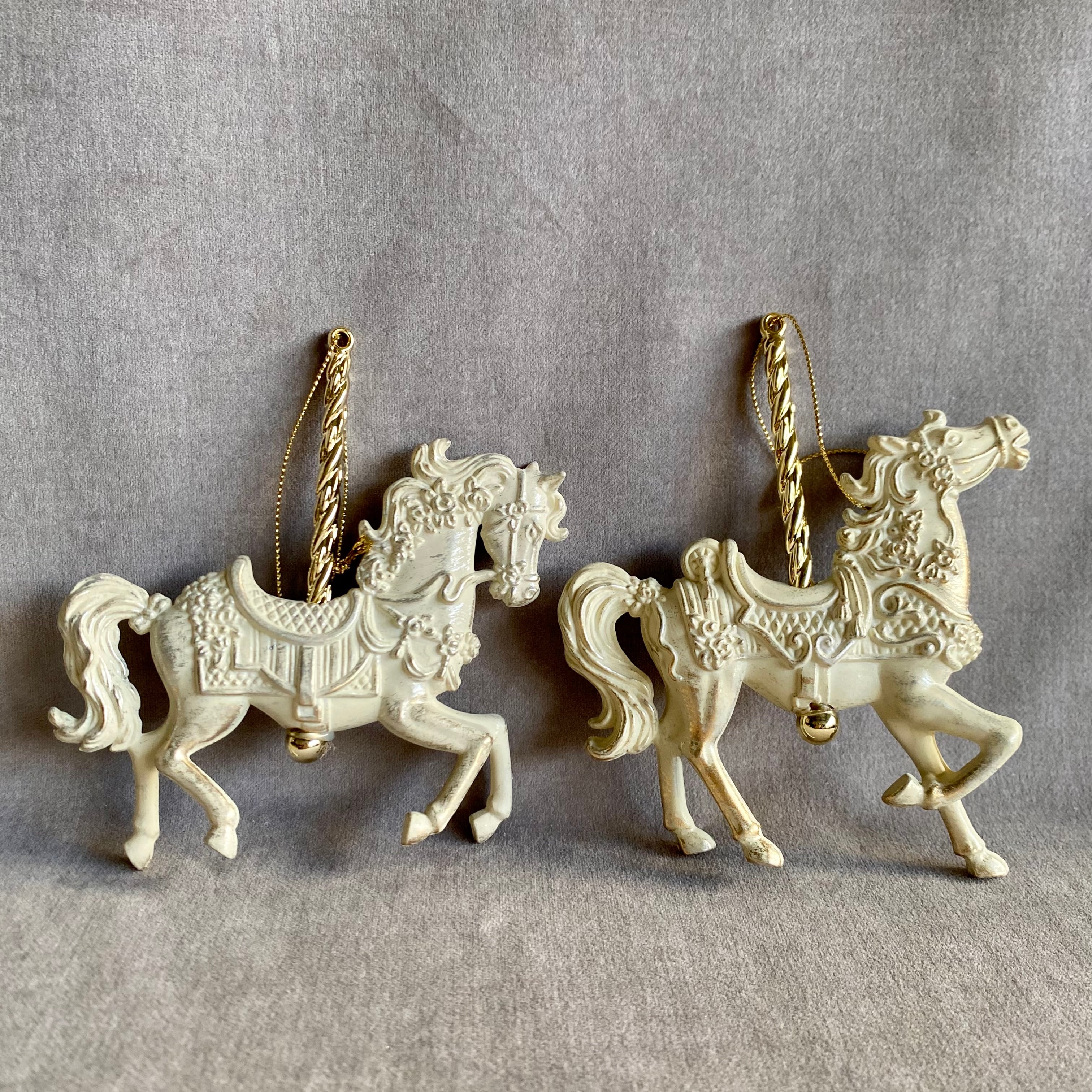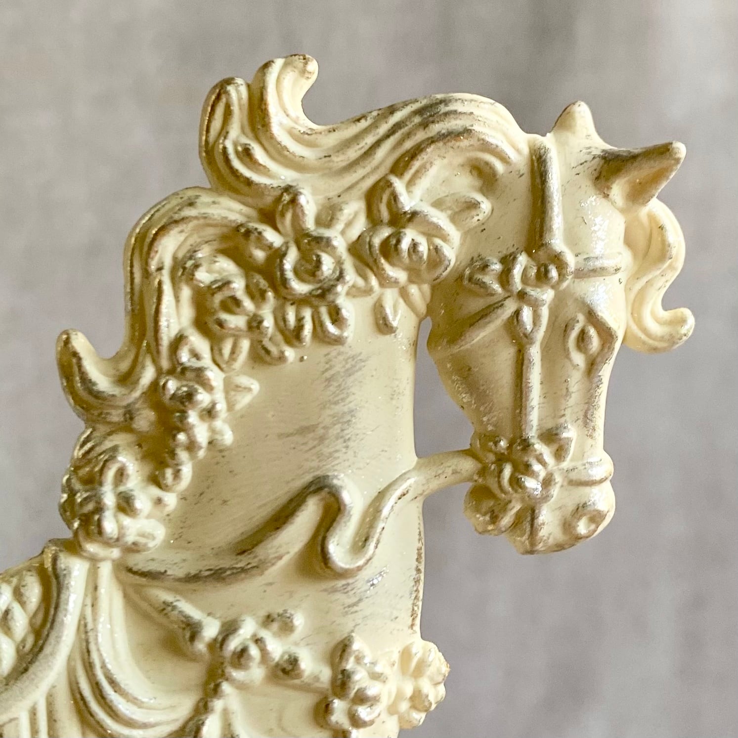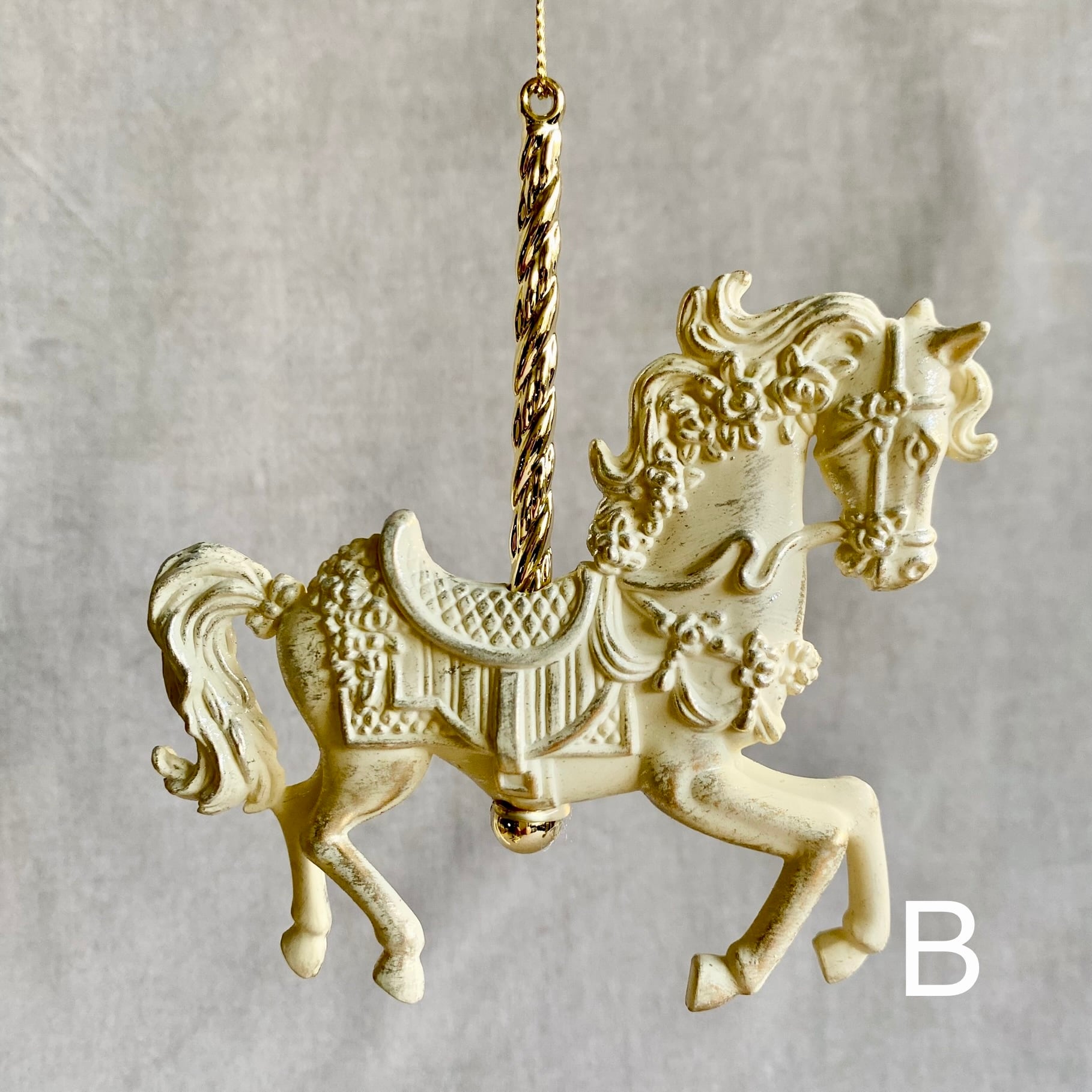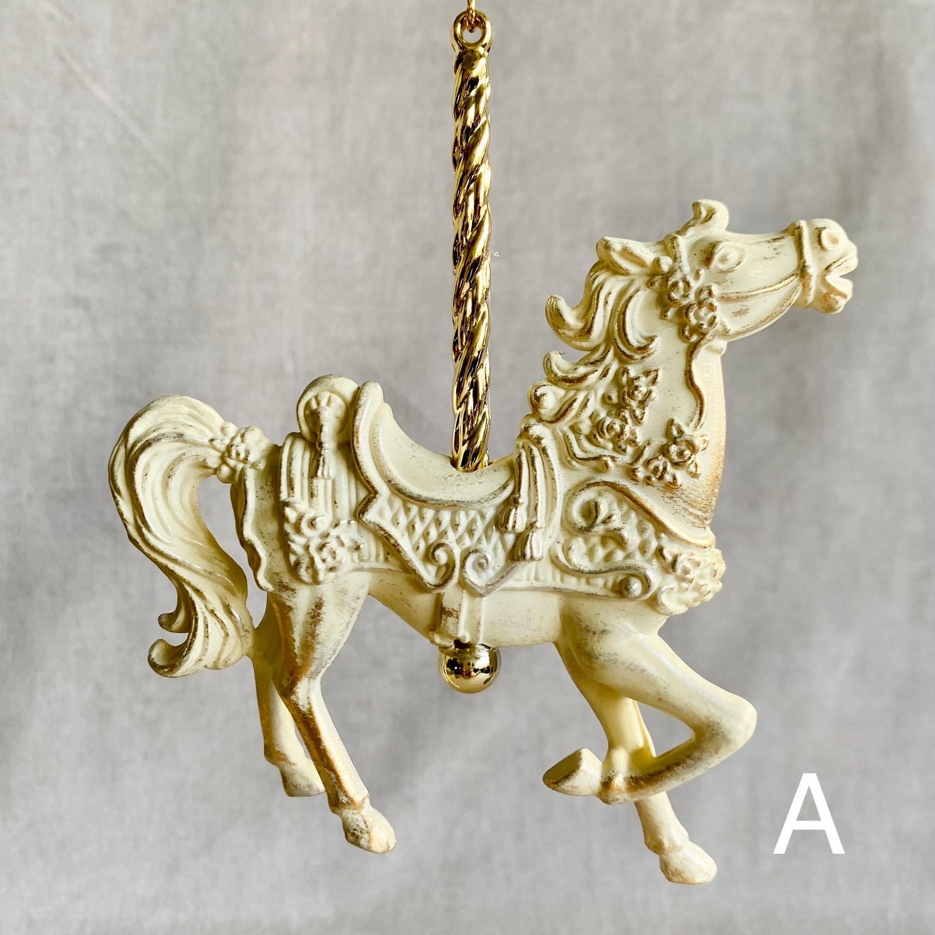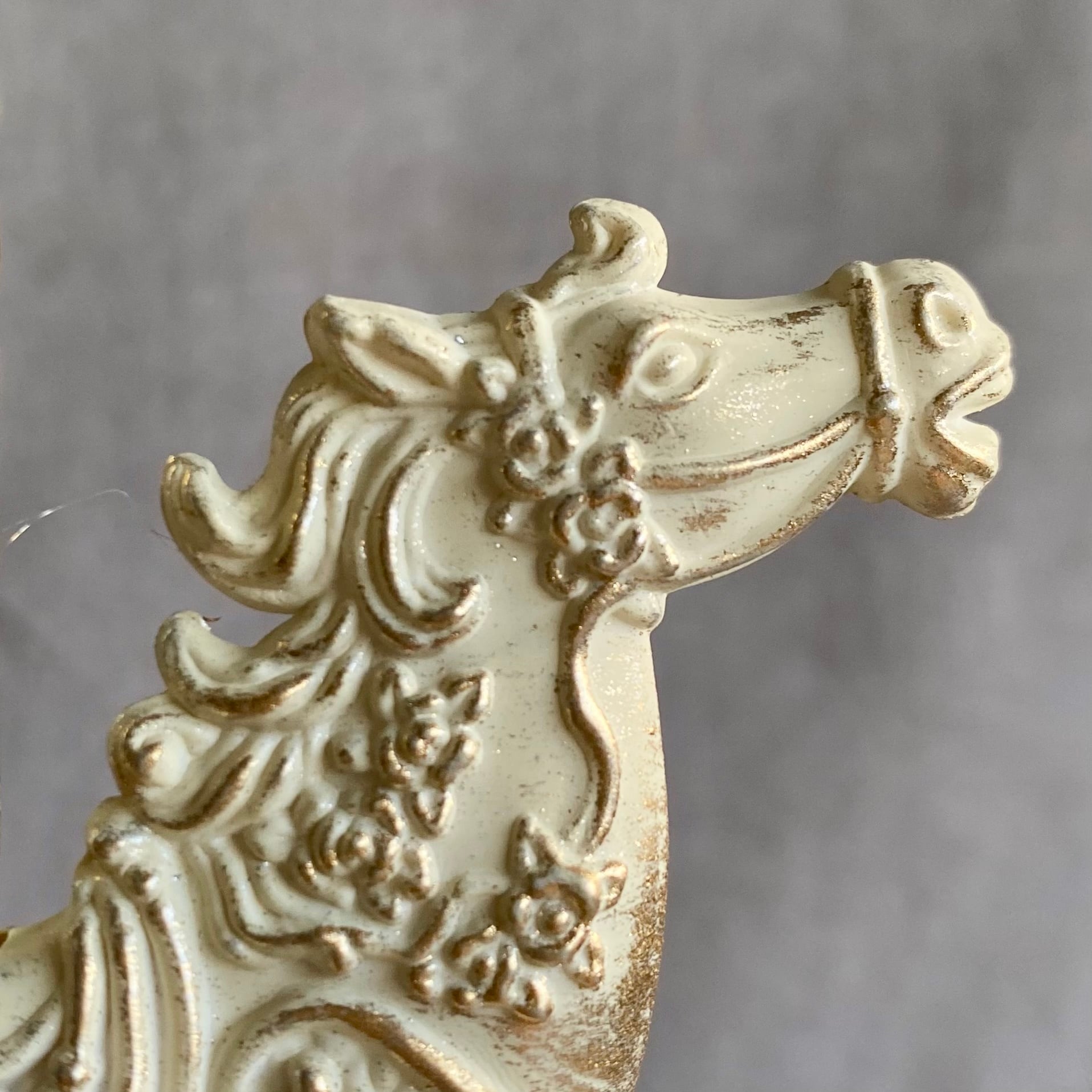 シャビーなホワイトカラーのカルーセルホースのオーナメント。