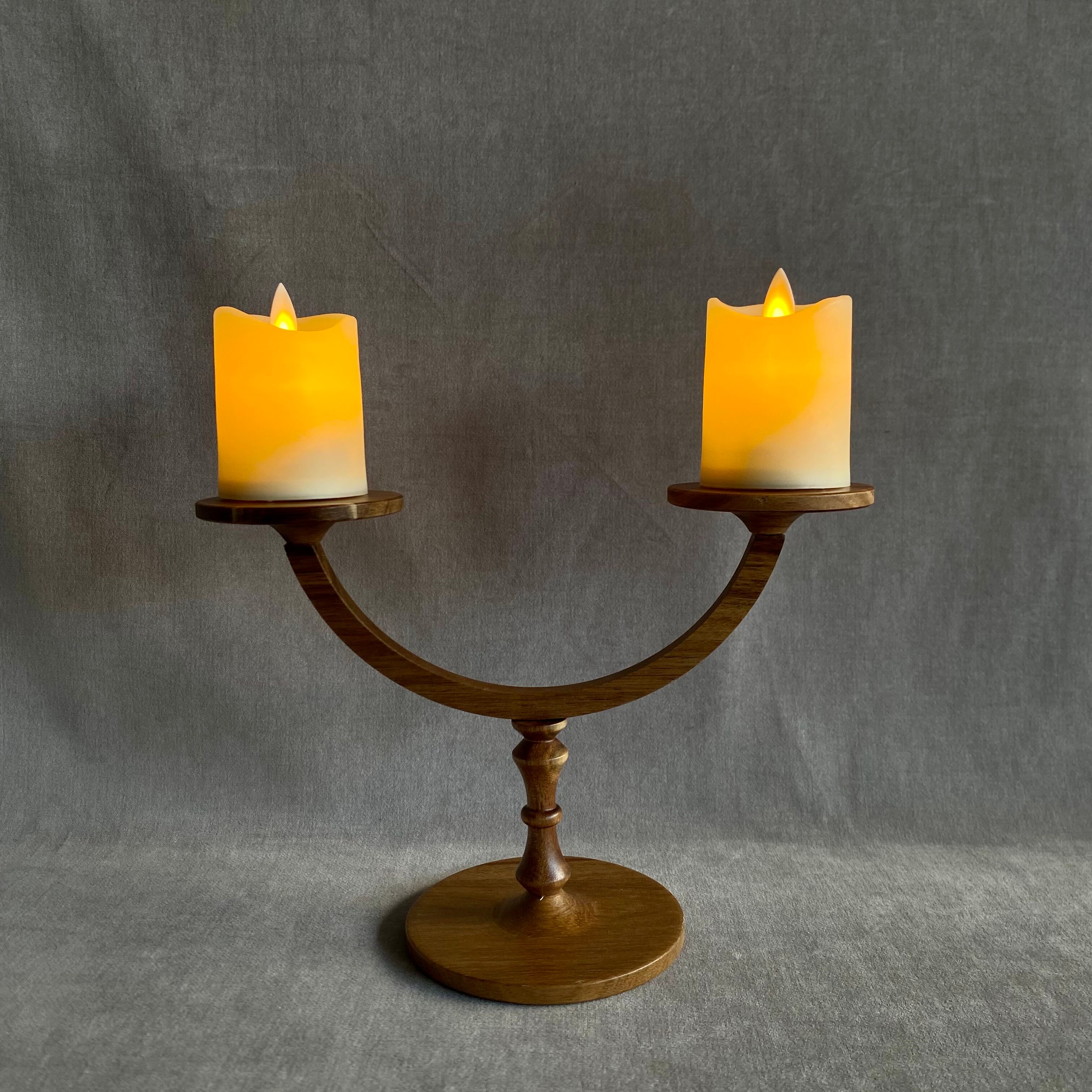 LEDキャンドルを2個置ける、温もりある木製のキャンドルスタンド。