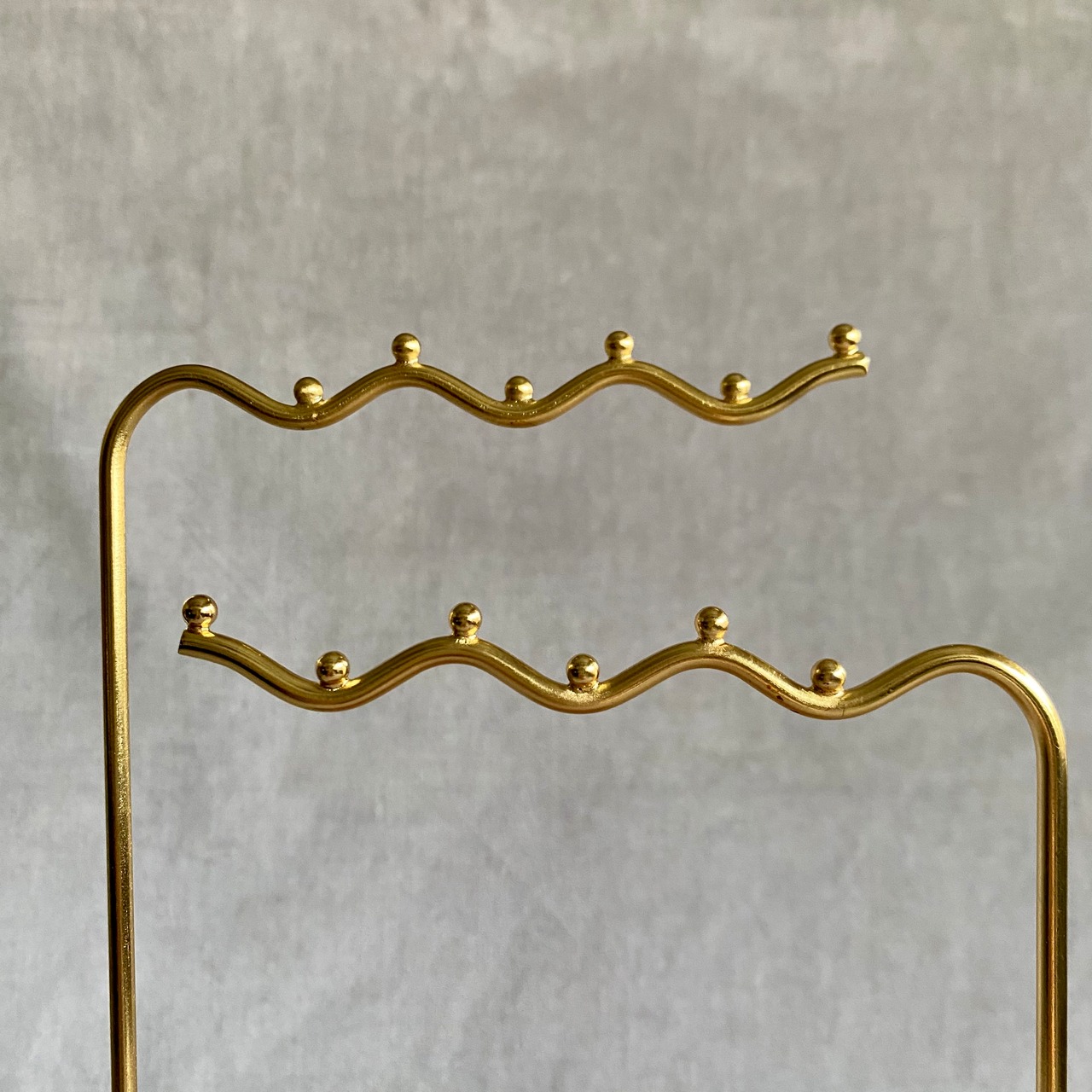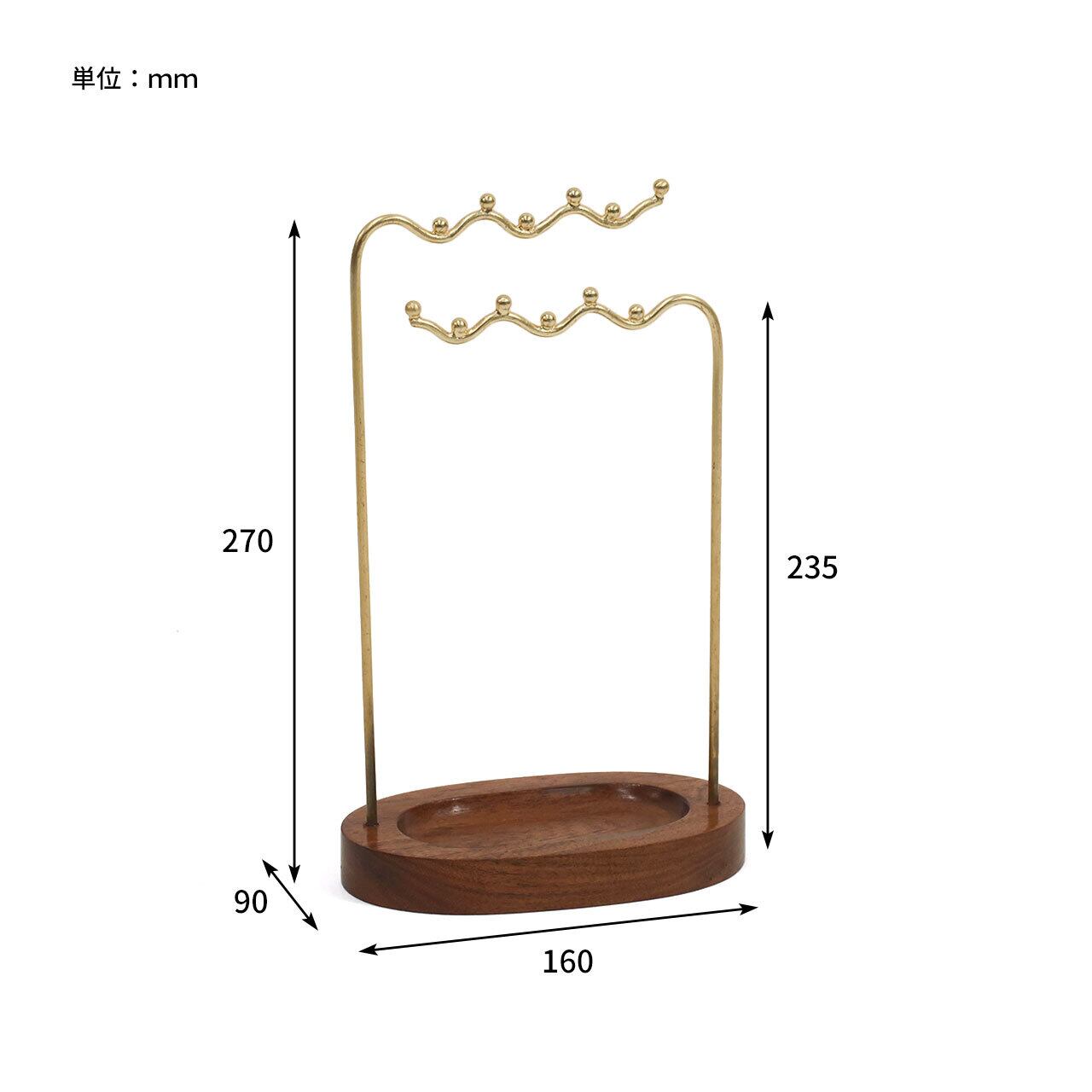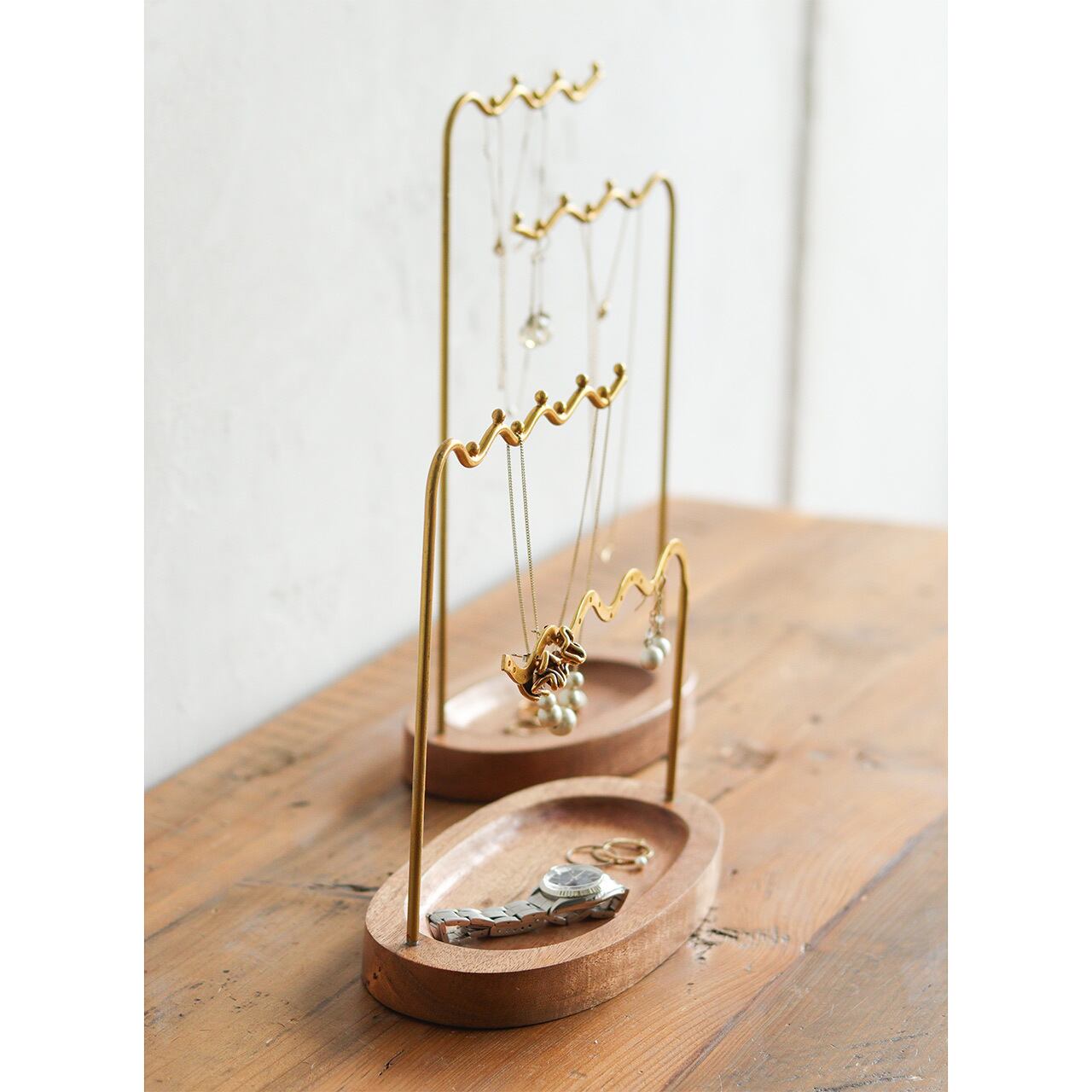 アクセサリーをアイアンで出来た波状のバーに掛け、見せる収納を楽しめるアクセサリースタンド。
