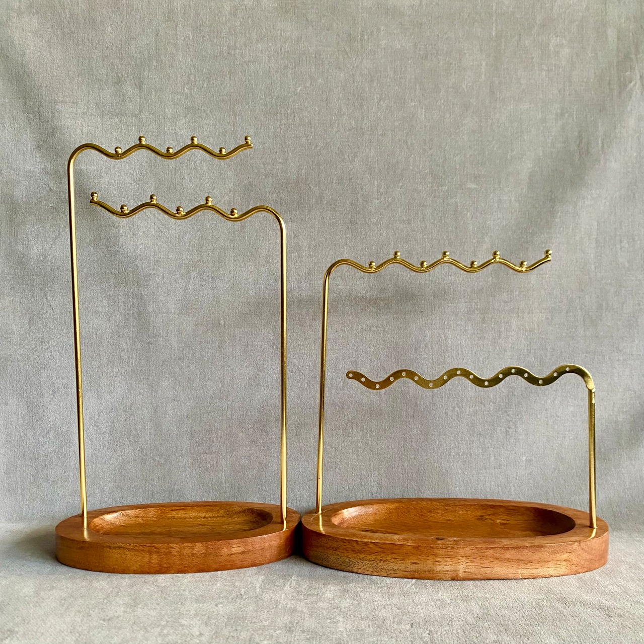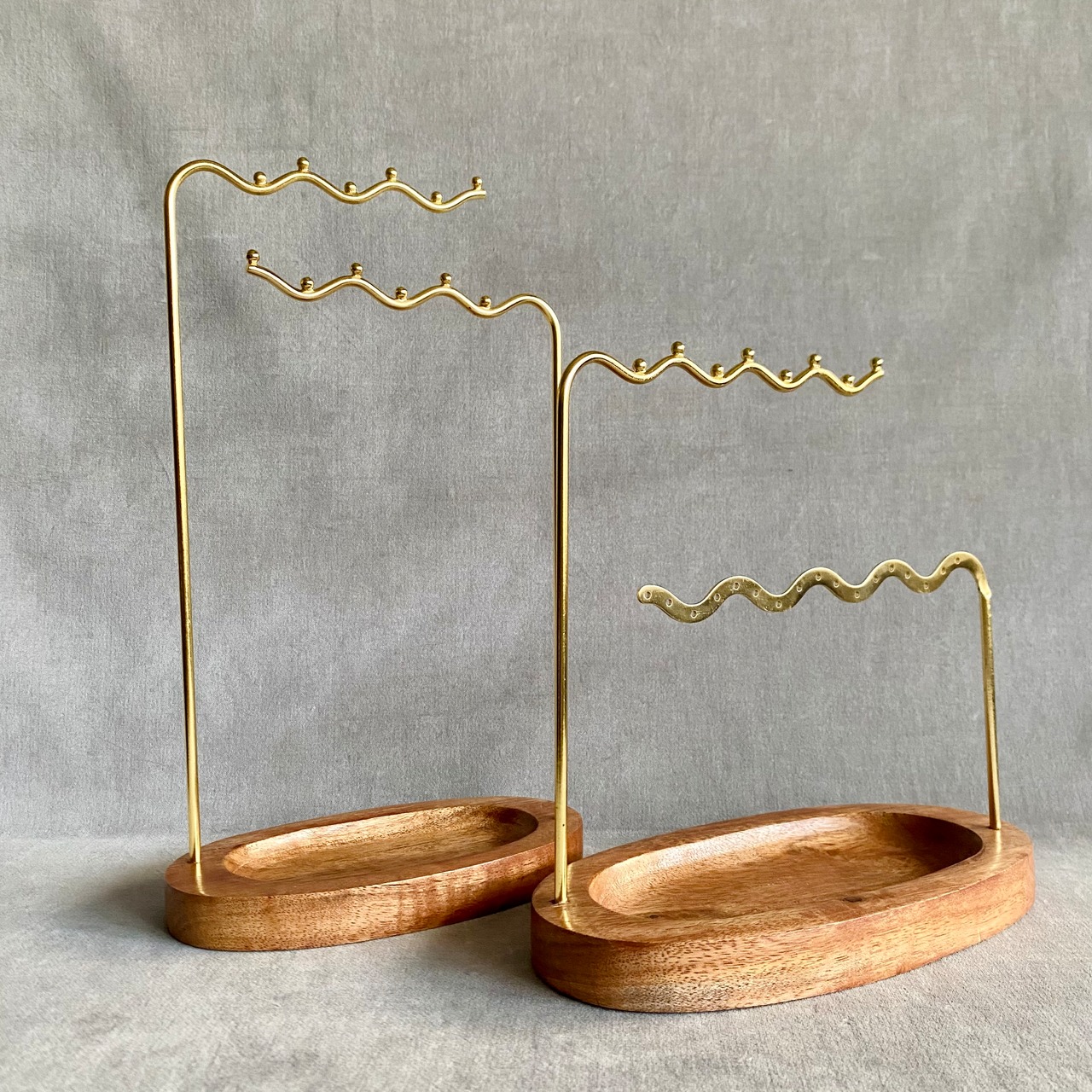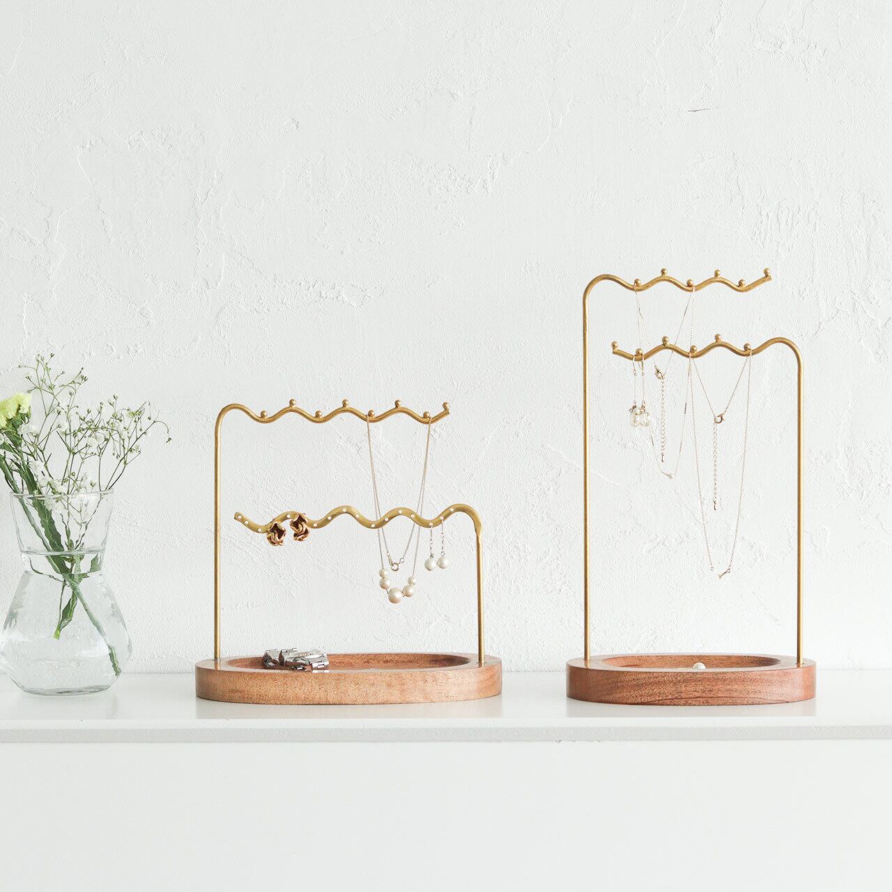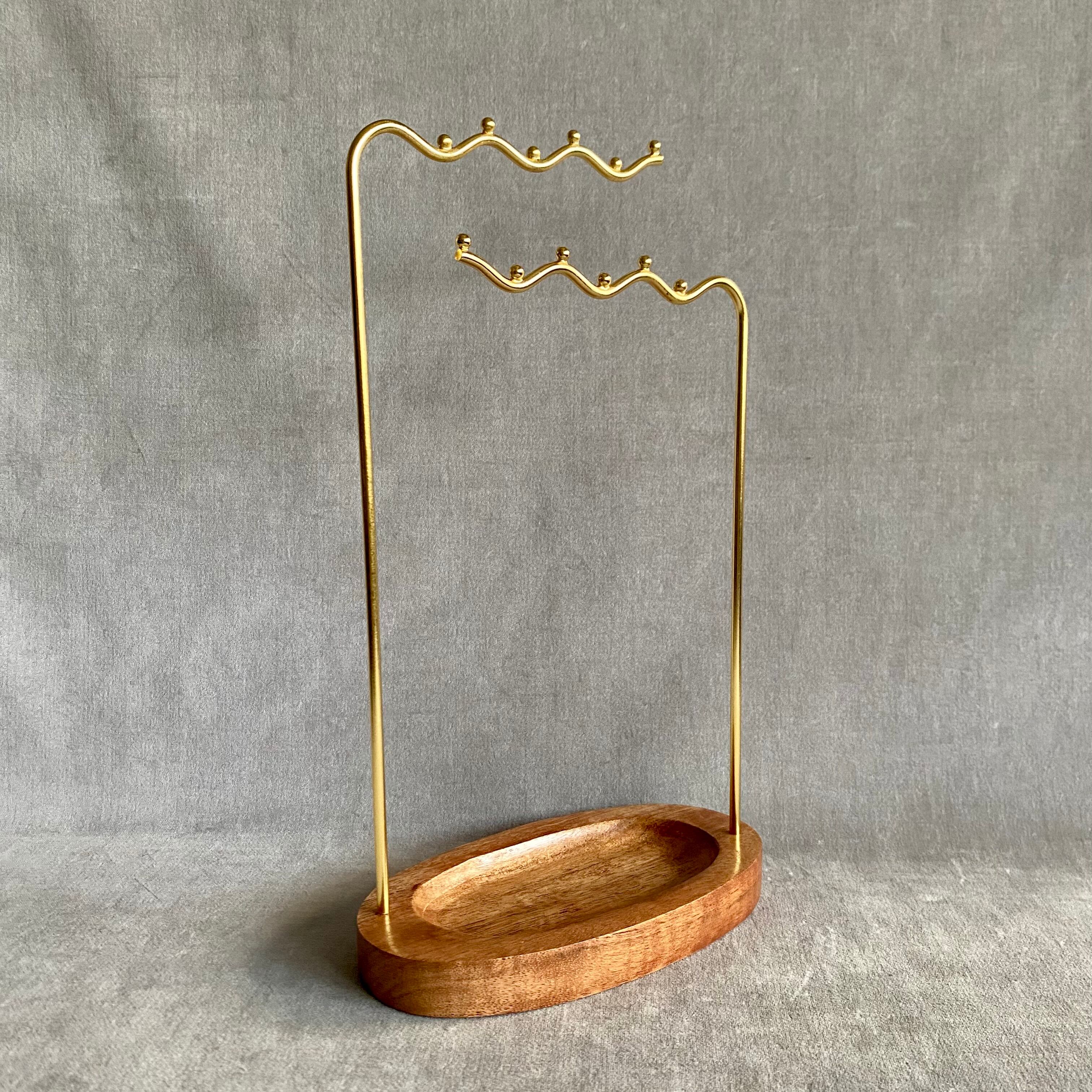 アクセサリーをアイアンで出来た波状のバーに掛け、見せる収納を楽しめるアクセサリースタンド。